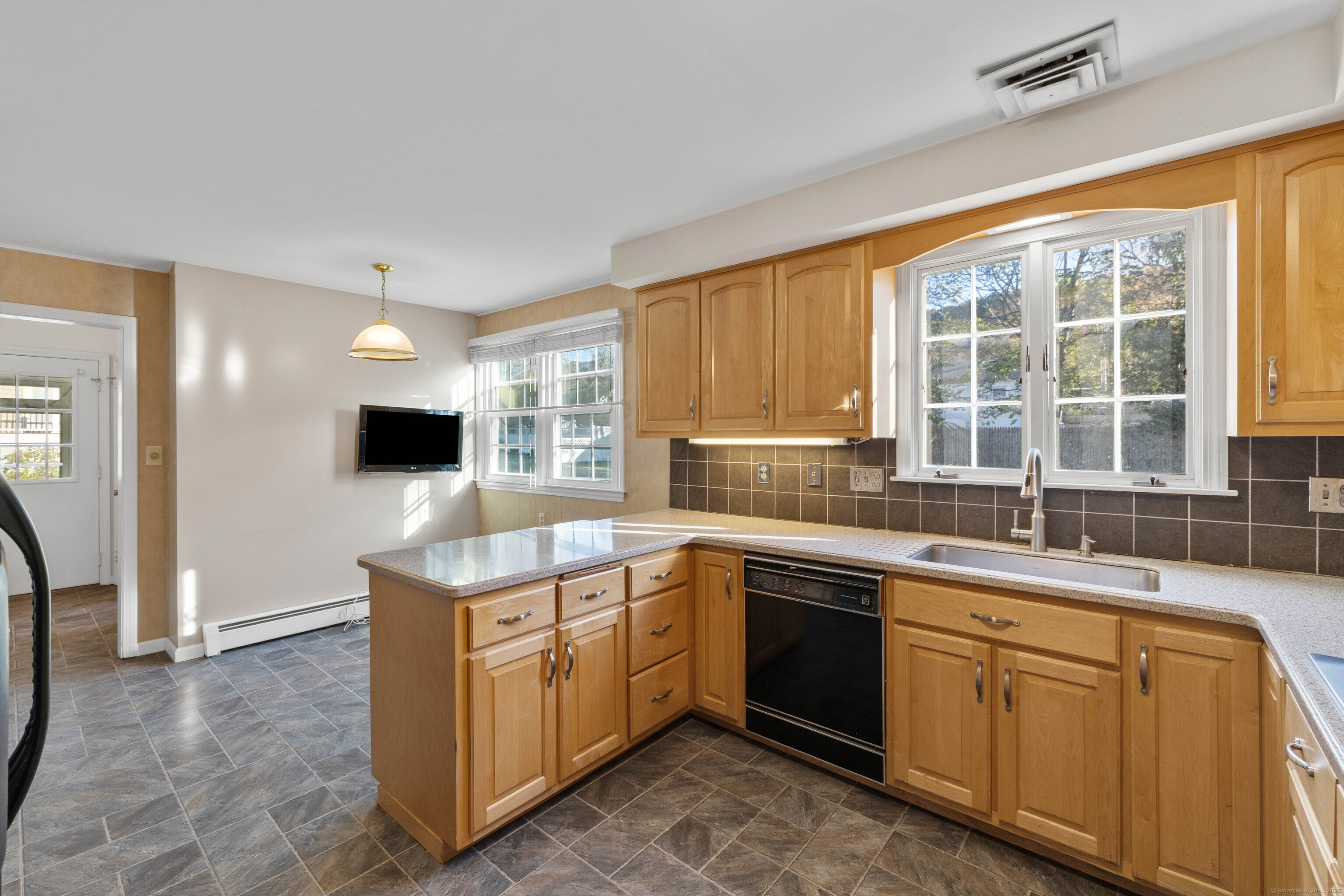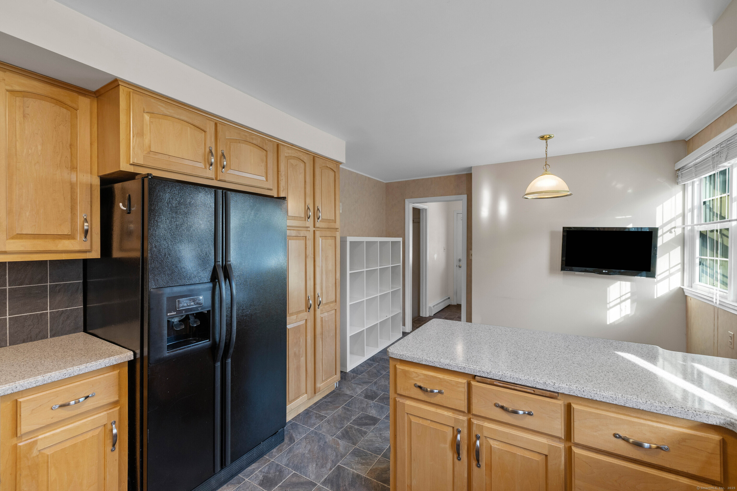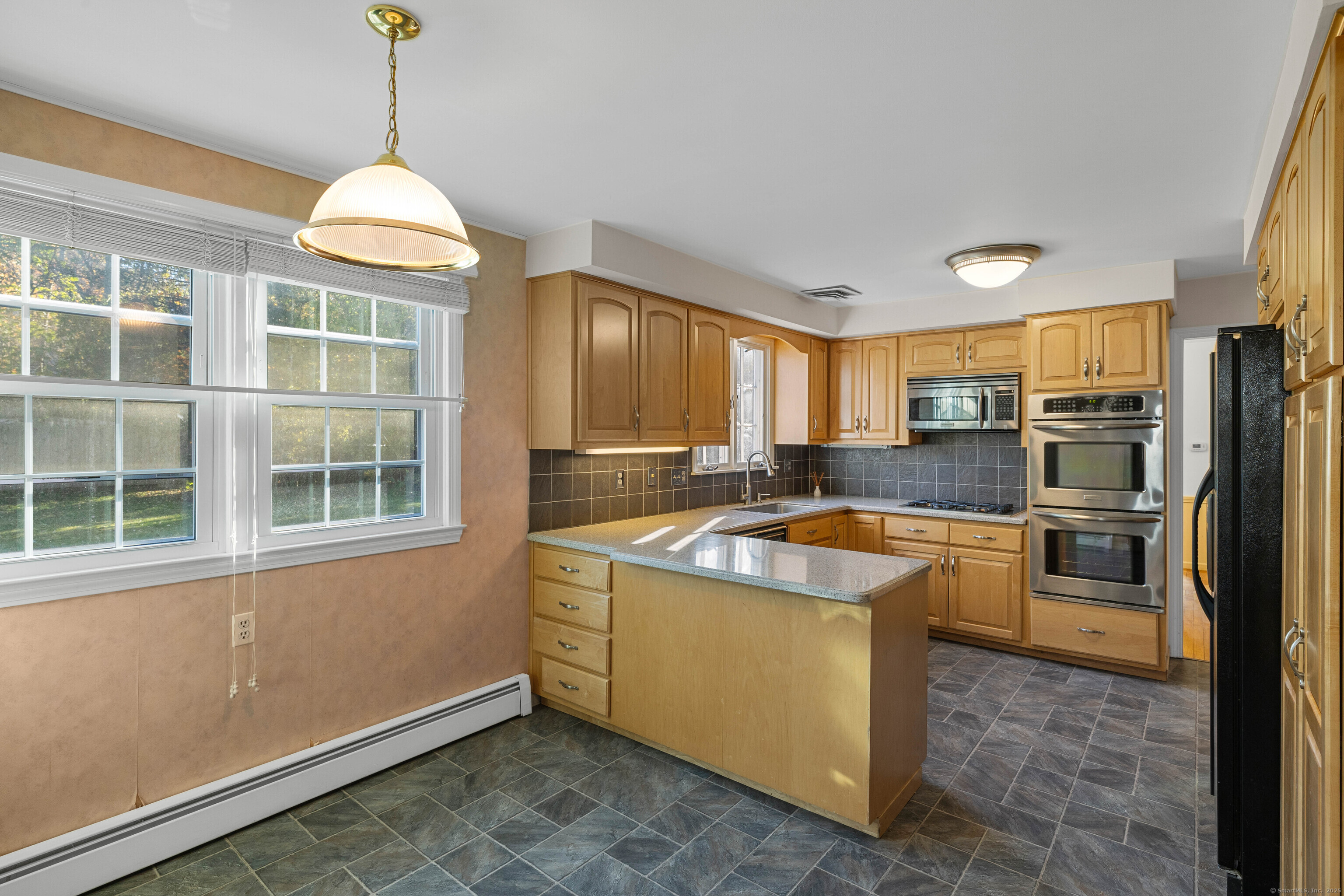 Set in a beautiful neighborhood, this welcoming 4-bedroom Colonial offers comfortable, spacious living and charm. The updated kitchen opens to inviting living spaces with hardwood floors, a propane fireplace and a pellet stove. Enjoy a full, accessible bathroom on the main level, designed for comfort and ease. Three-season sunroom off the kitchen adds extra living space to enjoy the outdoors year-round. Upstairs offers four spacious bedrooms with newly refinished hardwood floors and two full bathrooms that are ready for your finishing touches and modern updates. Partially finished basement offers versatile space with a built-in bar, pool table, laundry area, half bathroom, cedar closet and storage. The charming front porch is the perfect place to relax with coffee or cocktails. Enjoy nearly a half-acre level lot that provides plenty of room to relax, play or garden. Convenient location close to highways yet located in an awesome neighborhood!