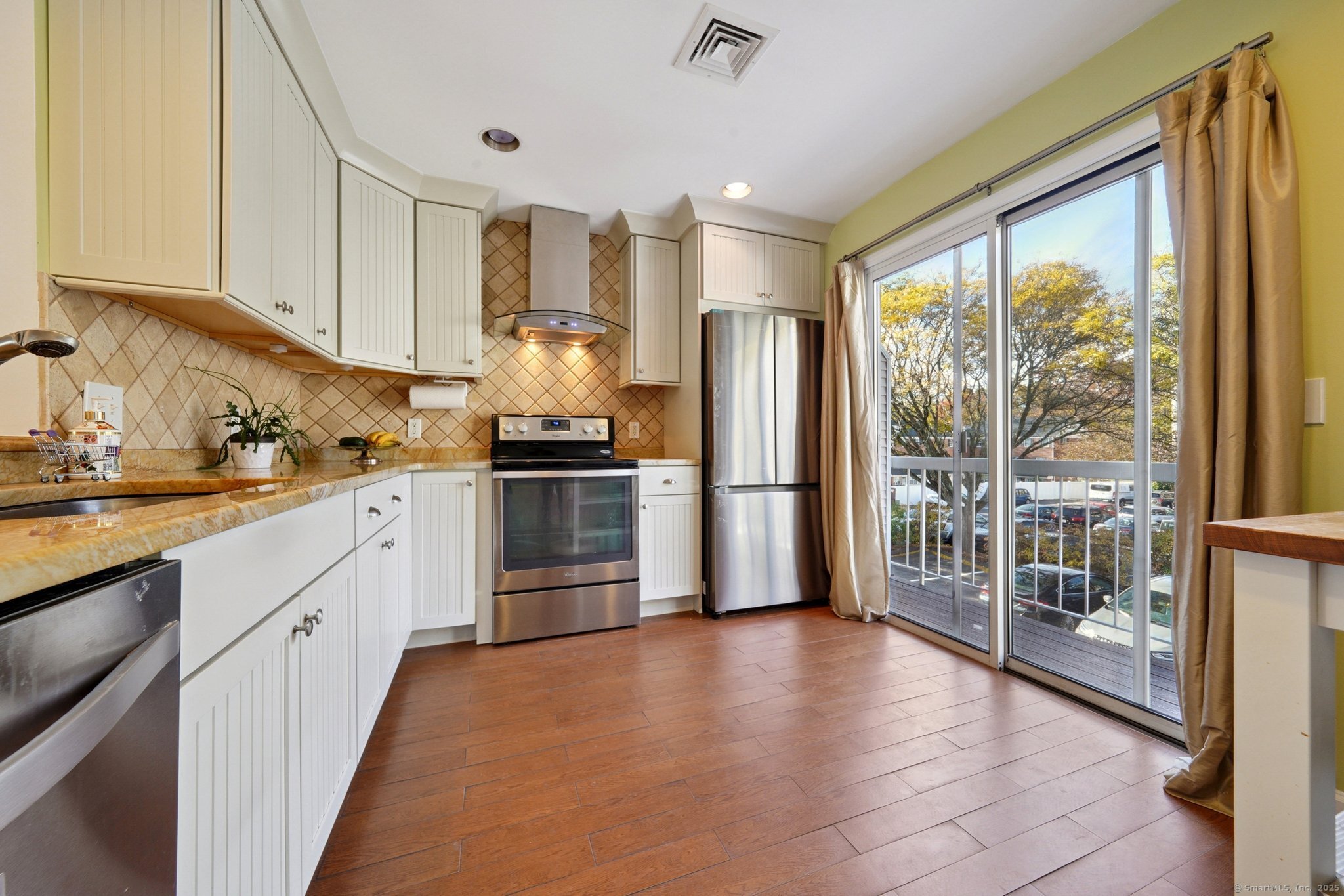 Welcome to the ultimate in carefree, city-chic living! This sunny, immaculate 2-bed, 2.5-bath townhouse blends cosmopolitan charm with a serene, move-in-ready retreat in the sought-after Greenbriar/Mid City community. Tucked quietly at the back of the well-managed complex-away from the street-this light-filled home boasts an open floor plan with gleaming hardwood floors, a cozy wood-burning fireplace, and a versatile sunroom/office overlooking a peaceful courtyard-ideal for remote work. The spacious living & dining areas flow seamlessly into a gourmet eat-in kitchen featuring granite countertops, stainless steel appliances, breakfast bar, ample storage, and sliders to a private deck. Upstairs, two generously sized bedrooms each offer en-suite baths and abundant closets; the primary suite shines with a newly renovated spa-like bath, while the second includes a large walk-in. Enjoy one covered carport, an additional reserved parking spot, and plenty of guest parking. Steps from vibrant Downtown Stamford/Mid City shopping, dining, parks, public transit, and nightlife-this turnkey townhouse delivers the perfect balance of style, convenience, and tranquility. Schedule your private tour today!