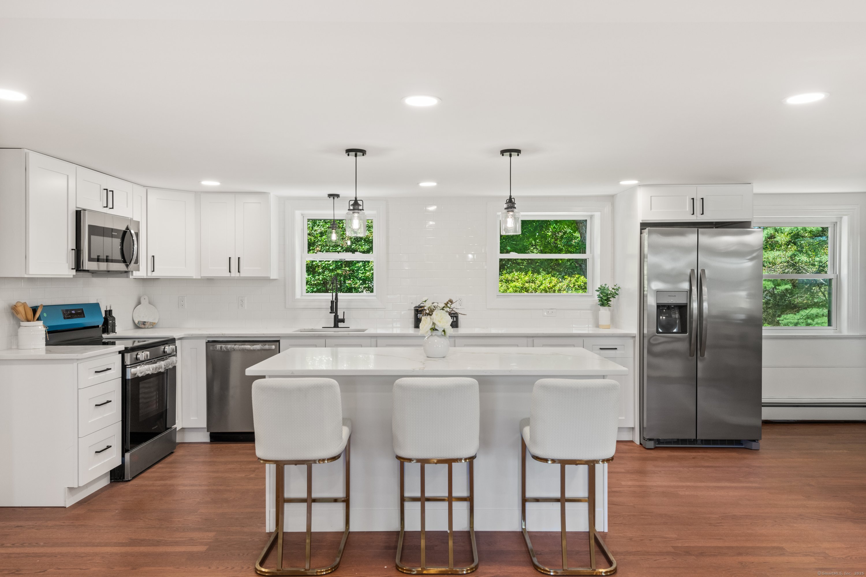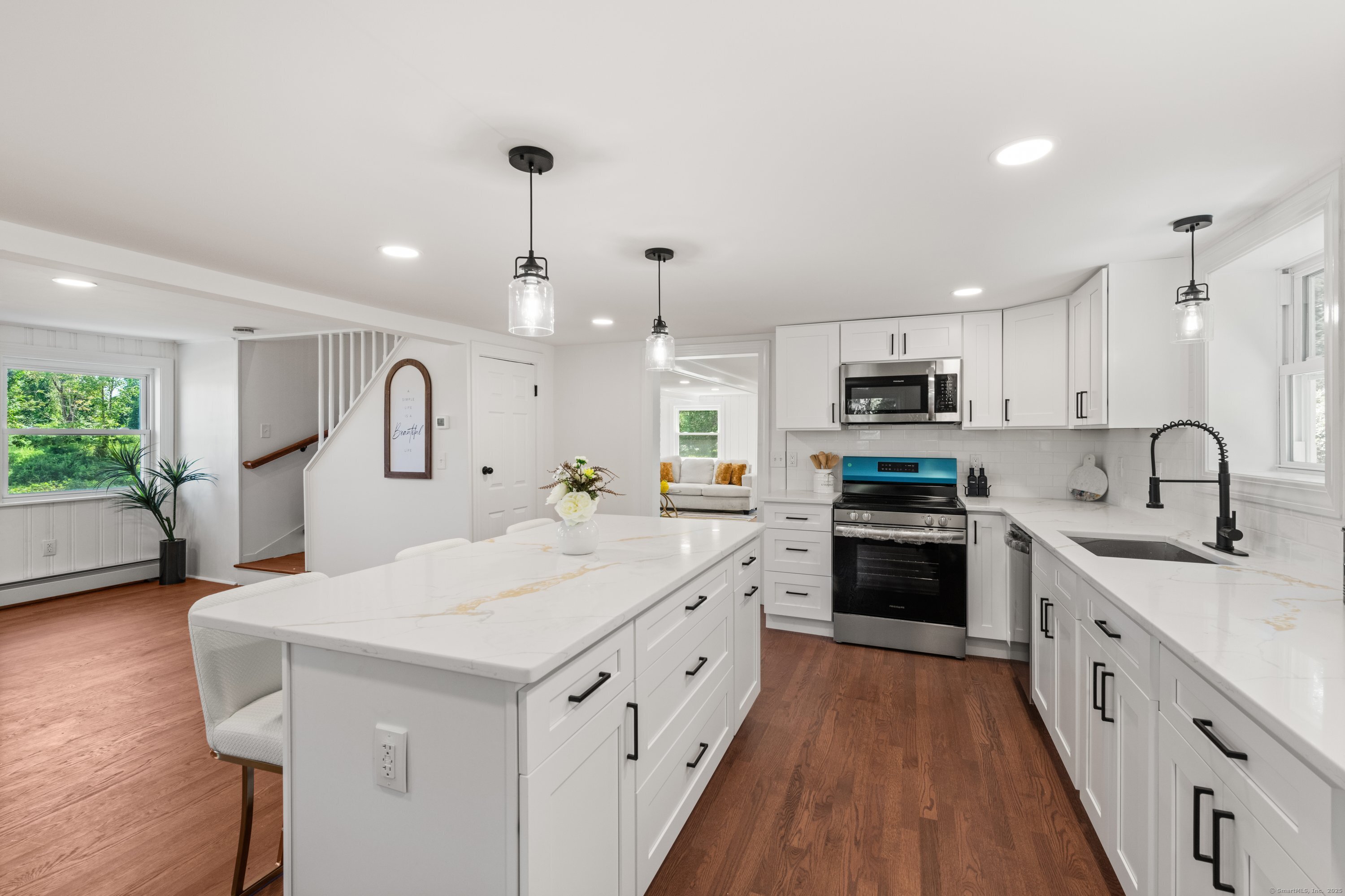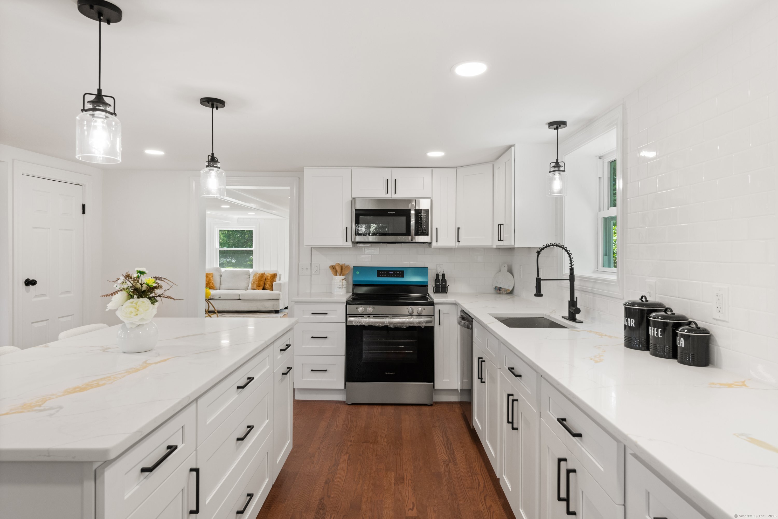 Welcome to 689 S Meriden Rd, This stunning 4 bedrooms and 2 bathrooms colonial is located on Tranquille neighborhood. The main floor features an open concept eat-in kitchen, dining area, and a family room. cozy living room with an inviting fireplace. Custom kitchen with white shaker cabinetry, granite countertop and stainless-steel appliances. The upper level has four large bedrooms with multiple closets and a full bathroom. The walk-out unfinished basement offers great storage and endless possibilities! this home boast New kitchen, new septic system, fresh paint throughout the house, new light fixtures, switch and outlet, and 2 car garages. Ready to move in. Don't miss the chance to make this property yours!