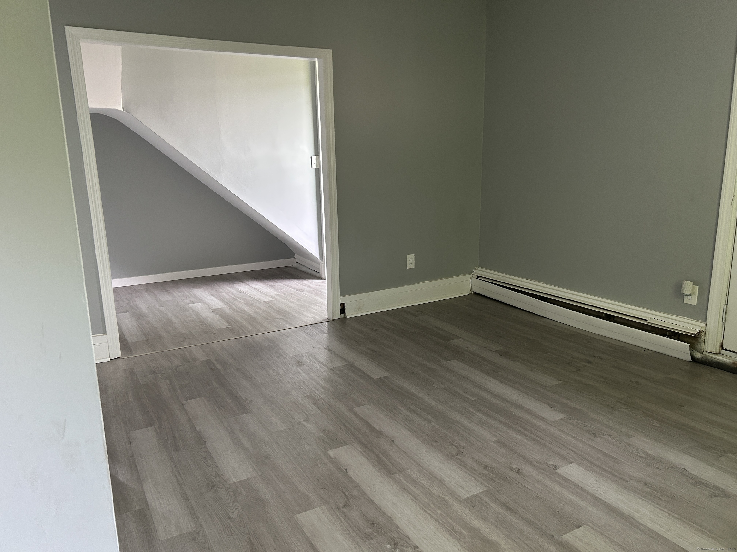 This apartment features two levels and lots of space to spread out! It is a nicely renovated 2nd floor apartment with 4 bedrooms plus a additional room. Recently painted with new floors throughout. Large eat in kitchen with plenty of cabinets and countertops. Gas heat included with rent. Tenant pays electricity, hot water, cable/Wifi and electric heat for all the rooms on the upper level. Laundry hookups in mud room off the kitchen. Pets allowed with restrictions, there is a non-refundable $300 pet deposit plus and additional monthly $50 per pet. Security deposit is the same as one months' rent and a nonrefundable $200 deposit for cleaning. You will only be responsible for pet deposit or cleaning deposit, NOT both. Off street parking, 2 spaces. There is $50 for application per adult anyone 18yrs+ must apply and be on the lease. Good credit history and landlord references required. No applications will be processed without landlord references. ADDITIONAL rent: There is an additional rent charge required of $16 for renters' insurance for property damage & liability to the property. If Tenant wants coverage for personal belongings, they have the option to do so.