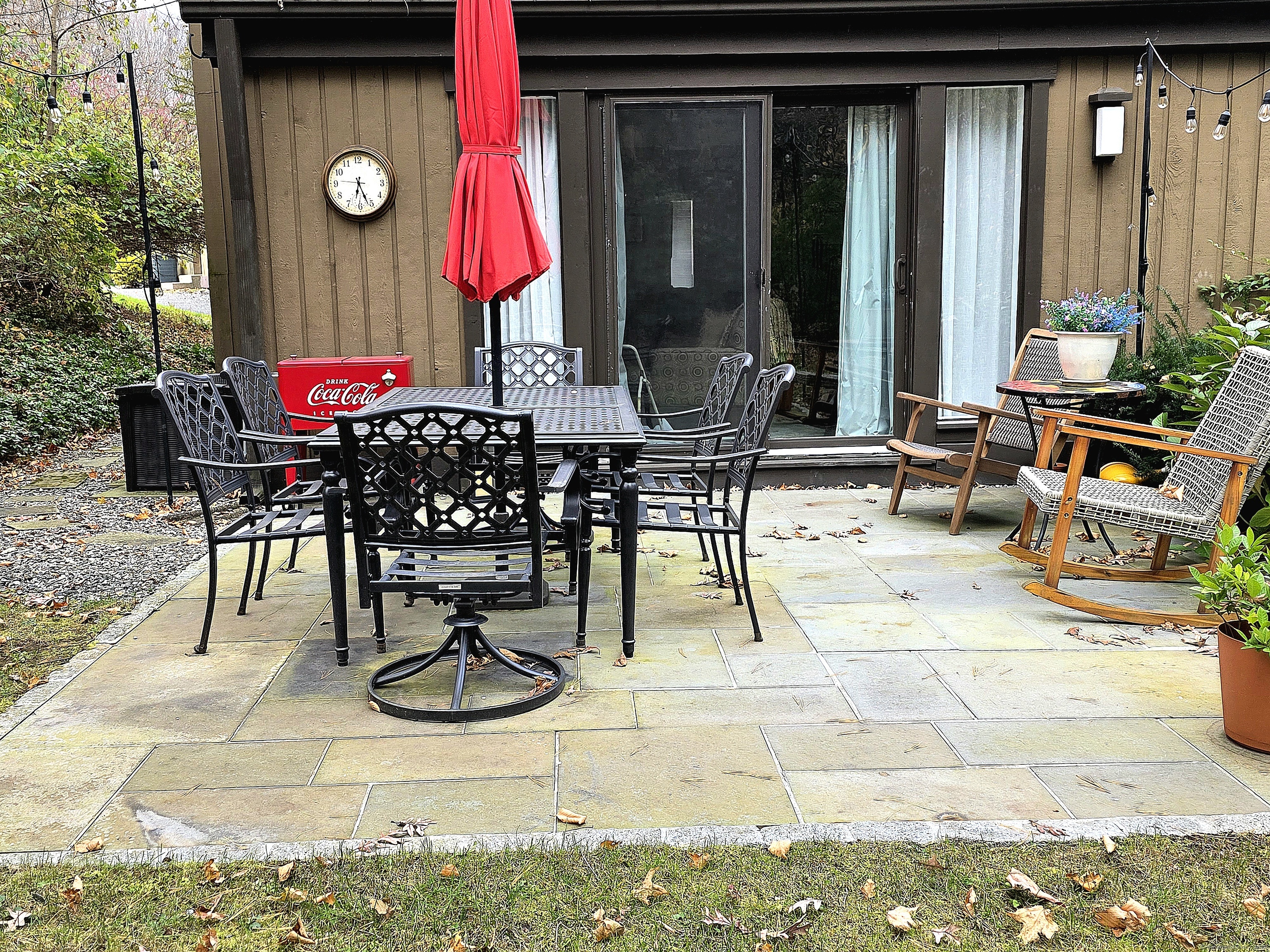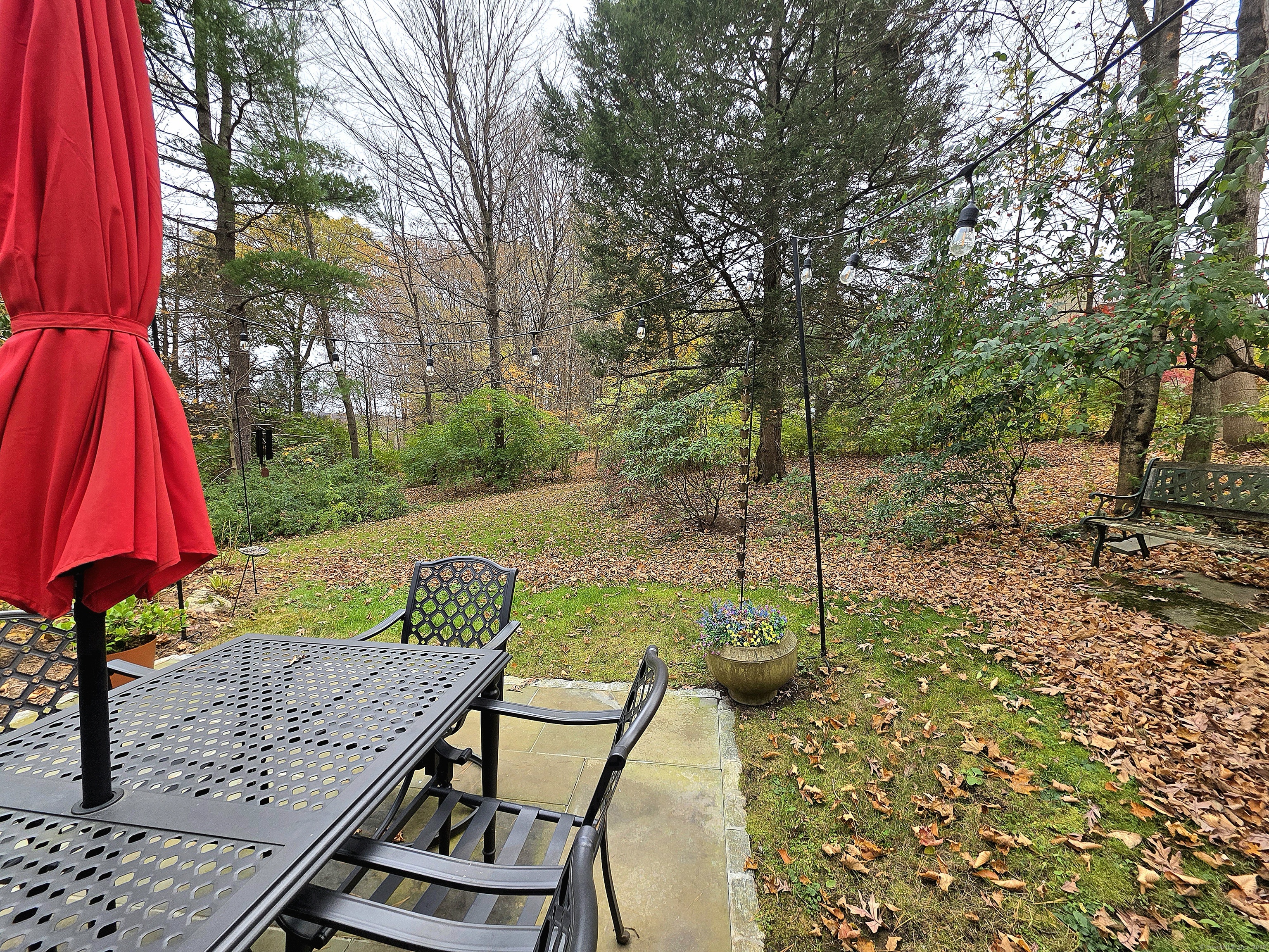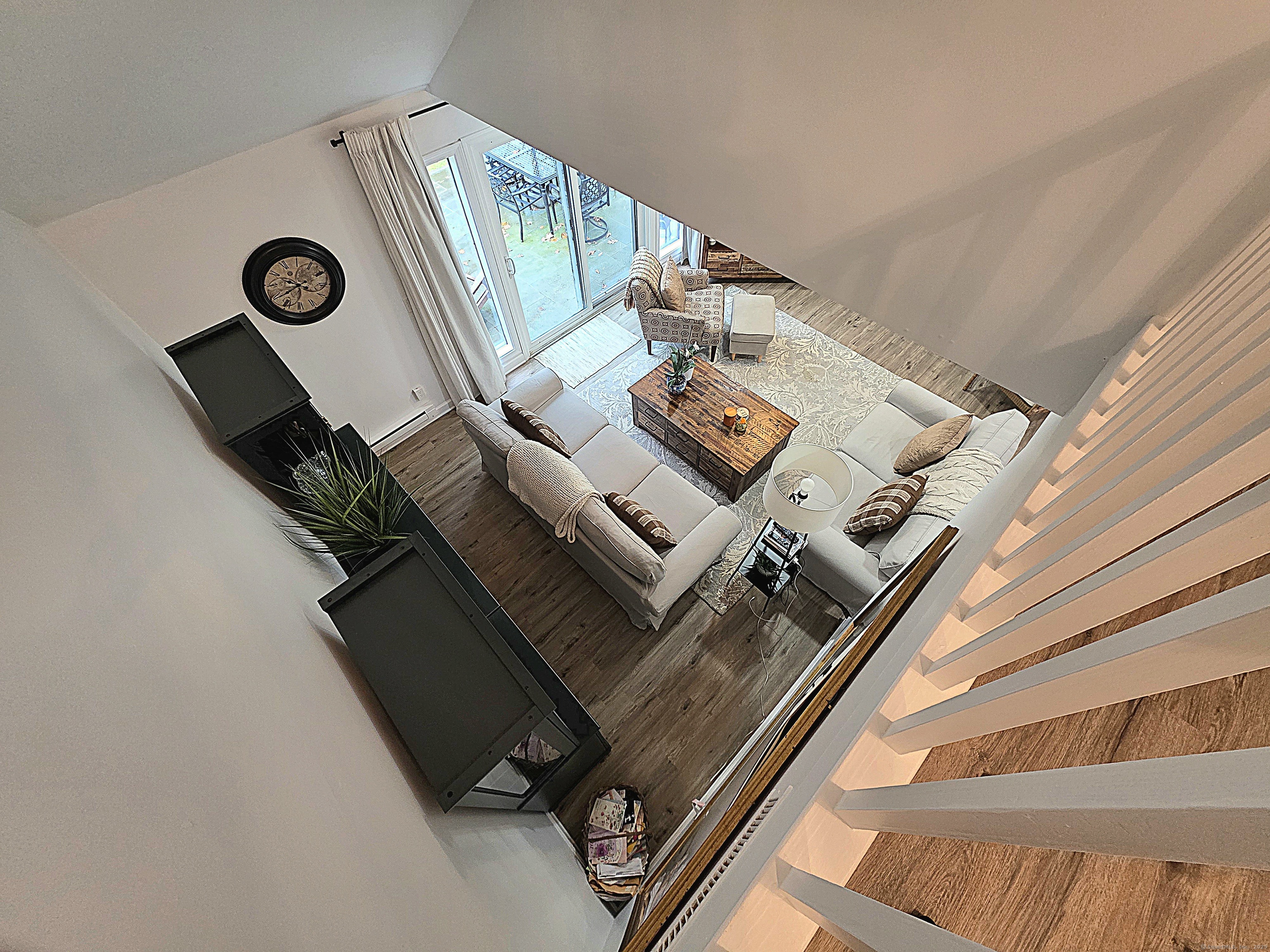 This chic, well maintained Franklin was originally renovated in 2023 but since then the current owner installed an economical HEAT PUMP, WATER METER, STORM DOOR, ADDITIONAL FIBERGLASS INSULATION IN THE ATTIC, and created a serene parklike setting when an oversized flagstone patio was installed beyond the back slider. Half of a duplex, the condo offers views of greenery from 3 of its 4 sides. Short, gentle walk, with no stairs, from the nearby garage to the private entrance plus walking distance to the ponds, pools 1 & 2 and most activity buildings. The new coat closet provides more storage and allows the old closet to be used as a pantry to supplement kitchen storage. Two sliders; one in the dining room & the other in the living room, provide ample opportunity to view passing wildlife & allow natural light to filter in. The open balcony lends a contemporary feel to the floorplan, brings natural light to the 2nd floor hallway & provides views of the living room & the green space beyond. Upstairs, the main bath was reimagined with a low step tiled shower that's no longer under the sloped eaves, and a laundry area that accommodates a full-sized front load washer & dryer, included in the sale. Uniform easy care luxury vinyl flooring throughout. Windows & sliders were replaced in 2023. Premium Cable, internet & pest control included in HOA. With so much to do, Heritage Village is where you'll live your best life. All buyers pay a 1-time equity fee of $5000 to HVF at closing