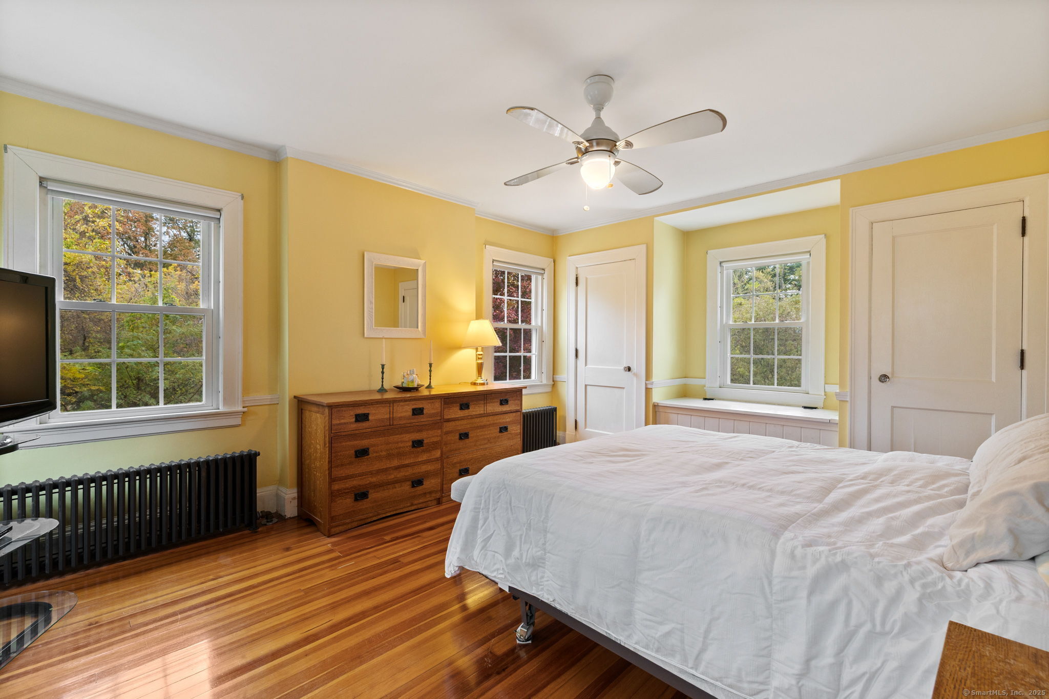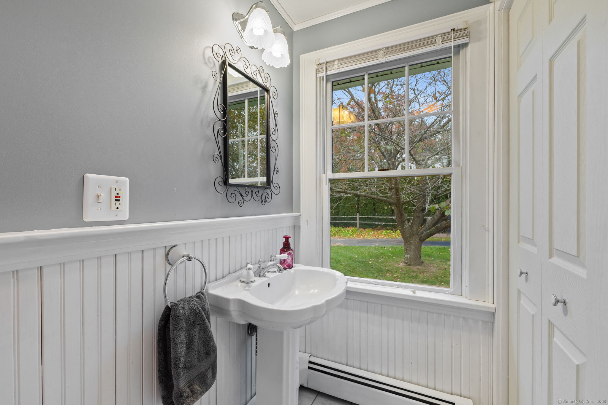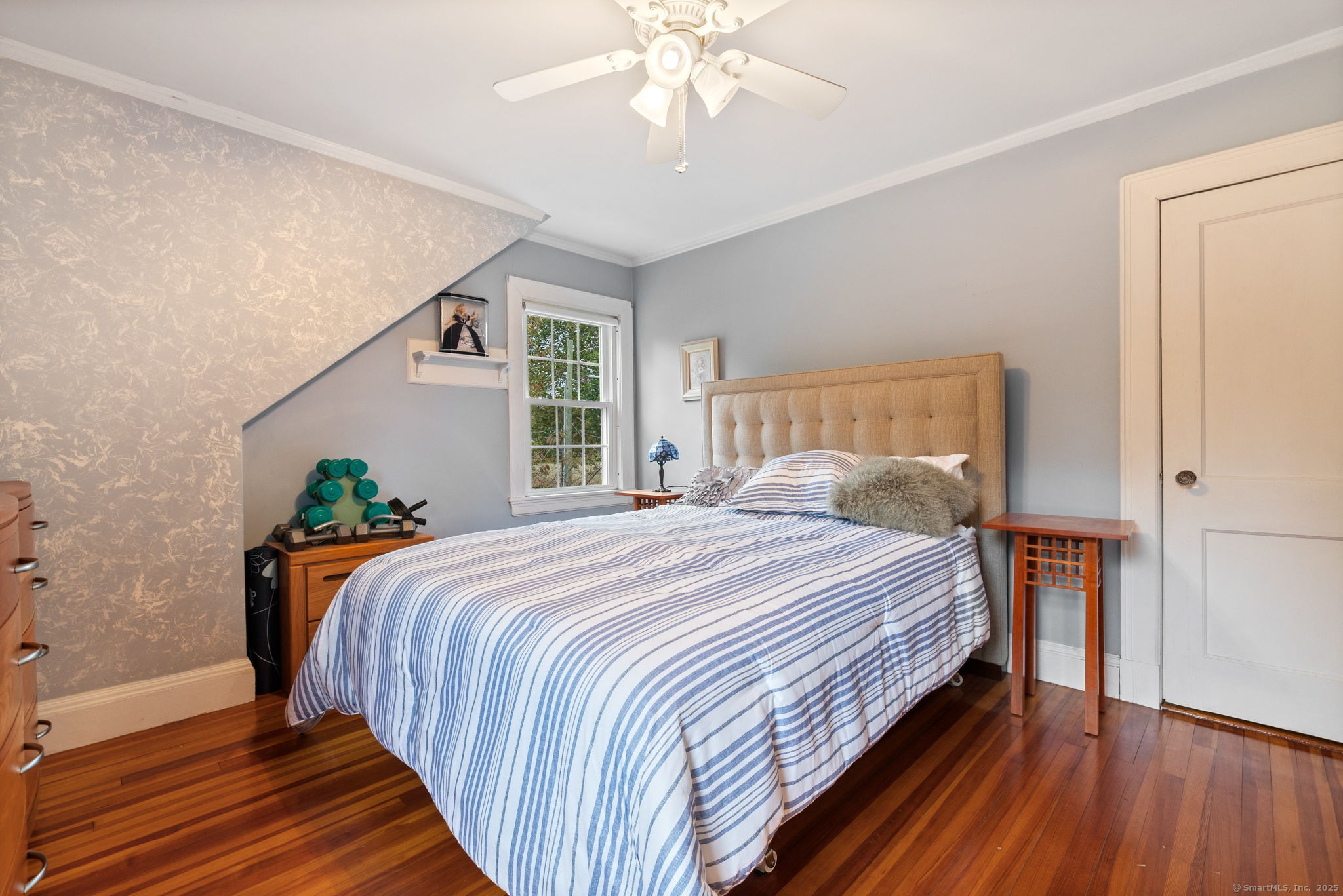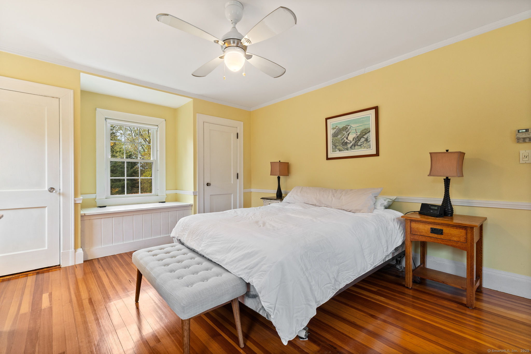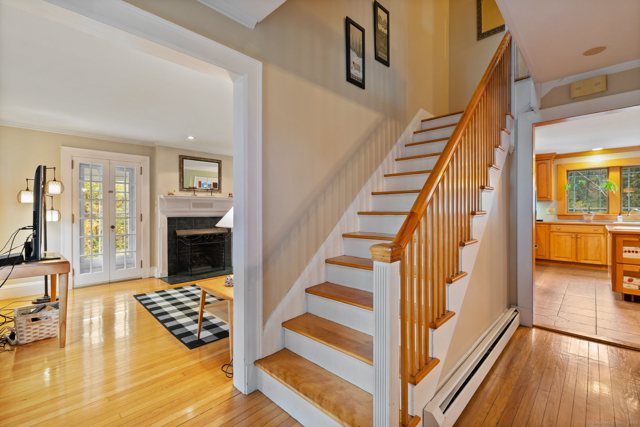 Welcome to this charming Colonial set on a picturesque .62-acre lot in the heart of South Windsor's historic district! Nestled on a quiet dead-end street and surrounded by peaceful farmland, this home offers a perfect blend of character and modern comfort. The first floor features a spacious eat-in kitchen with a center island, a full bath, convenient first-floor laundry, a formal dining room, and a cozy living room with a gas fireplace. Beautiful wood floors run throughout, adding warmth and timeless appeal. Upstairs, you'll find three inviting bedrooms, a full bath, and a walk-up attic offering great storage or potential for future expansion. Enjoy outdoor living on the large Trex deck overlooking the scenic backyard or relax on the charming side porch. Additional highlights include a brand-new septic system installed in 2025 and a storage shed for your outdoor equipment. A truly special home in a serene, historic setting!