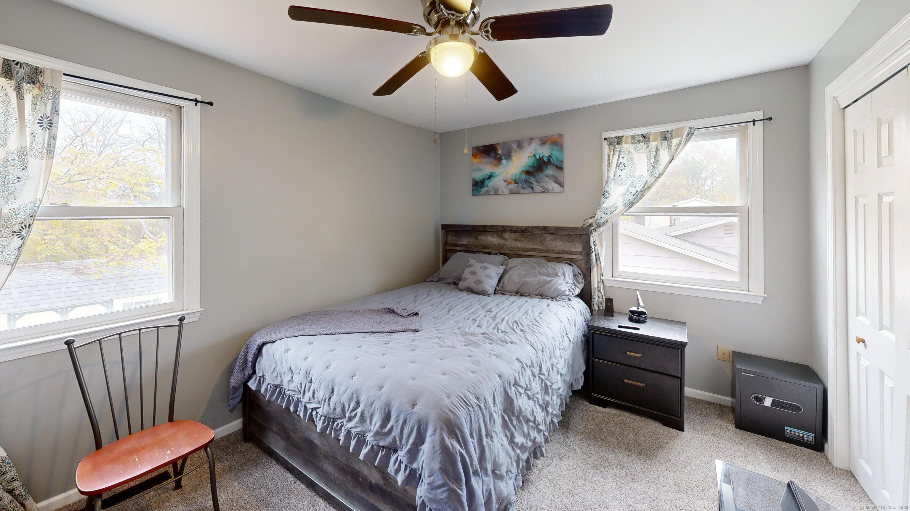 Well-maintained raised ranch located on a quiet cul-de-sac in desirable South Meriden. This home features an open floor plan with beautiful hardwood floors in the living and dining rooms. The updated kitchen offers tile flooring, a glass tile backsplash, and newer appliances (all less than a year old, except for the stove). The dining area has sliders to a deck overlooking the yard, complete with a shed for extra storage. Three bedrooms and 1.1 baths, with the half bath offering space to add a shower if desired. The finished lower level provides additional living space, ideal for a family room, with a small office, and a separate laundry room. Additional highlights include a one-car garage, gas furnace and central air (both approximately 5 years old), a new commercial-grade garage door opener with MyQ technology, smart thermostats, and solar panels for energy efficiency. A wonderful home in a convenient location close to schools, parks and more.