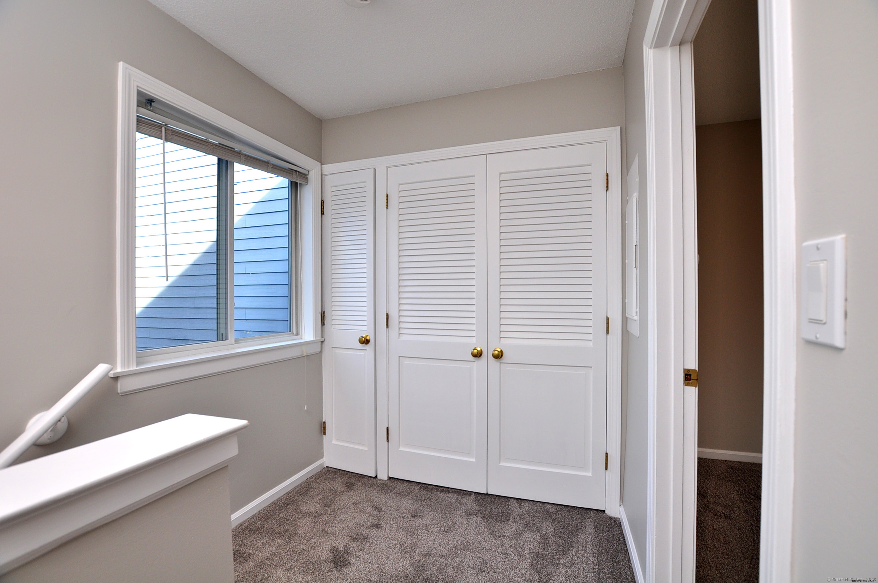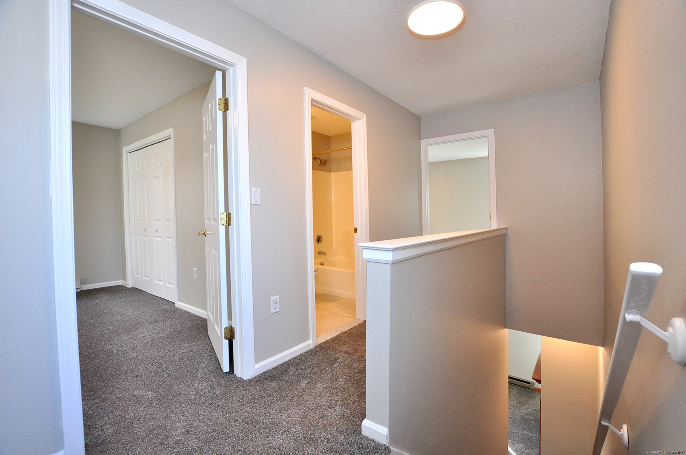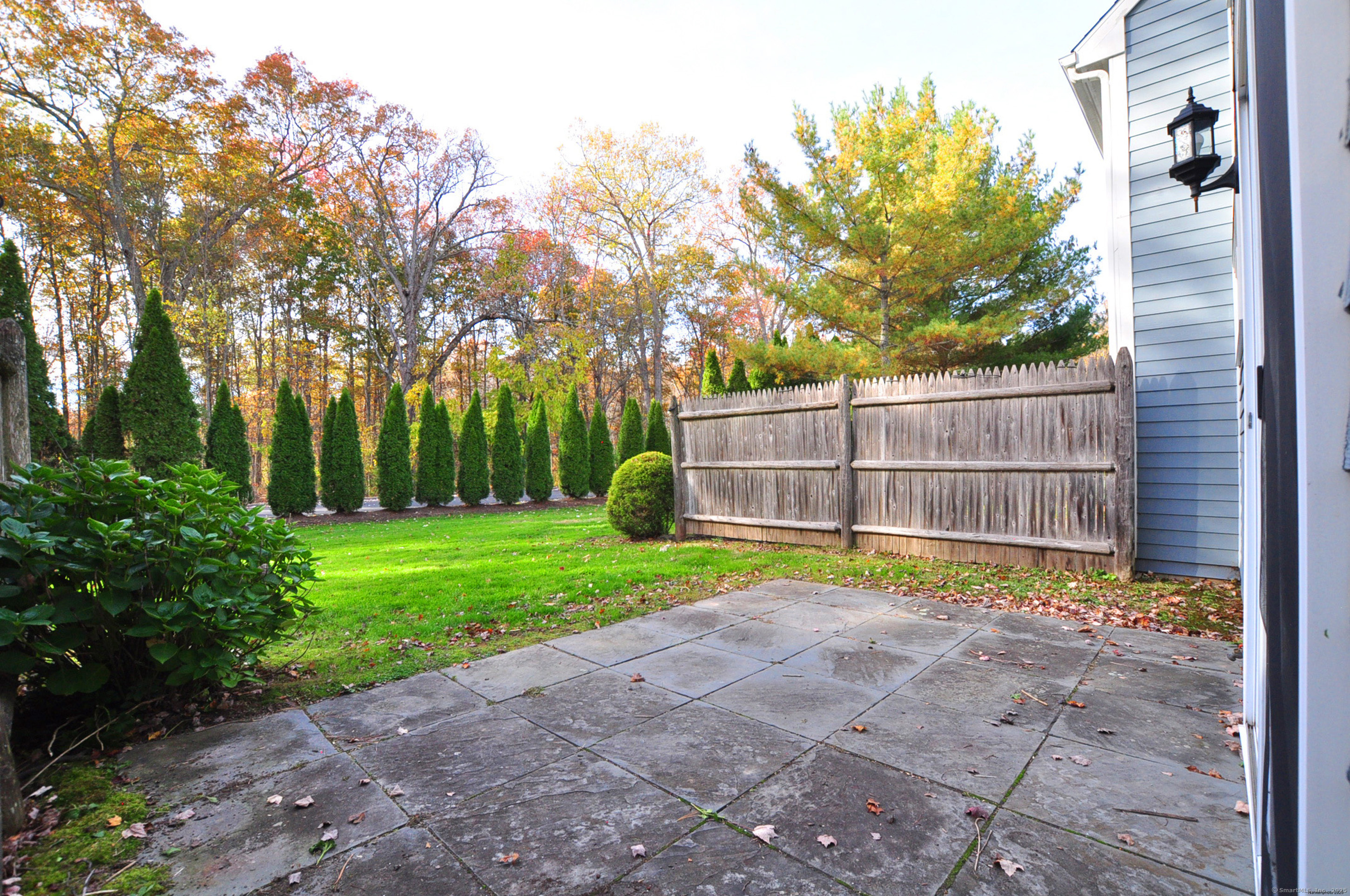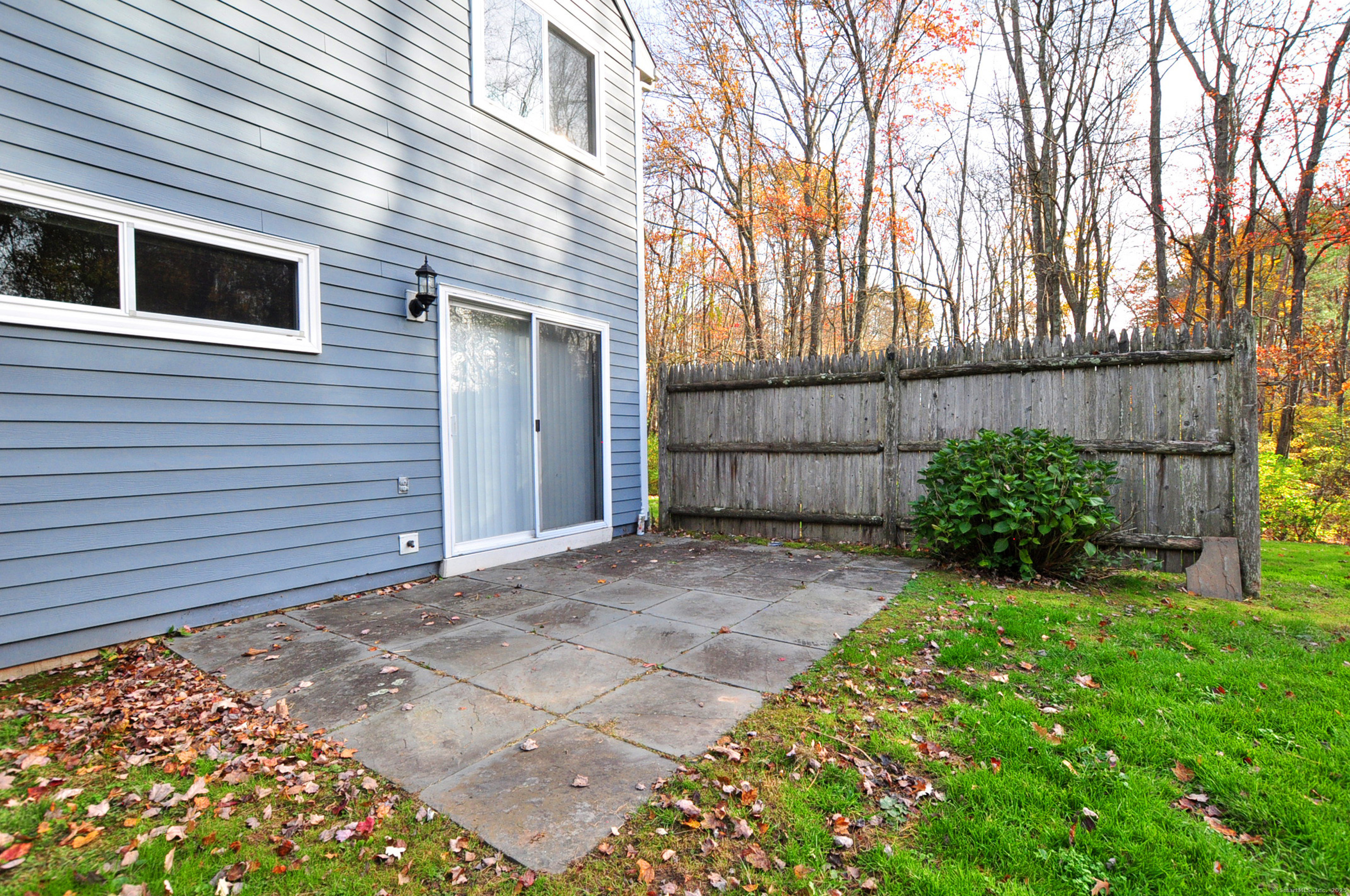 Welcome to this beautifully maintained end-unit townhouse, where comfort, style, and convenience come together seamlessly. Step inside to discover a freshly painted interior, updated lighting fixtures, and newer appliances that make this home truly move-in ready. The spacious open-concept layout connects the kitchen, dining, and living areas, creating a bright, inviting atmosphere that's perfect for both everyday living and entertaining. The living room features a cozy fireplace that adds warmth and sliding glass doors open to a private private surrounded by greenery, the perfect spot to enjoy your morning coffee or unwind at the end of the day. Natural light pours through thermopane windows, complementing the home's tasteful updates and airy feel. Upstairs, you'll find two generously sized bedrooms, each with ample closet space, along with two full baths and a convenient upper-level laundry area. The detached two-car garage offers plenty of parking and storage space, a rare bonus in townhouse living. With storm windows and doors, energy efficiency and year-round comfort come built in. Located in a quiet, well-maintained complex of just 30 homes, this property offers the best of privacy and community. The level, lightly wooded lot adds to the serene setting while keeping you close to everything, UConn Medical Center, Jackson Laboratory, Route 6, I-84, West Farms Mall, West Hartford Center, local parks, schools, and walking trails are all just minutes away.