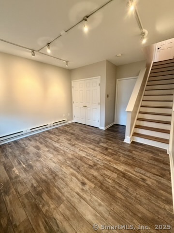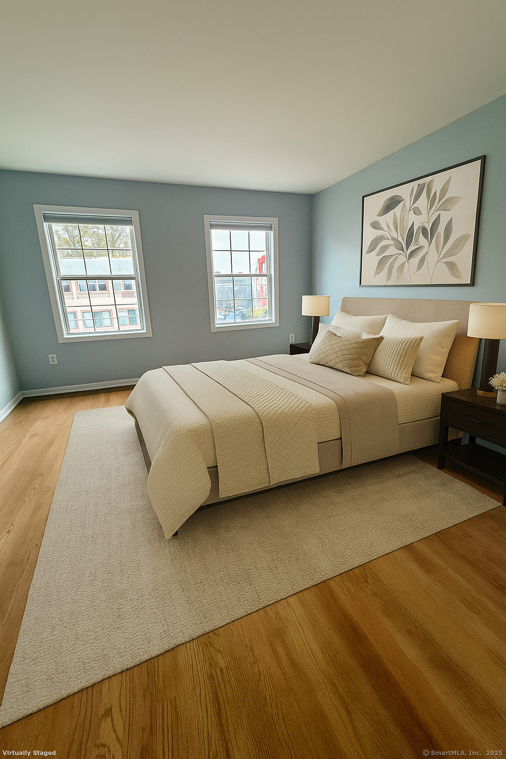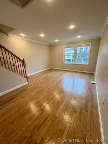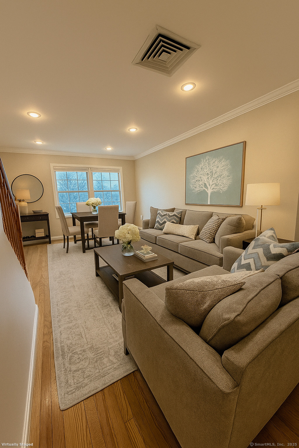 SHORT TERM/FLEXIBLE Rental Available NOV 2025. Beautifully updated and move-in ready 2-bedroom, 1.5-bath condo in downtown Stamford! Private entrance leads to a flexible den-perfect for a home office, gym, or playroom, with laundry and direct access to the private garage. The main level features an open living/dining area and a stunning farmhouse-style kitchen with subway tile backsplash, butcher-block countertops, open shelving, and a private balcony. Hardwood floors throughout. Upstairs offers two spacious bedrooms, including a primary suite with walk-in closet and oversized windows providing abundant natural light. Additional features include central air, pull-down attic storage, garage parking plus a second space. Fantastic downtown location-walk to train, shops, restaurants, parks, and public transportation. Short-term rental (6 month minimum preferred). No smoking. Excellent credit, employment verification, and references required.