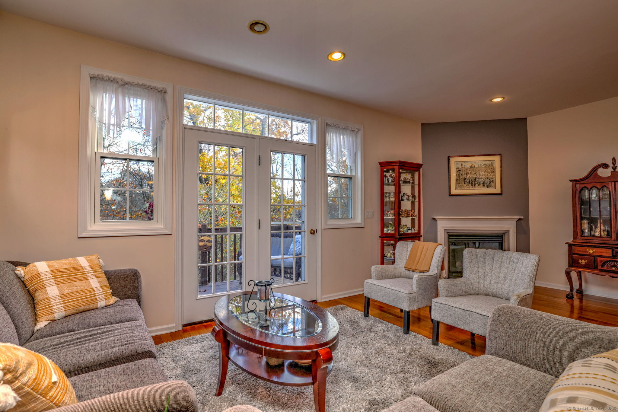 Welcome to this stunning sun-filled townhouse condo, located in the much-sought after Ridges at Pond Hill complex, where comfort meets style across three beautifully finished levels. Step into a bright and spacious living/dining room featuring gleaming hardwood floors, a cozy fireplace, and sliders that open to your own private deck-perfect for relaxing or entertaining. The chef's kitchen is a showstopper with granite countertops, stainless steel appliances, white cabinetry, a sunny bay window, and a charming eat-in nook. Enjoy the convenience of a remodeled powder room and hardwood floors throughout. Upstairs, the expansive primary suite boasts a dramatic cathedral ceiling, abundant natural light, generous closet space, and a luxurious en-suite bath with a soaking tub, separate stall shower, and double sink vanity. An additional full bath serves the upper level. The walkout lower level offers a bright and versatile family room-ideal for a gym, media lounge, or creative space-plus extra storage. With gas heat, updated mechanicals, and recent improvements including a new roof and freshly paved roads in the complex, this home is move-in ready and built to impress. New furnace/Ac - 2 yrs, new roof and driveways/complex roads in 2023.