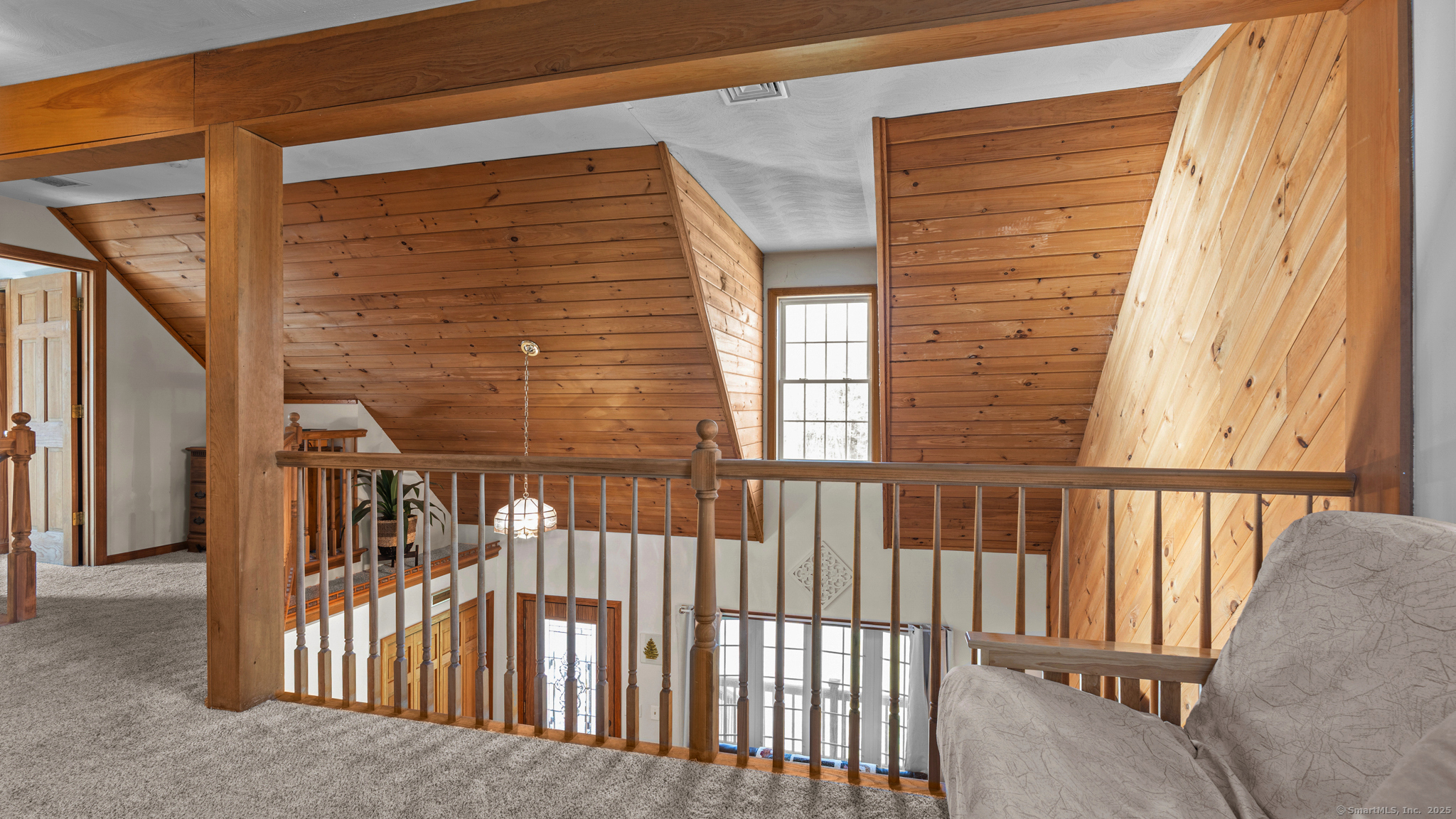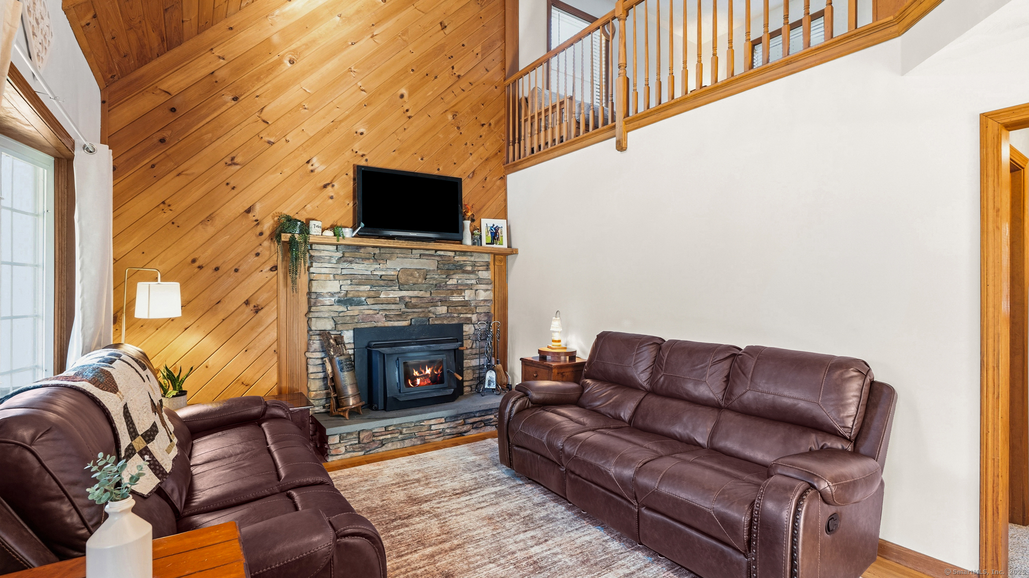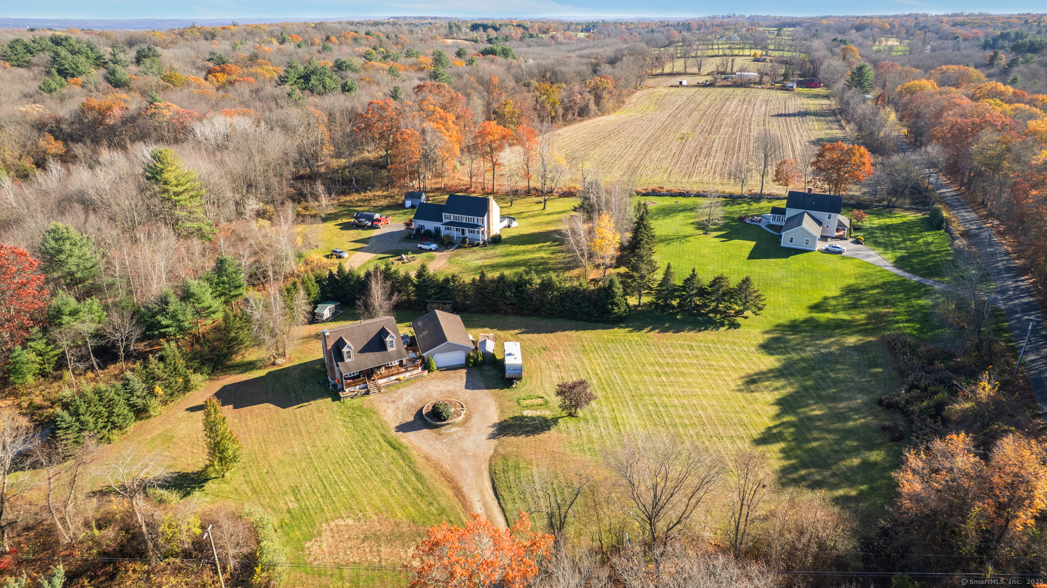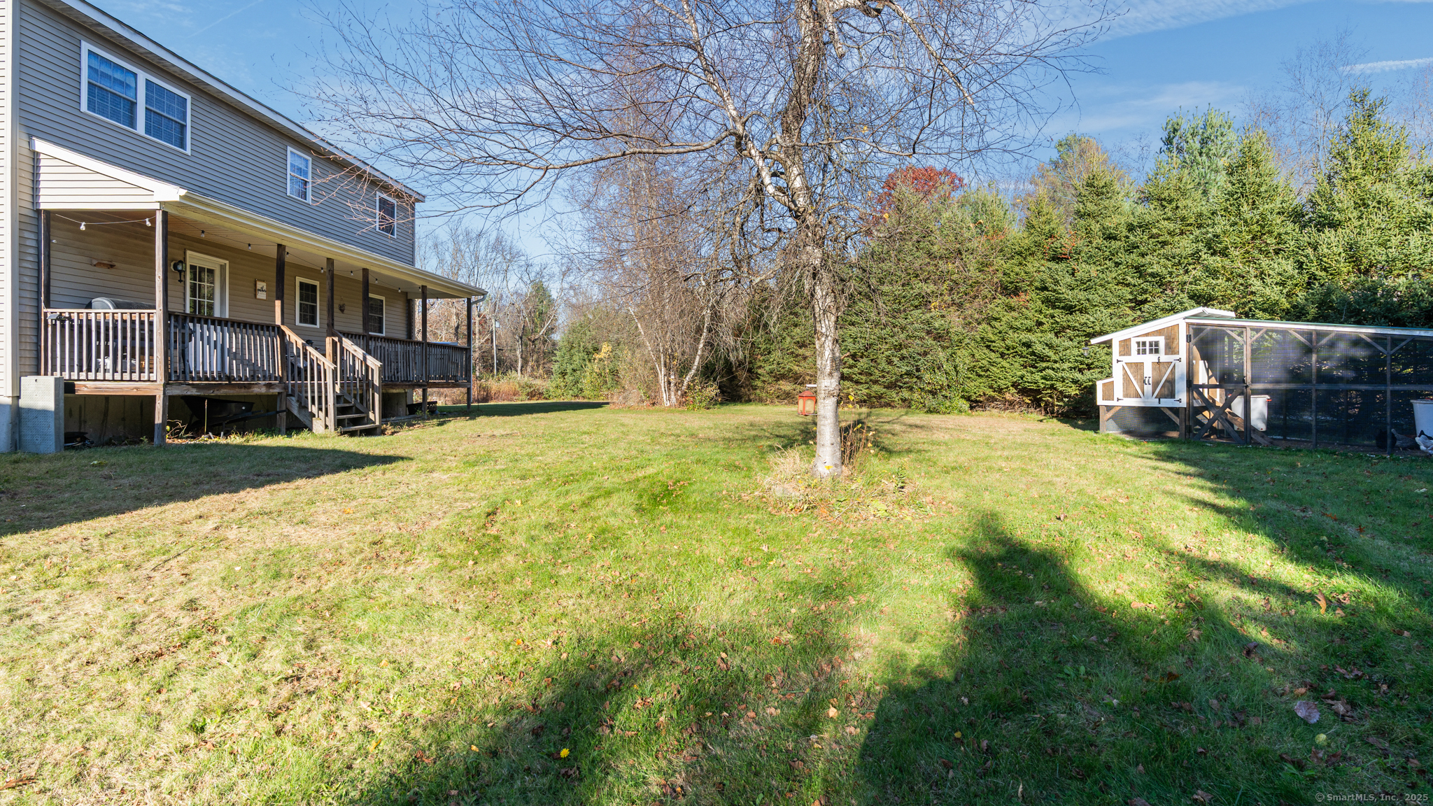 Charming Cape on a Beautiful Level Lot! Welcome home to this inviting Cape featuring a warm and welcoming fireplaced living room with Split rail balcony and vaulted ceiling, perfect for relaxing or entertaining. The spacious eat-in kitchen offers plenty of natural light and functionality for everyday living. Enjoy central air conditioning for year-round comfort and unwind on the classic farmers porch front and back overlooking the picturesque yard. The property also includes a detached oversized two-bay garage, ideal for vehicles, hobbies, or extra storage. Set on a nice level lot, this home combines New England charm with modern conveniences-ready for you to move right in and make it your own!