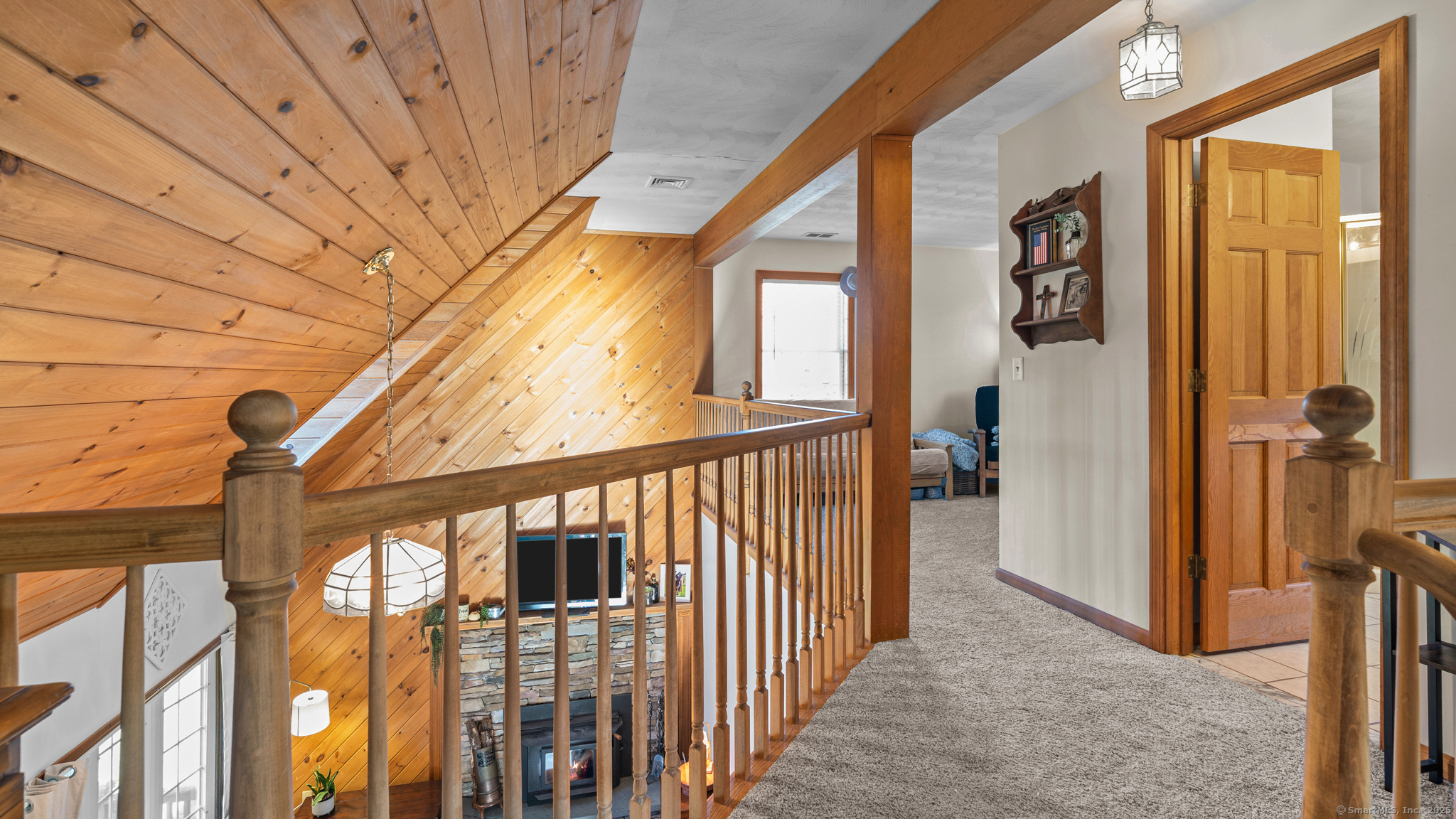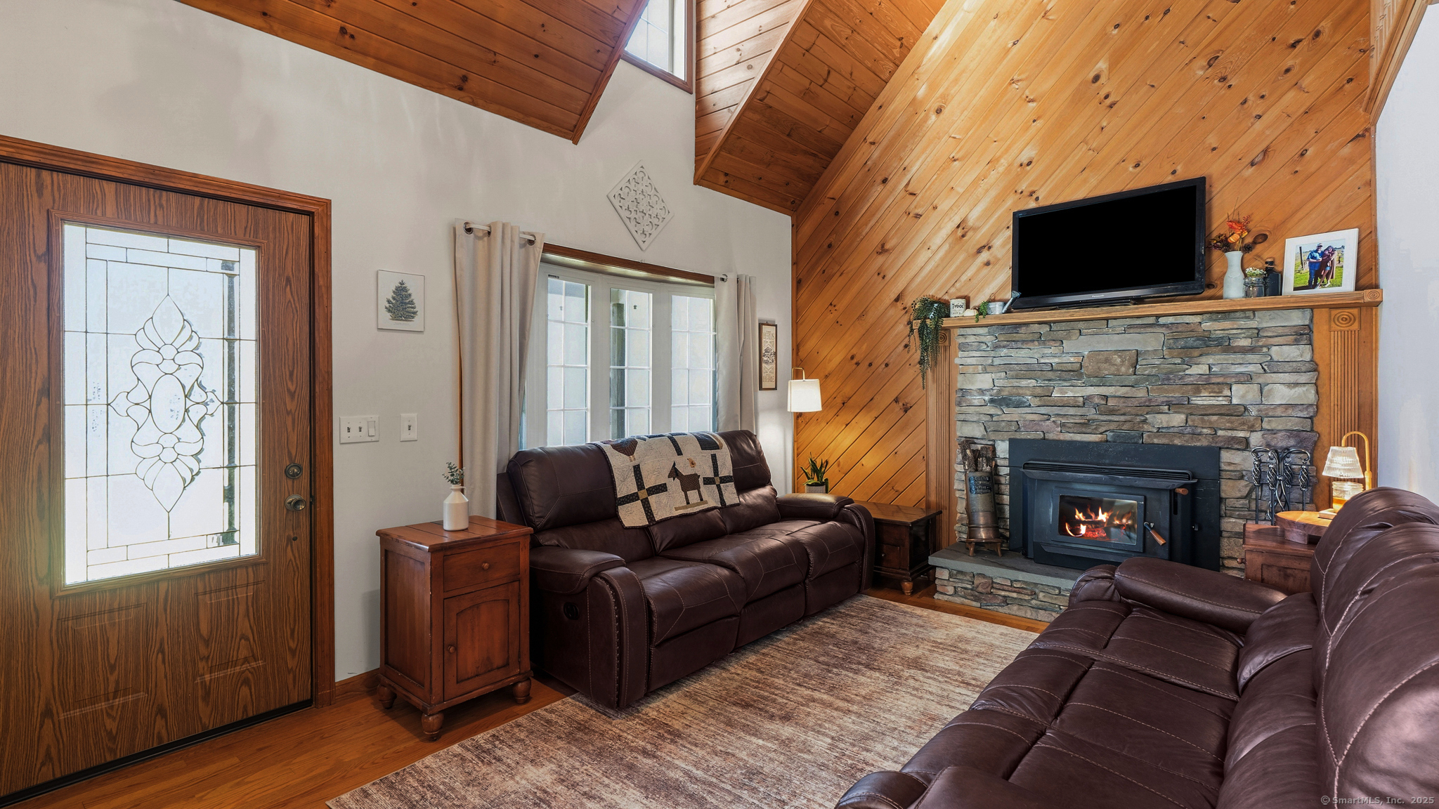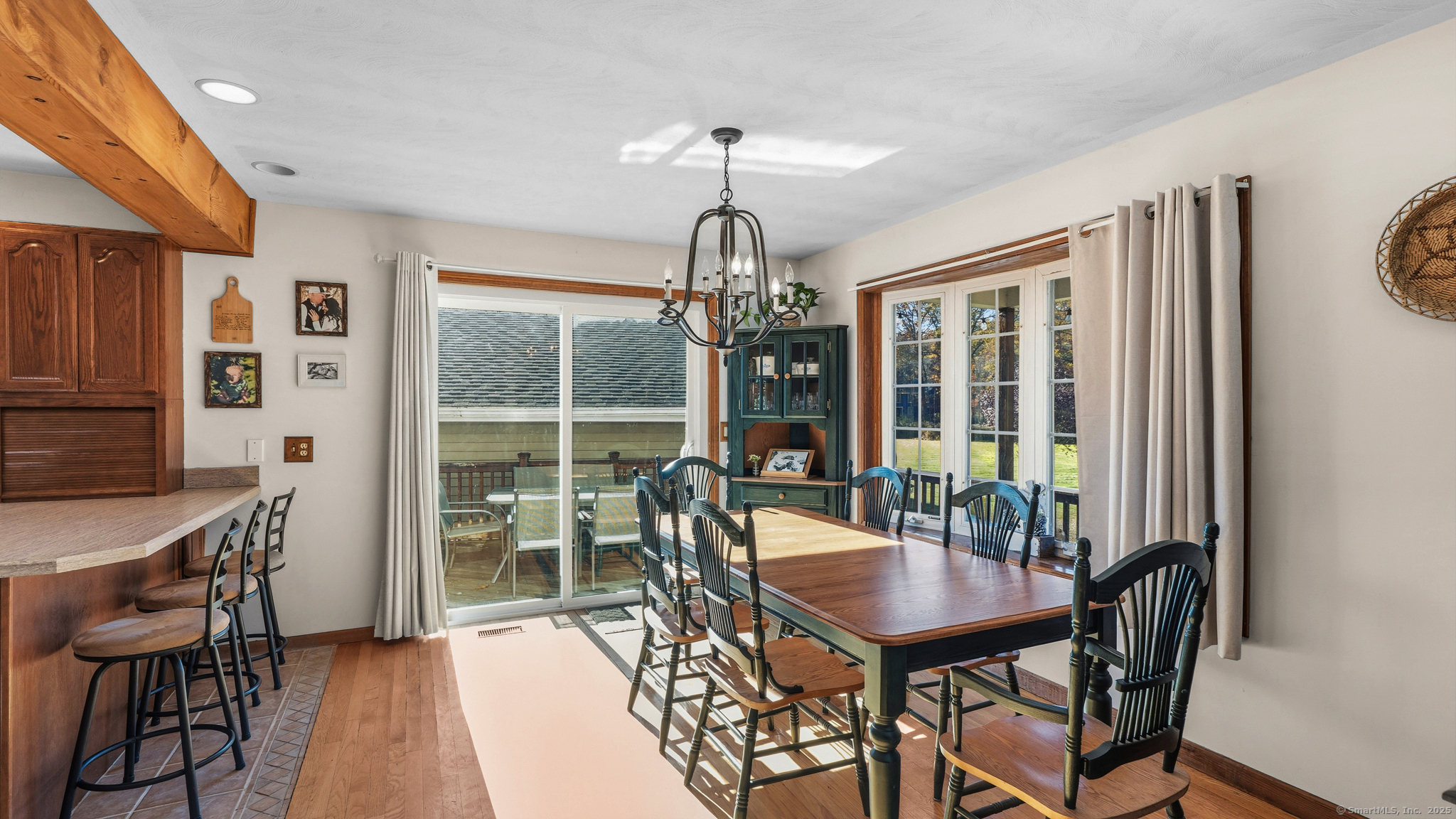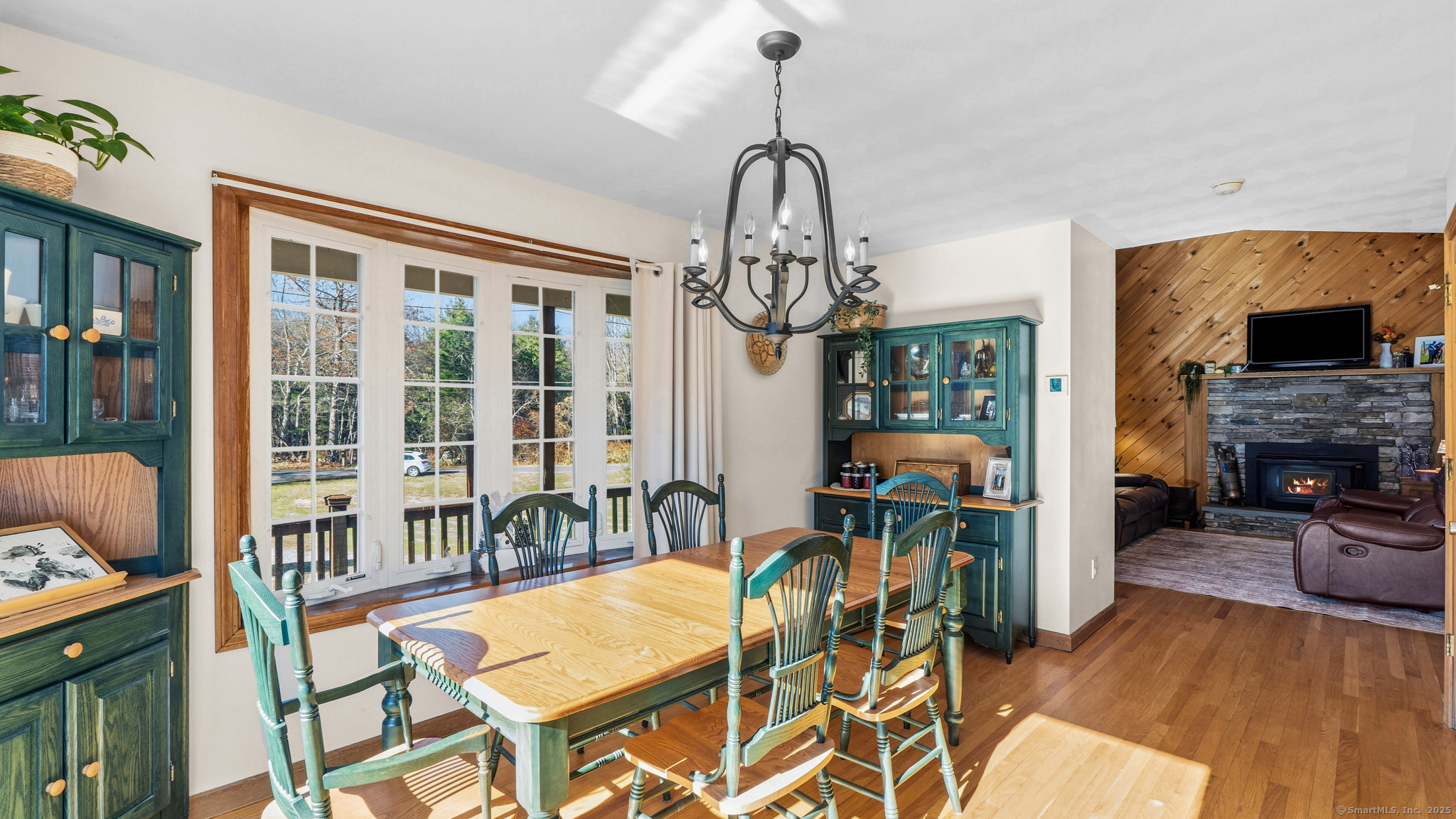 Charming Cape on a Beautiful Level Lot! Welcome home to this inviting Cape featuring a warm and welcoming fireplaced living room with Split rail balcony and vaulted ceiling, perfect for relaxing or entertaining. The spacious eat-in kitchen offers plenty of natural light and functionality for everyday living. Enjoy central air conditioning for year-round comfort and unwind on the classic farmers porch front and back overlooking the picturesque yard. The property also includes a detached oversized two-bay garage, ideal for vehicles, hobbies, or extra storage. Set on a nice level lot, this home combines New England charm with modern conveniences-ready for you to move right in and make it your own!