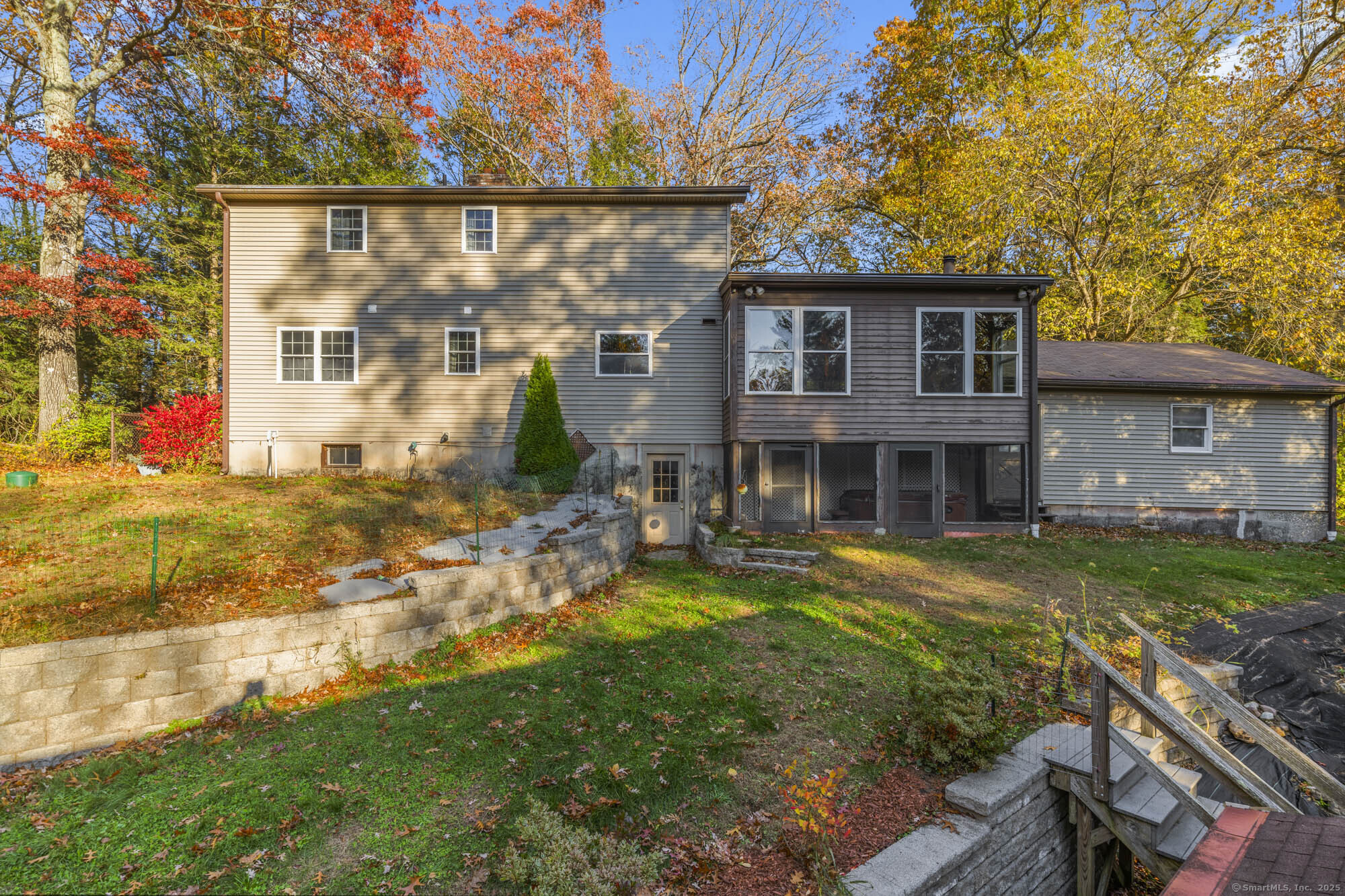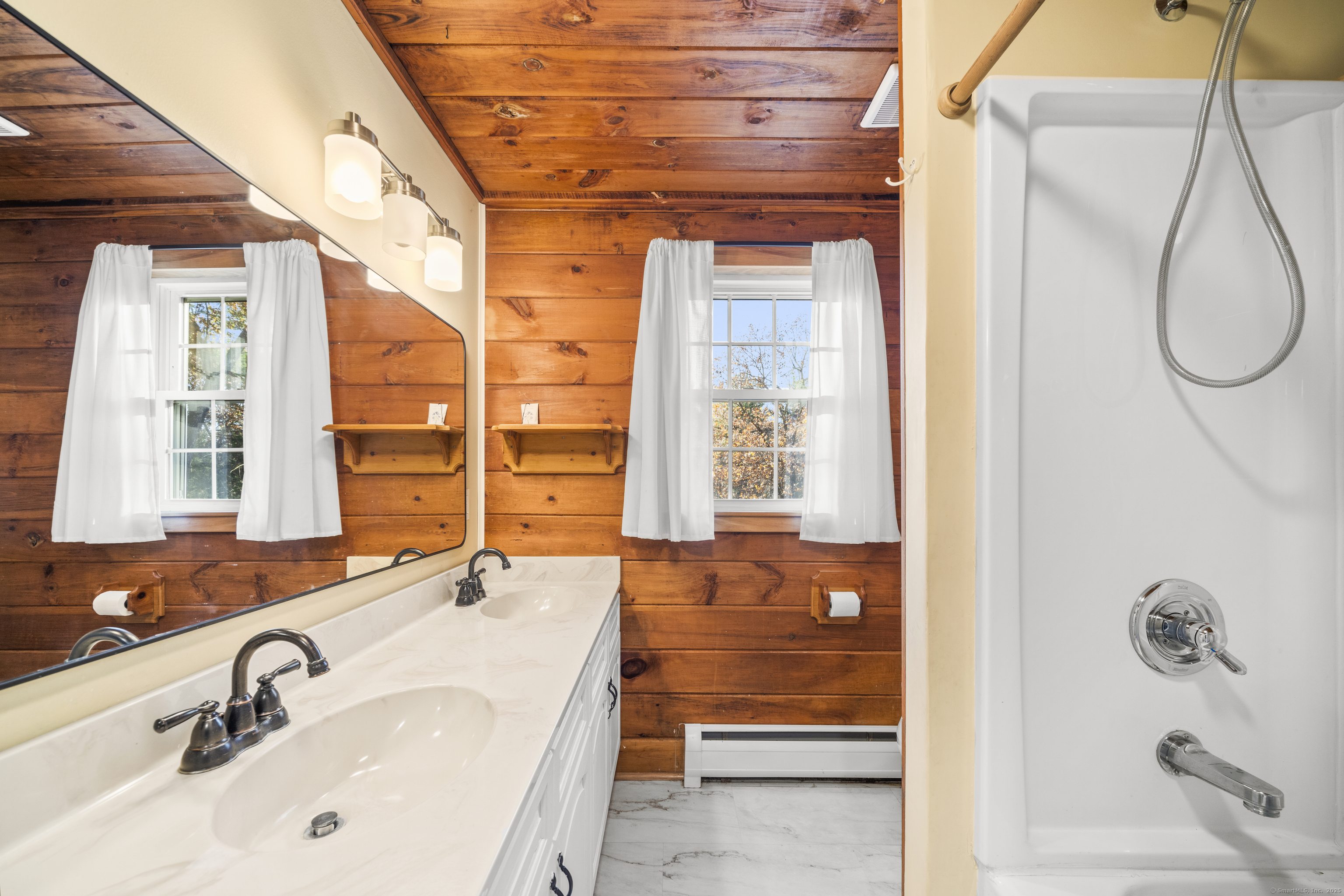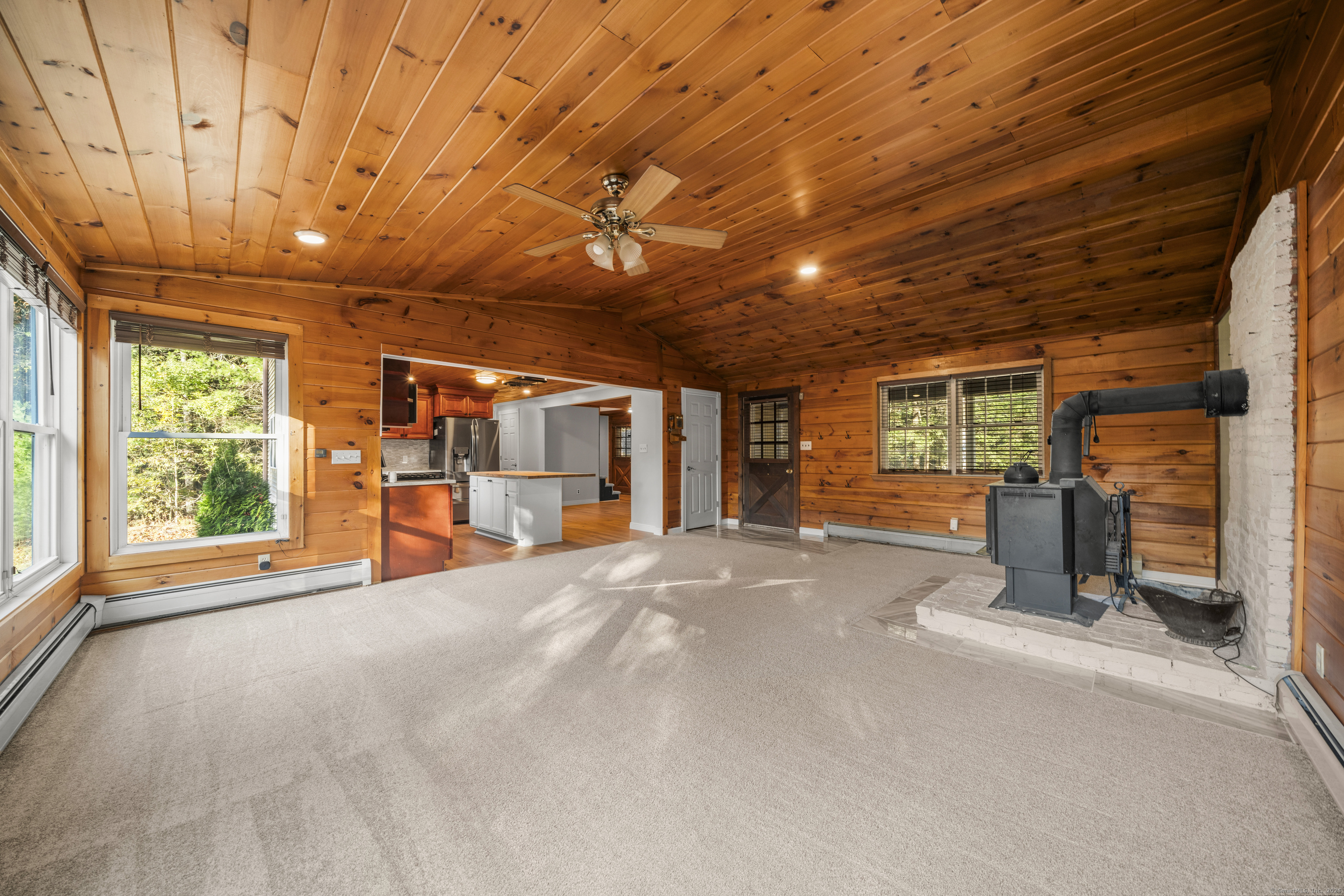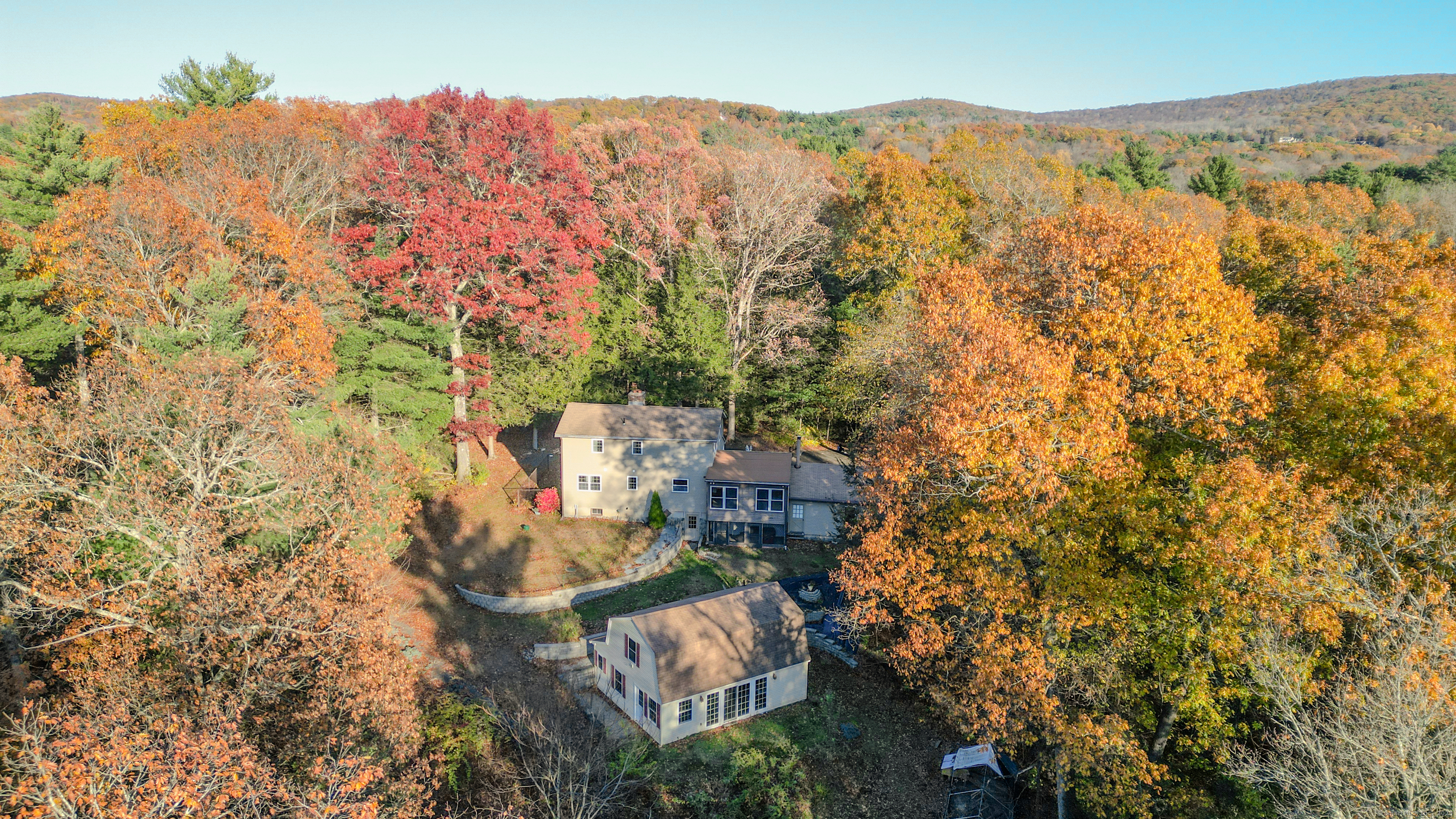 Private country retreat on 5.04 acres with a 1,200 SF outbuilding & paddock, ideal for horses or a home business. Set back from the road, this beautiful property offers open space, wooded views, and a peaceful natural setting with a babbling brook and walking path through the trees. The large covered porch is perfect for relaxing and taking in the view. Inside, the living room, kitchen, and dining area share an open layout filled with natural light from oversized windows. The updated kitchen features a gas stove, generous cabinetry, and warm wood details that create an inviting atmosphere. The first floor primary suite includes a full bath and walk in closet, providing comfort and convenience for main level living. Upstairs are 3 comfortable bedrooms and a full bath. The walk out basement provides expansion possibilities and leads to a covered patio area with a private hot tub, perfect for relaxing while overlooking the peaceful surroundings. The impressive 1,200 SF two story outbuilding features radiant in floor heat, electricity, and a half bath, offering flexibility for a studio, workshop, or approved in-home business. This property is designed for a relaxed country lifestyle with areas for gardening and recreation, a paddock area suitable for horses or other animals, and thoughtful touches that enhance the country charm, including a chicken coop, dog kennel, and playscape nestled among the trees. The maple taps complete the classic New England character of this home.
