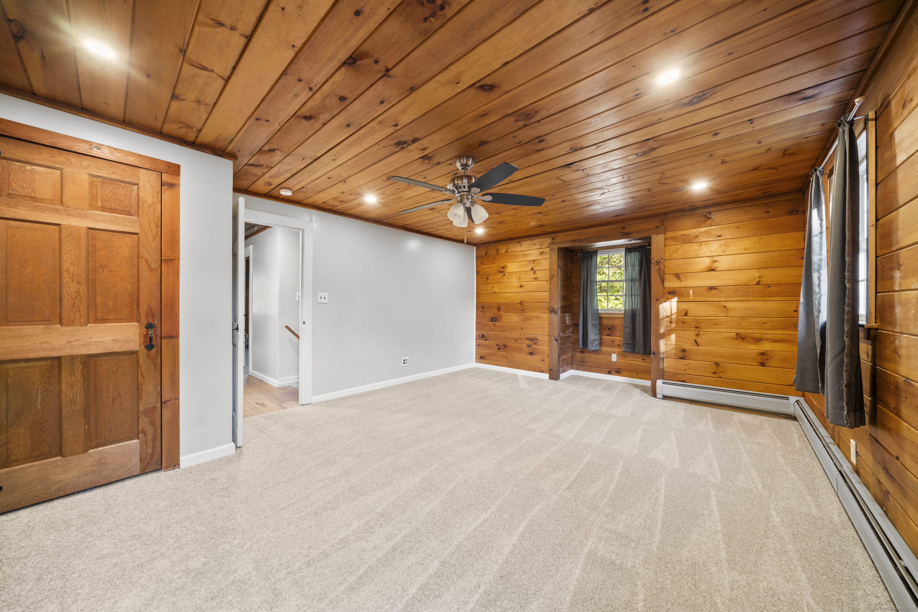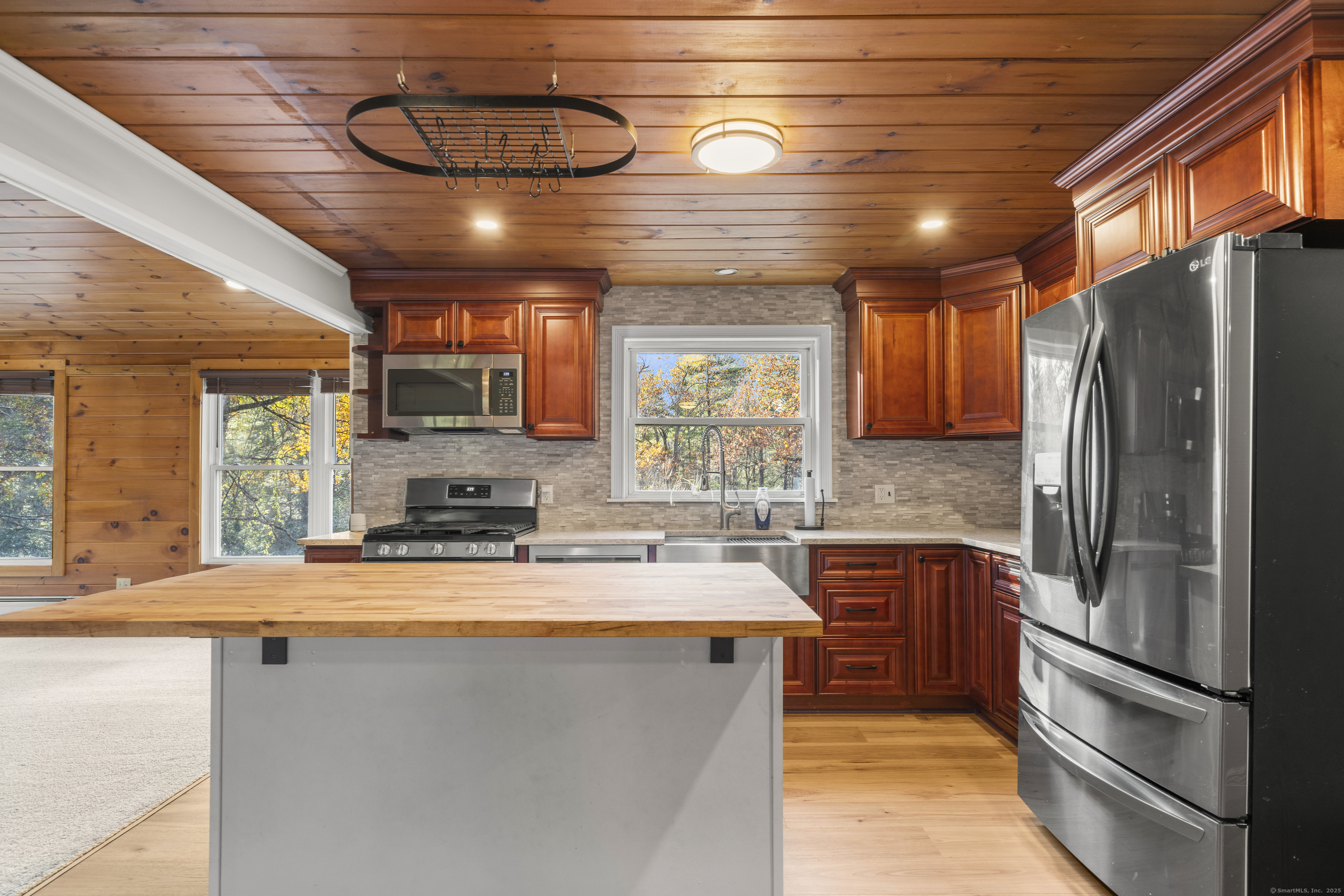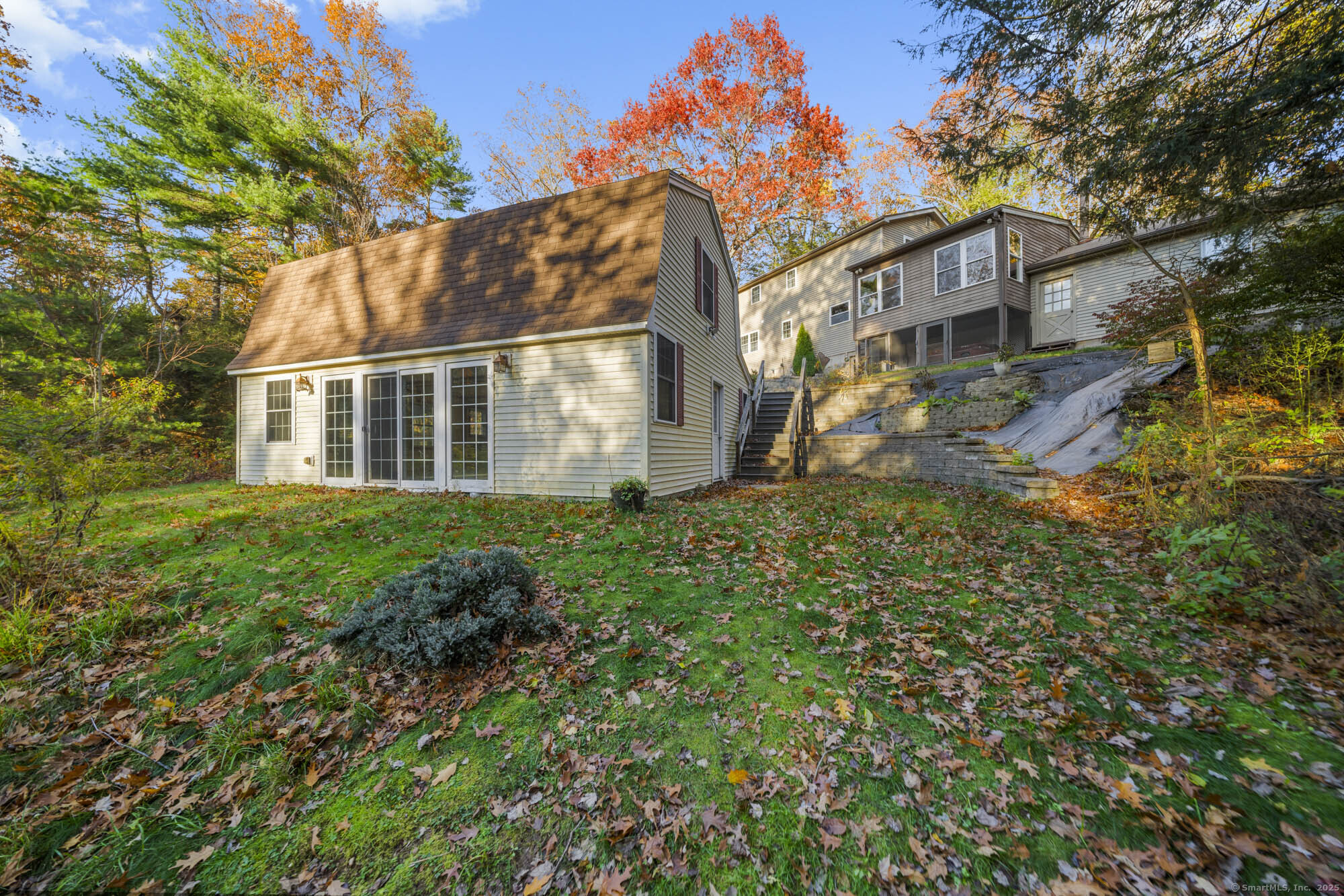 Private country retreat on 5.04 acres with a 1,200 SF outbuilding & paddock, ideal for horses or a home business. Set back from the road, this beautiful property offers open space, wooded views, and a peaceful natural setting with a babbling brook and walking path through the trees. The large covered porch is perfect for relaxing and taking in the view. Inside, the living room, kitchen, and dining area share an open layout filled with natural light from oversized windows. The updated kitchen features a gas stove, generous cabinetry, and warm wood details that create an inviting atmosphere. The first floor primary suite includes a full bath and walk in closet, providing comfort and convenience for main level living. Upstairs are 3 comfortable bedrooms and a full bath. The walk out basement provides expansion possibilities and leads to a covered patio area with a private hot tub, perfect for relaxing while overlooking the peaceful surroundings. The impressive 1,200 SF two story outbuilding features radiant in floor heat, electricity, and a half bath, offering flexibility for a studio, workshop, or approved in-home business. This property is designed for a relaxed country lifestyle with areas for gardening and recreation, a paddock area suitable for horses or other animals, and thoughtful touches that enhance the country charm, including a chicken coop, dog kennel, and playscape nestled among the trees. The maple taps complete the classic New England character of this home.