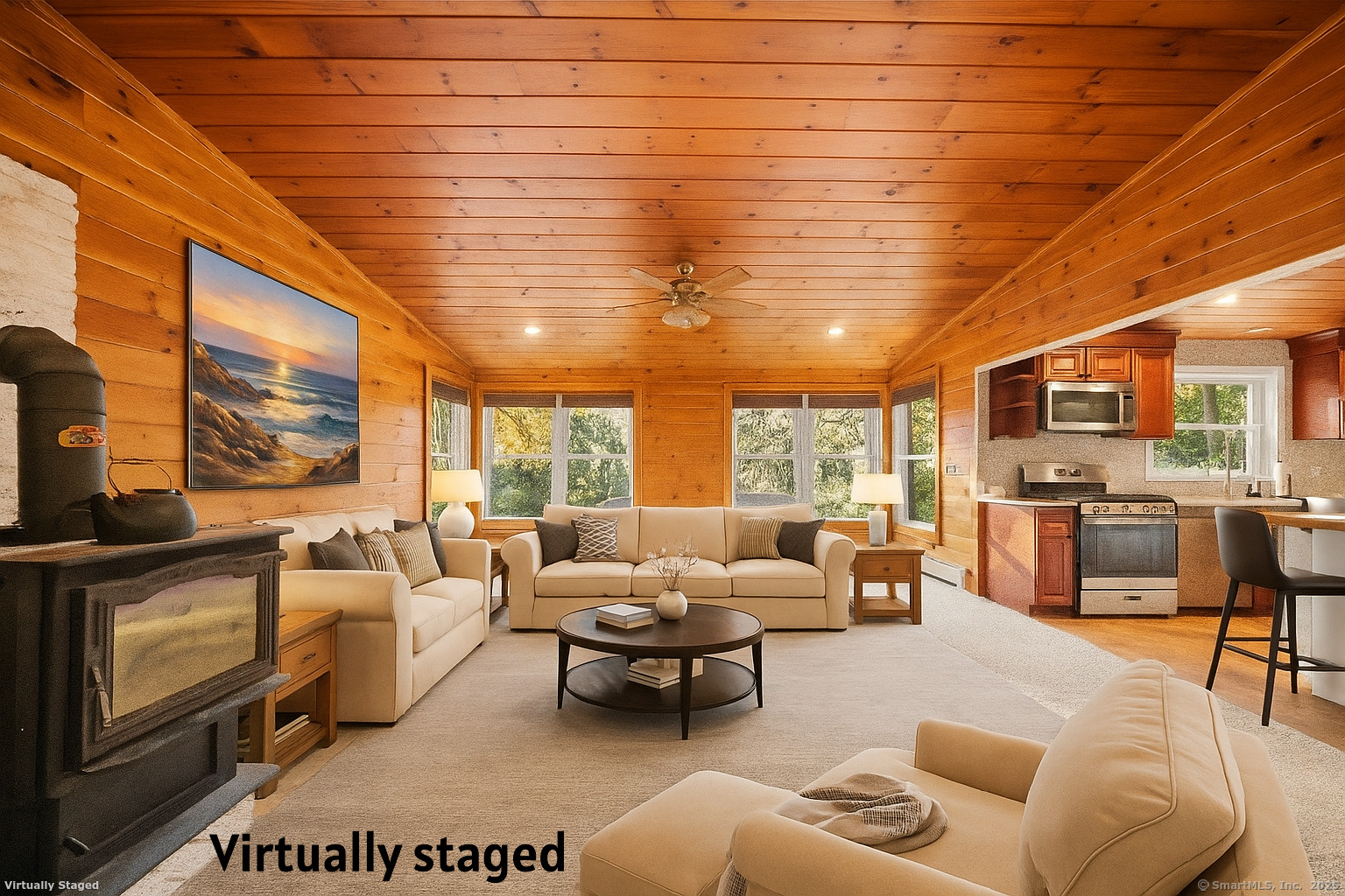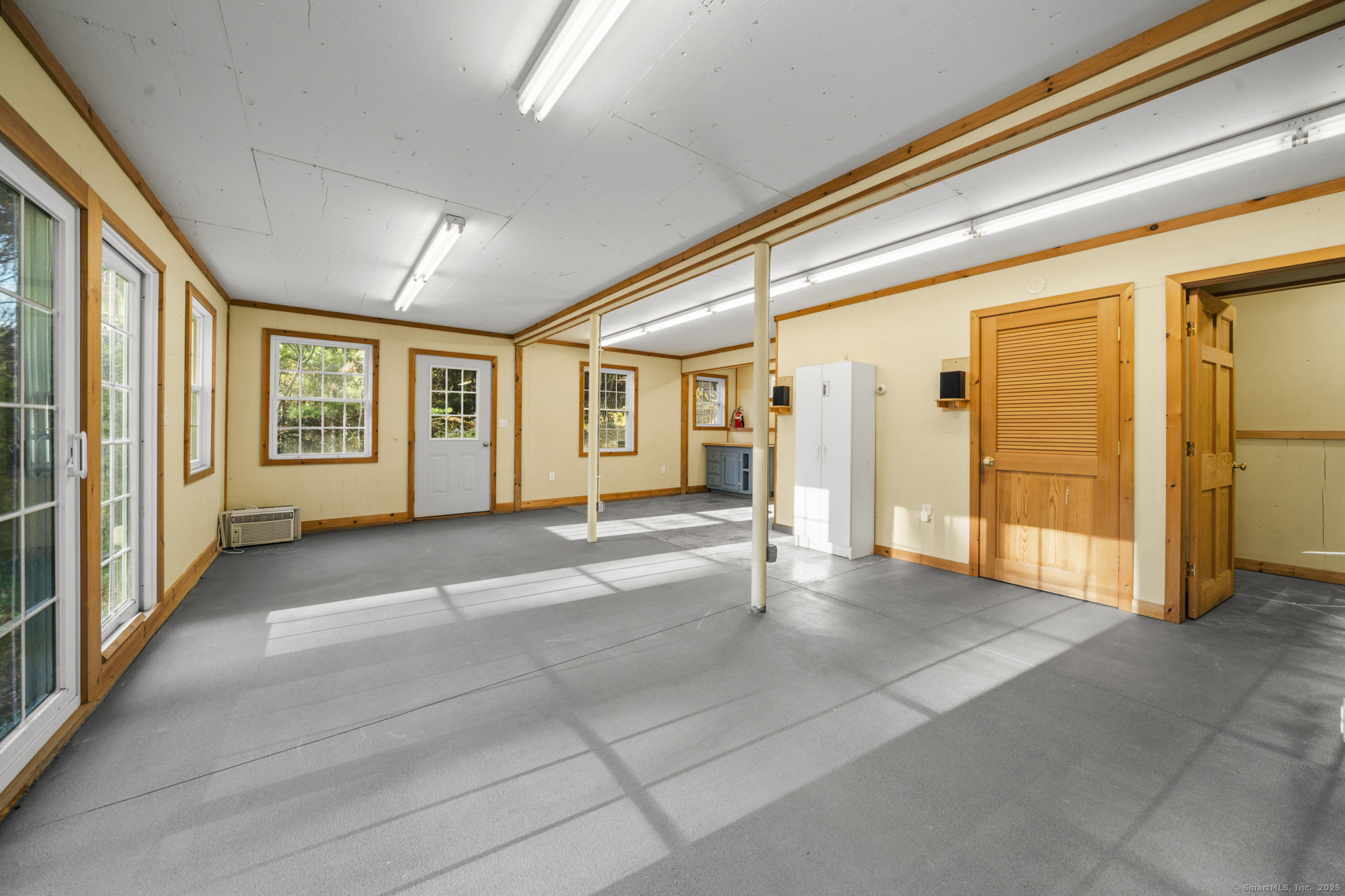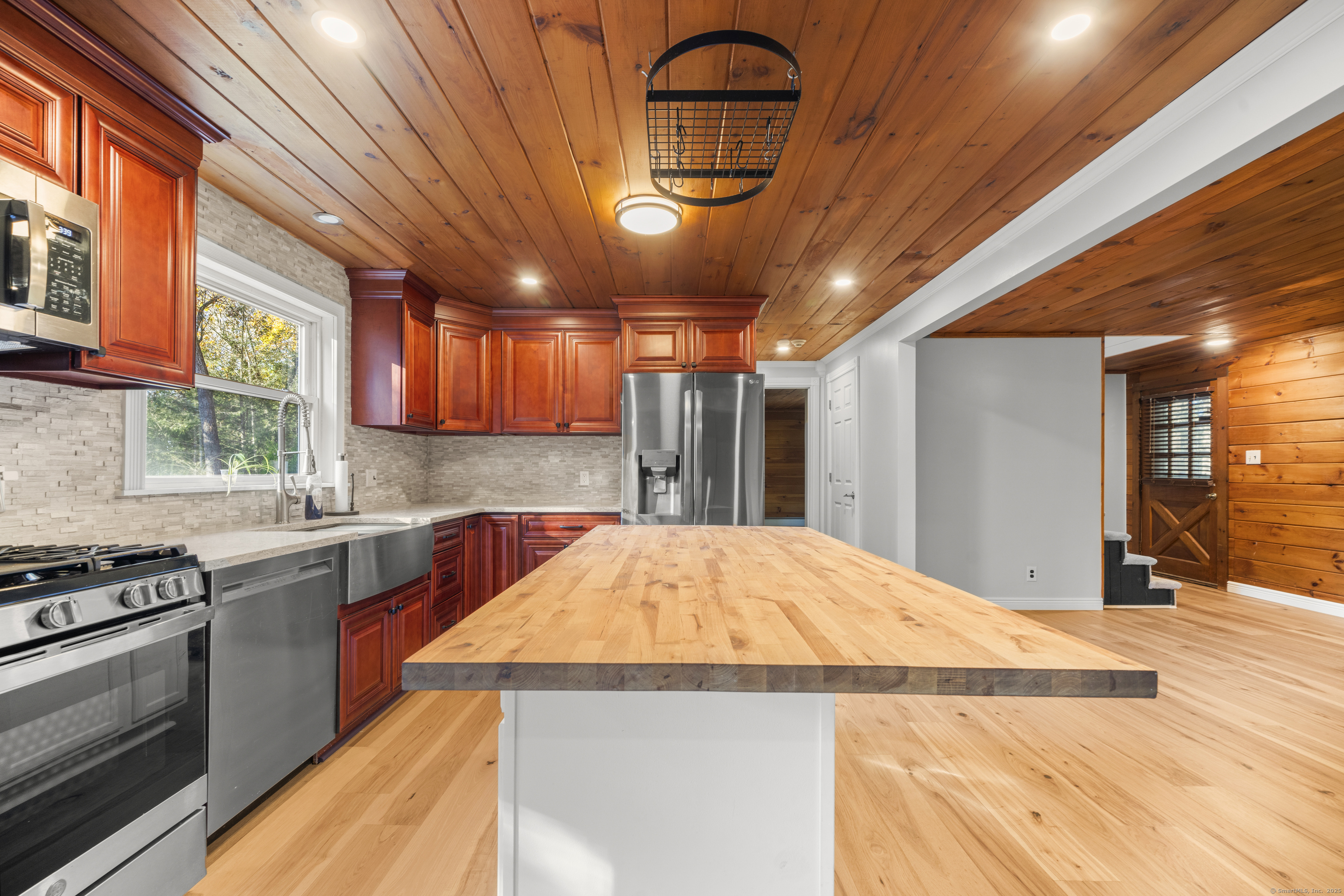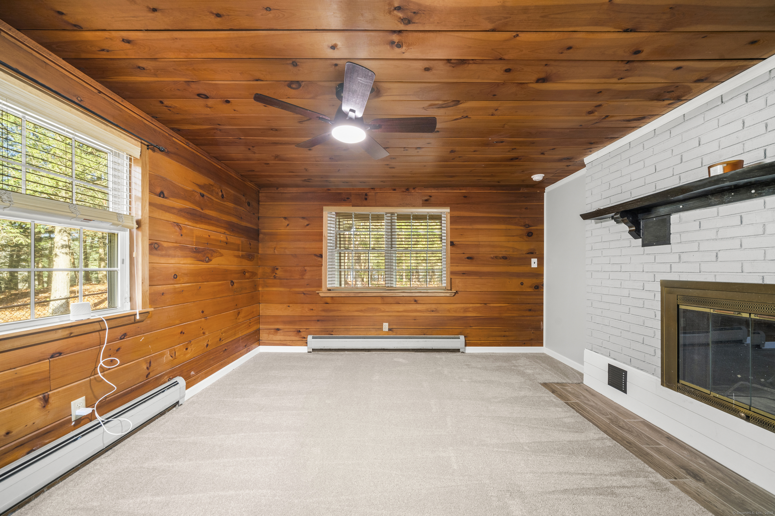 Private country retreat on 5.04 acres with a 1,200 SF outbuilding & paddock, ideal for horses or a home business. Set back from the road, this beautiful property offers open space, wooded views, and a peaceful natural setting with a babbling brook and walking path through the trees. The large covered porch is perfect for relaxing and taking in the view. Inside, the living room, kitchen, and dining area share an open layout filled with natural light from oversized windows. The updated kitchen features a gas stove, generous cabinetry, and warm wood details that create an inviting atmosphere. The first floor primary suite includes a full bath and walk in closet, providing comfort and convenience for main level living. Upstairs are 3 comfortable bedrooms and a full bath. The walk out basement provides expansion possibilities and leads to a covered patio area with a private hot tub, perfect for relaxing while overlooking the peaceful surroundings. The impressive 1,200 SF two story outbuilding features radiant in floor heat, electricity, and a half bath, offering flexibility for a studio, workshop, or approved in-home business. This property is designed for a relaxed country lifestyle with areas for gardening and recreation, a paddock area suitable for horses or other animals, and thoughtful touches that enhance the country charm, including a chicken coop, dog kennel, and playscape nestled among the trees. The maple taps complete the classic New England character of this home.