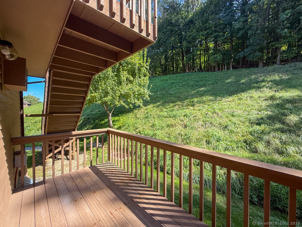 Discover the charm of this delightful one-bedroom, one-bath ranch-style end-unit at the "Riverbank Crossing" Community. Featuring a private garage and just a few steps from the shared entry door for this unit and one neighbor above. The inviting living room is highlighted by a wood-burning fireplace and custom built-ins, creating a cozy atmosphere. The kitchen features tile flooring, a brand-new stove and dishwasher, and a newer refrigerator, making meal prep a breeze. Adjacent to the kitchen, you'll find a dining area with sliders opening to the front deck, perfect for outdoor dining or relaxation. The spacious bedroom at the rear of the unit features a walk-in closet and a private deck offering serene views of nature. Enjoy the elegance of hardwood flooring throughout the living, dining, and bedroom areas. The below-unit garage features a generous 9 x 9 storage area and the hot water heater. The unit features electric heat and two new air conditioning wall units installed in 2024, with ample visitor parking and a location just minutes from shopping, dining, and I-84. No pets, no smoking. Excellent credit a must.