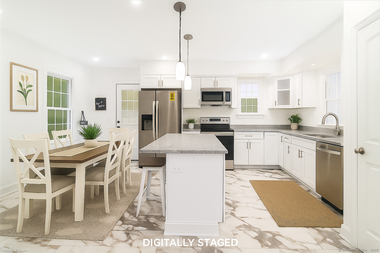 Welcome to 62 Davis Street, Danbury, CT - a stunning four-level, fully renovated home that blends modern luxury, quality craftsmanship, and true move-in-ready comfort. Every detail has been meticulously redone, from the new flooring, lighting, HVAC, including Central Air, to the gourmet eat-in kitchen featuring center island, stainless steel appliances, soft close cabinetry and designer brushed satin hardware. The 2nd floor offers 3 spacious bedrooms, each with gleaming hardwood floors, including a primary suite with a walk-in closet! Both full bathrooms have been tastefully updated! This fabulous home is move-in ready with modern upgrades including NEW: roof, siding, windows, doors, gutters, plus 200-amp electrical, two-zone heating and cooling, tankless water heater and closed-cell insulation for energy efficiency. Enjoy the heated four-season sunroom, perfect for relaxing or entertaining year-round, or step out onto the oversized covered deck overlooking a private and partially fenced backyard. The walk-up attic is heated and floored, ready for finishing, and the walk out lower level offers potential for a home gym, playroom, or storage. A detached one-car garage with a walk-up loft adds functionality. Located on a sidewalk-lined street with city water and sewer. A short walk to the elementary school, this home offers everything today's buyers want - turnkey condition, thoughtful upgrades, and room to grow. Don't miss the opportunity to own this impeccably restored home.