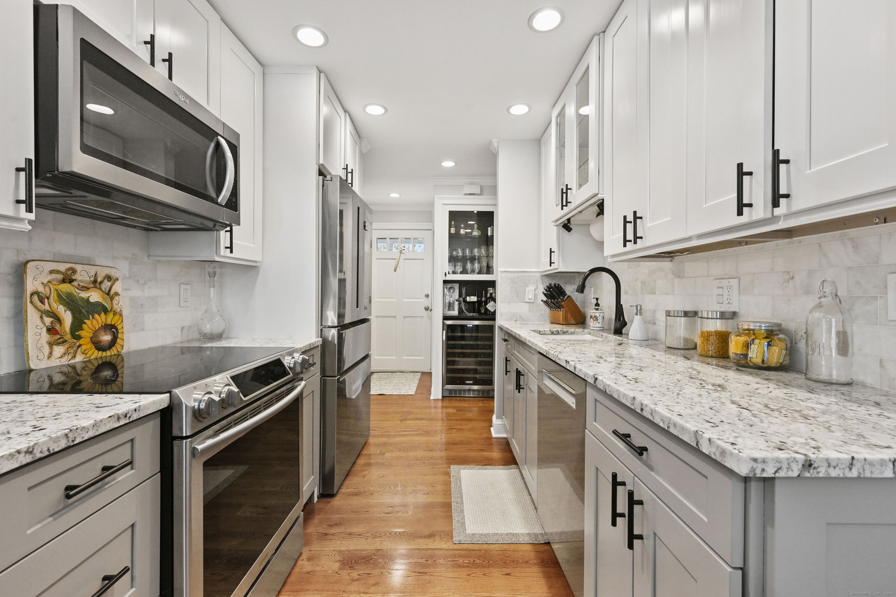 Welcome to 253 Mayfield Drive, a gorgeous, fully remodeled, one bedroom, ranch style, end unit, in the highly sought after Trumbull Town Commons. The kitchen features Bosch, stainless Steele appliances and Granite countertops. Custom walk in pantry. Maple hardwood floors throughout. Epoxy style garage floor with custom shelving. Electric car charger. Combination high efficiency boiler and tank less water heater. All new hot and cold water lines to a manifold for consistent water pressure. Front loader washer and dryer. Custom moldings throughout. Custom wine fridge with cabinet above. The entire interior was painted two years ago. Custom walk-in closet. Salt water heated pool. Walk to the library, Bank, Grocery store and Town Hall. Carefree living at its best!
