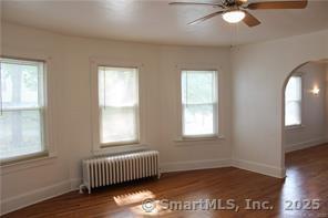 Charming and spacious apartment on a beautiful street and handy location. Oak hardwood floors throughout and wonderful original detail. A washer and dryer are located in the apartment off the kitchen in the pantry for convenience. Gas heat. Owner pays for snow removal, water and sewer. There is a front porch and a back porch; also plenty of off street parking and one garage spot (one per apartment). Quiet and centrally located. Tenant must have a good recent credit history, good references and make at least 2.5 times the rent as monthly income. Tenant Tracks applications used - $30 per adult applicant, cash or Zelle. No pets (except case by case for a small animal) and NO smoking.