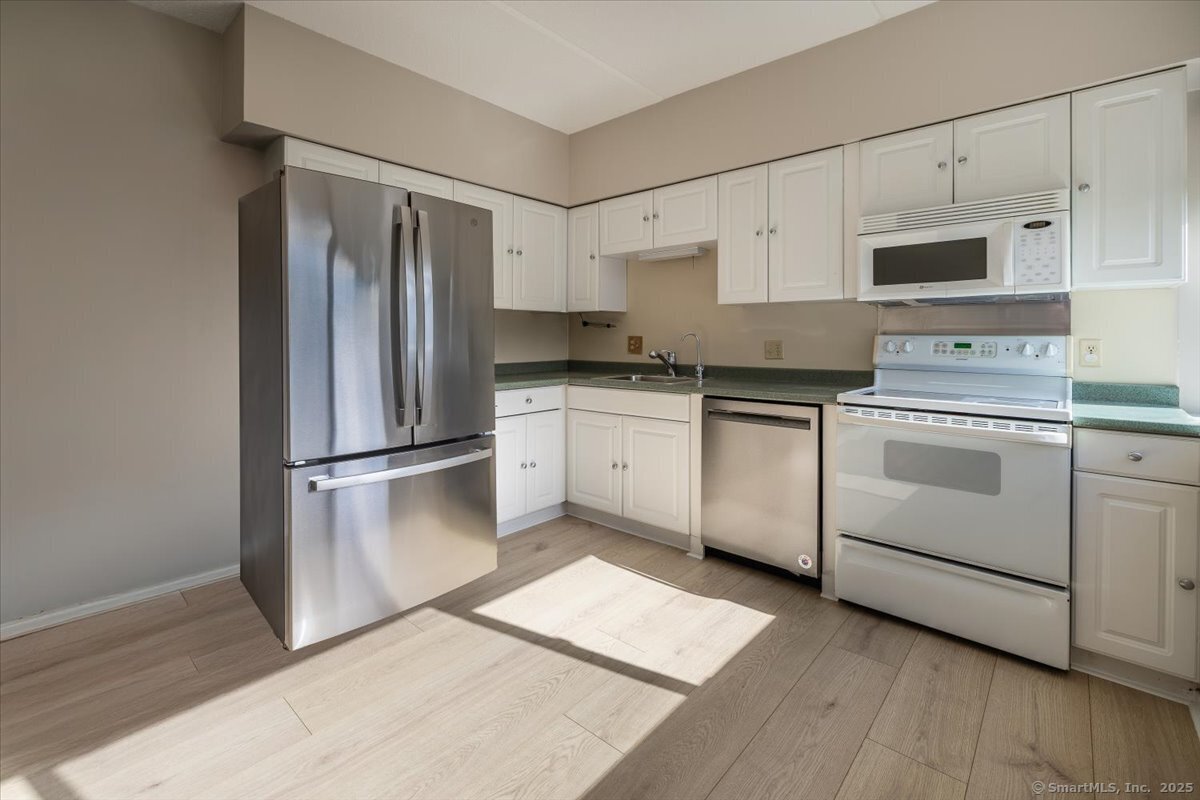 Beautiful 2 bedroom condo with seasonal views of Long Island sound and steps to a sandy beach. Amazing location - Heritage Sound is tucked back a bit offering privacy with Walnut beach, walking trails and the boardwalk right around the corner. Check out nearby coffee shops and restaurants. Freshly painted throughout and brand new luxury vinyl plank flooring. Light and bright eat in kitchen and gorgeous views. Spacious living room with balcony. Great spot to enjoy morning coffee or relax after dinner. Two bedrooms with ample closet space. Bathroom with new tile floor and vanity. Washer and dryer in unit. Private storage area and carport for one car. Plenty of visitor parking. Come summer, grab a book and sit by the pool. Landlord will consider one small dog. Tenant responsible for credit check through rent spree. First months rent and one month security deposit.