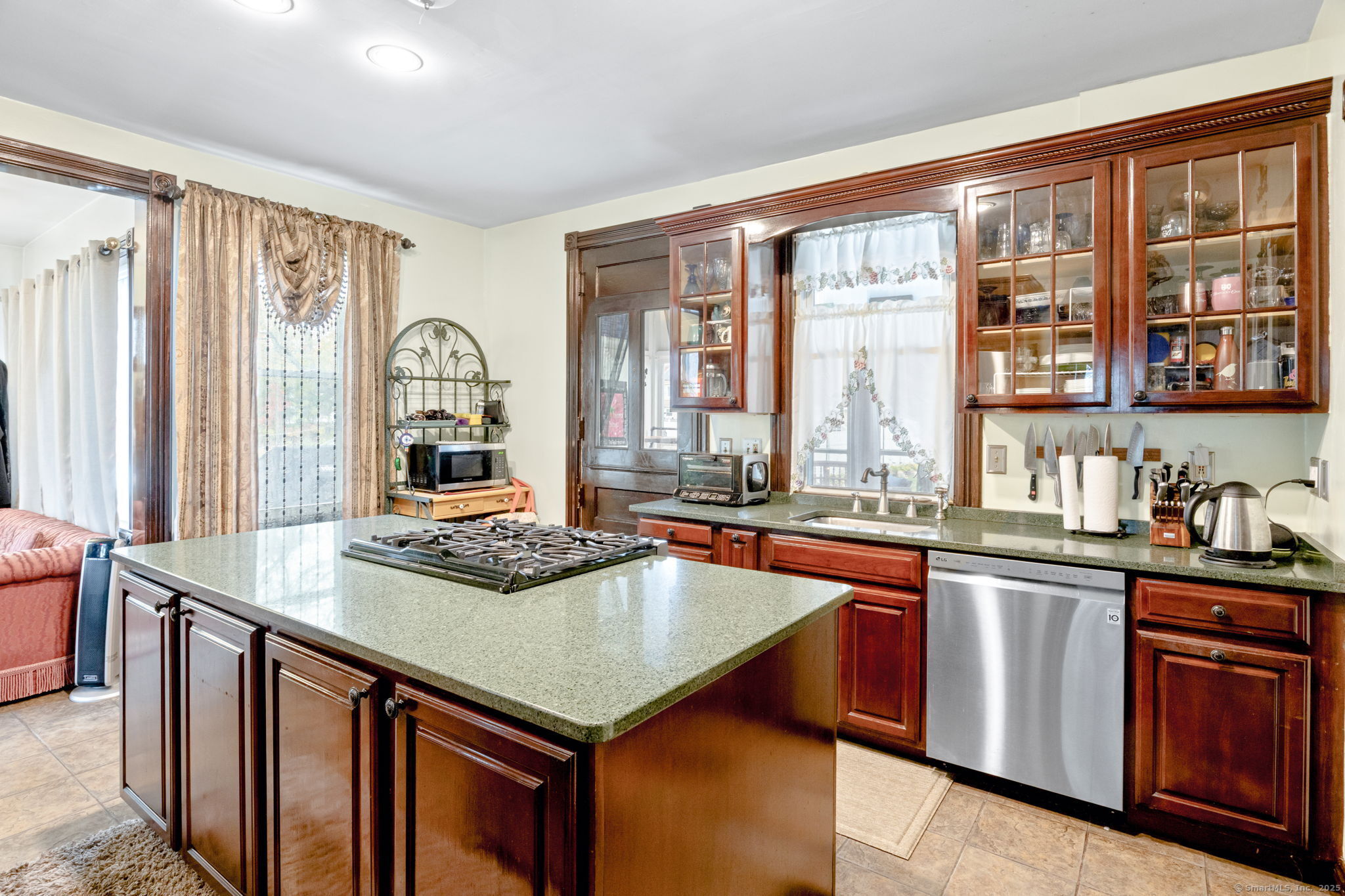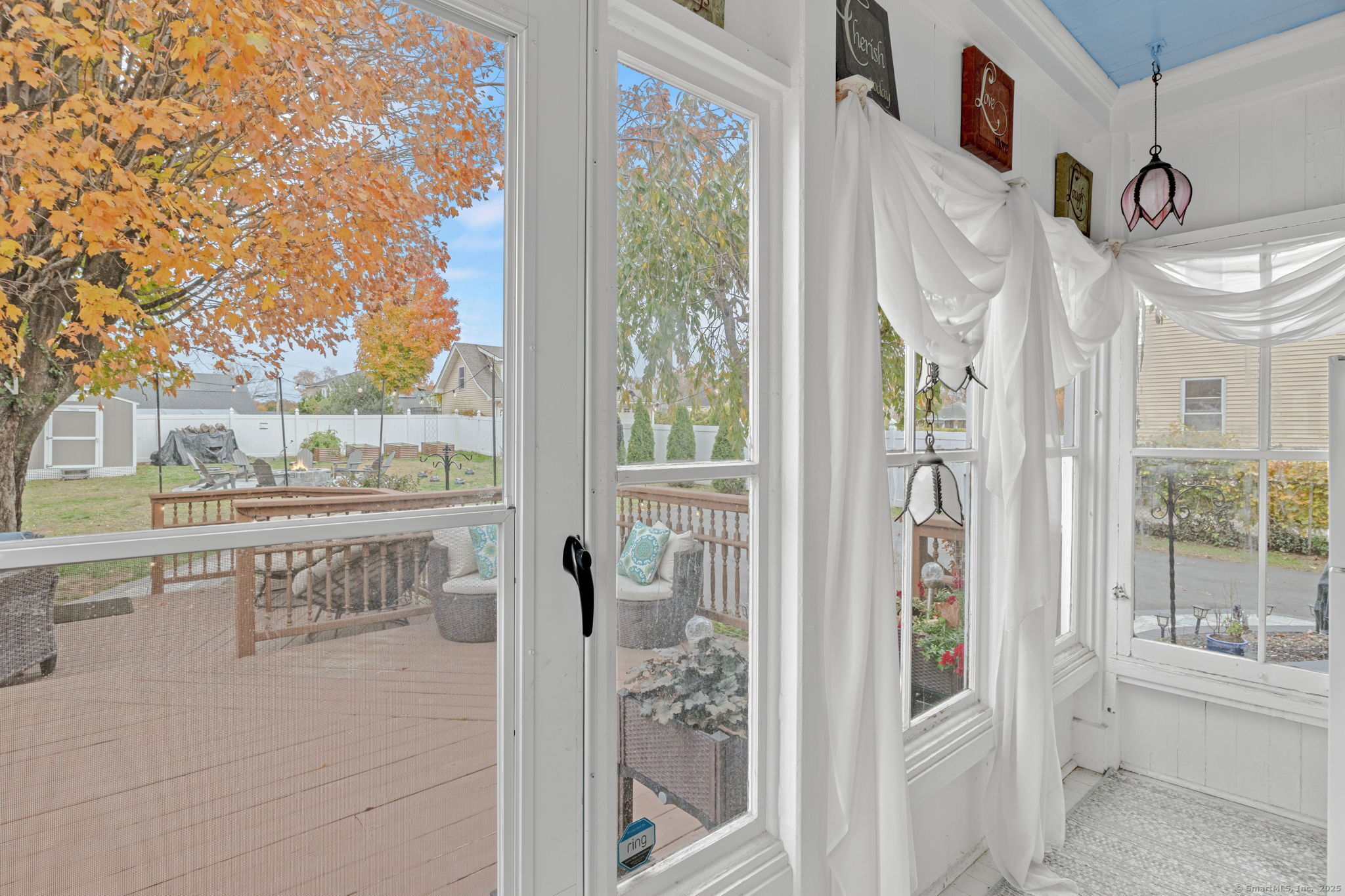 Step back in time with this beautifully preserved 1900 Victorian! This 2524 square foot, charming home perfectly blends timeless elegance with modern comfort. From the moment you enter, you feel the warmth of its inviting decor and welcoming atmosphere. Lovingly maintained, this 4-bedroom, 2-bath residence showcases exquisite original woodwork, gleaming HW floors, and classic architectural details that capture the spirit of a bygone era. The formal LR and DR are graced with French and pocket doors, complemented by stunning stained-glass windows that fill the space with natural light. A finished walk-up attic currently serves as a spacious primary suite, offering a cozy retreat with character and charm. The updated kitchen features modern appliances, granite countertops, and a center island set on a stylish tile floor, seamlessly connecting to a bright breakfast nook or sunroom, perfect for morning coffee or casual meals. Both the front and back enclosed sun porches extend your living space, offering the perfect spots to relax and unwind year-round. Step outside to your expansive double-tiered 20x32 deck, ideal for entertaining, overlooking a large, private yard with plenty of room for play, pets, or gardening. Located just four miles from Yale University, this home offers easy access to local restaurants, parks, and a short drive to the beach - combining historic beauty with unbeatable convenience.