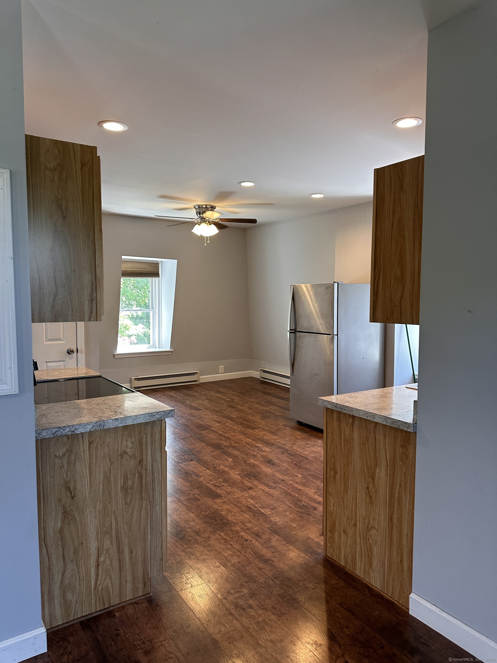 Move-in ready and thoughtfully remodeled, this spacious third-floor one-bedroom apartment in Danielson offers approximately 800 square feet of comfortable living. High ceilings, generous room sizes, and abundant natural light create an inviting and airy atmosphere throughout. The fully equipped kitchen provides excellent counter space, ample storage, and plenty of room for a dining area. Additional features include vinyl plank flooring, ceiling fans, and updated windows for enhanced energy efficiency. Conveniently situated near major routes, shopping, and restaurants, this well-appointed residence delivers comfort and accessibility in a desirable location.