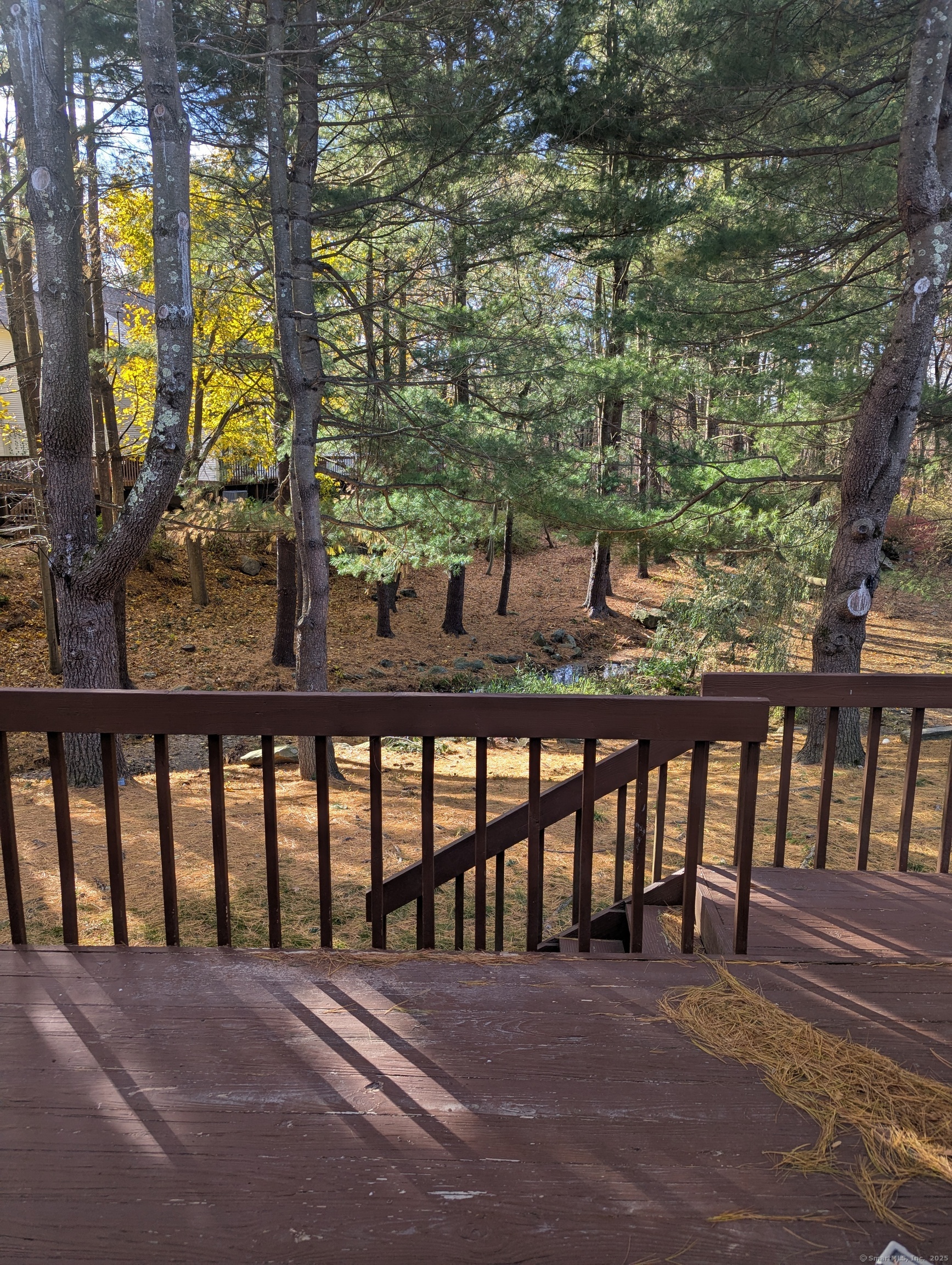 What a great condo in a great location! Like new again ! includes new flooring in living room, 2 bedrooms and upstairs landing. New carpet on 2 stairways. New lighting fixtures. 2 new toilets and 1/2 bath faucet. New painting includes ceilings ,walls and cabinets.Garage door opener and newer heat pump and furnace for greater efficiency. The private deck view is incredible overlooking serene woods and small pond with fountain ! Desirable Countrywood Hills is a well maintained complex in great commuter location. Easy to move into this one ! Enjoy the condo lifestyle.