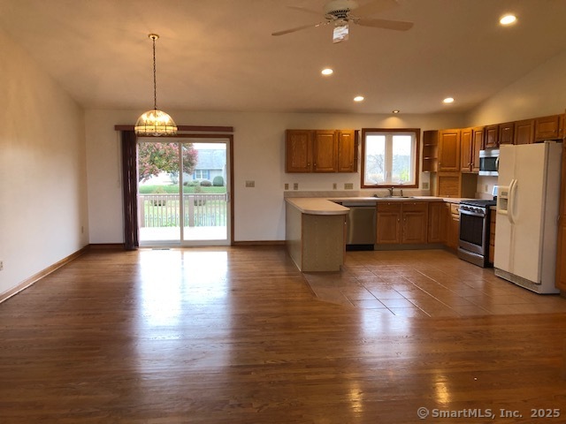 Welcome to 149 Melrose Road, East Windsor - a beautifully maintained raised ranch offering serene, open-field views through a newly installed picture window in the living room. This inviting home features an open-concept floor plan with 3 bedrooms, 2.5 baths, and a finished lower level complete with a cozy wood stove. The interior has been freshly painted and includes new flooring in the primary bedroom. Additional highlights include a newer roof, newer central air conditioning, an underground sprinkler system, and a oversized two-car garage. Enjoy comfort, space, and peaceful country views - all within easy reach of local schools and amenities.