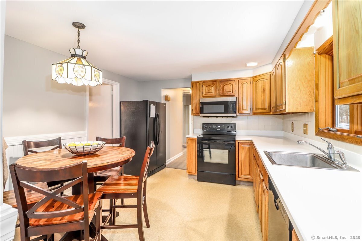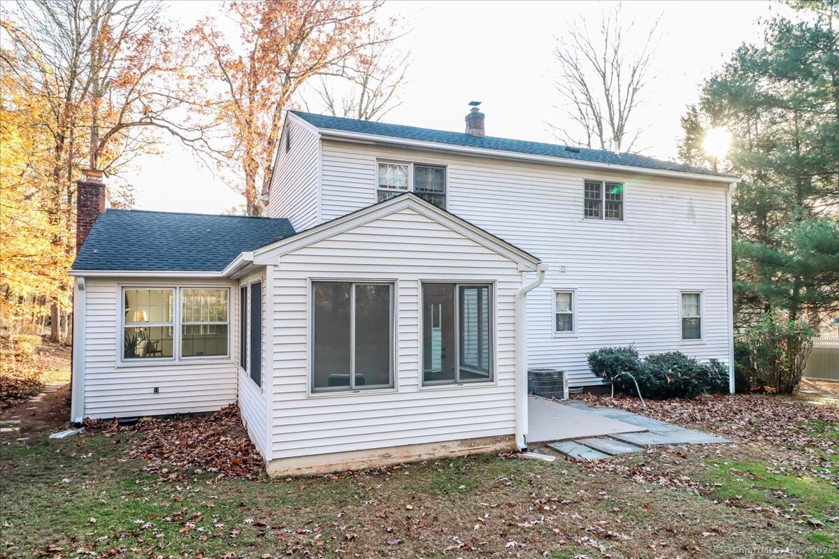 Welcome to your new home in desirable South Cheshire! Nestled on a private, level 0.41-acre lot, this spacious five-bedroom, 2.1-bath colonial offers the perfect blend of timeless charm and modern comfort. Two bedrooms are conveniently located on the main level-ideal for multi-generational or blended families-complemented by a full bathroom and a dedicated laundry room for added ease and functionality. Step inside to discover a bright and inviting living room featuring a cozy fireplace, perfect for those crisp Connecticut evenings. The main living area flows seamlessly into the heated sunroom, bathed in natural light and overlooking the tranquil, wooded backyard-an ideal spot for morning coffee or quiet relaxation. The eat-in kitchen offers plenty of space for casual dining and everyday gatherings, creating the true heart of the home. The partially finished lower level provides exceptional versatility, whether you envision a gym, media room, hobby space, or playroom. The property's lush, private setting offers peace and serenity while keeping you conveniently close to Cheshire's top-rated schools, charming town center, shops, parks, and commuter routes. An attached one-car garage provides additional storage and convenience. Recent updates include several replaced windows, a newer roof, a brand-new water heater, and a new oil tank. With just a touch of imagination and personal touches, this home has endless potential to truly shine.