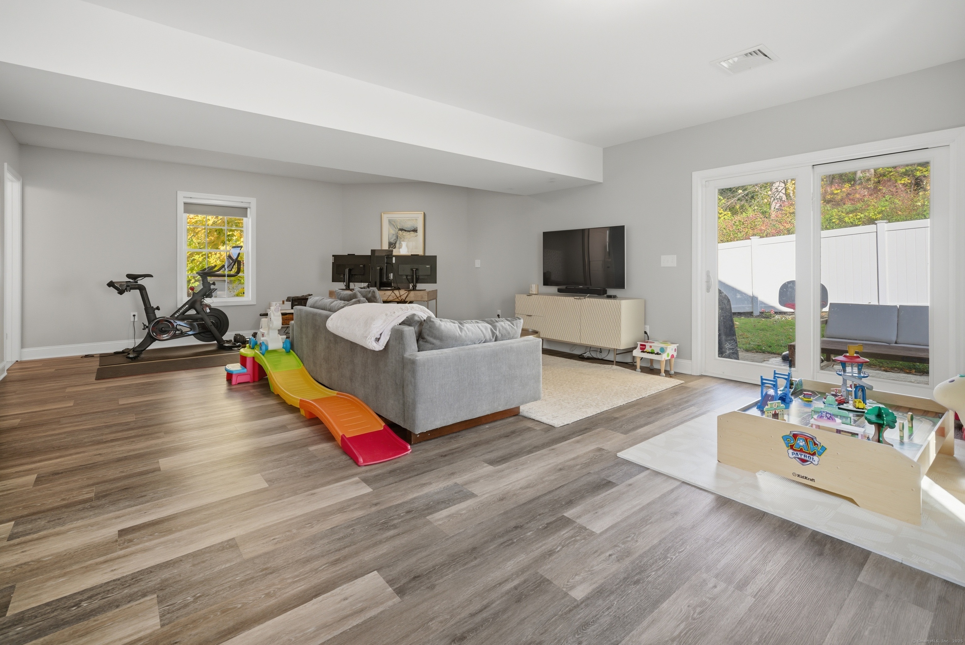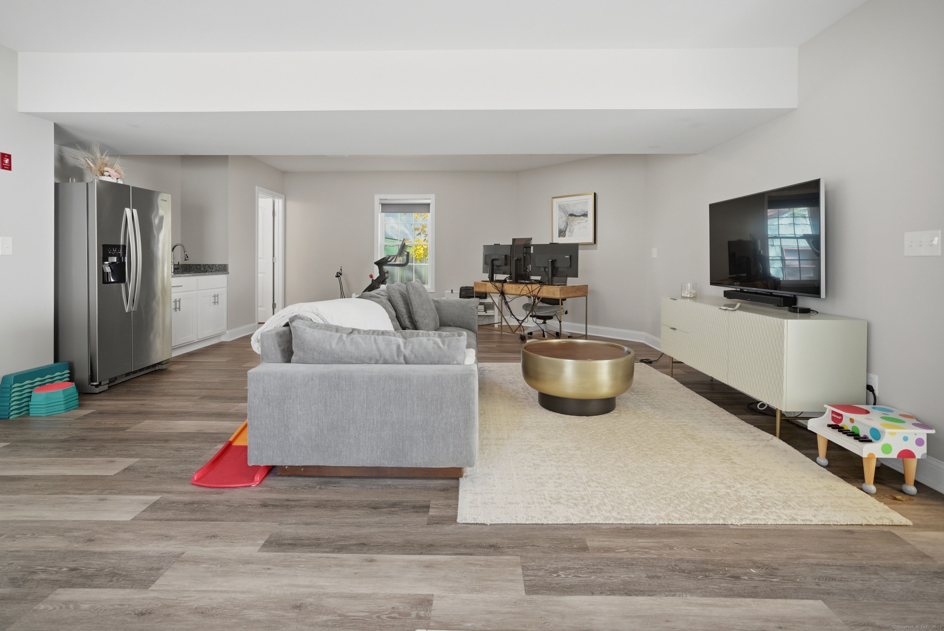 Welcome to 75 Long Island View Road - newly built in 2018, this home blends modern design, flexible living, and an ideal Milford location near beaches, shops, and restaurants. The main level features an open-concept layout with vaulted ceilings, hardwood floors, and a spacious living room flowing into the dining area and designer kitchen with center island, stainless appliances, and granite counters - perfect for entertaining. The primary suite includes a double-vanity bath and walk-in closet, while two additional bedrooms and another full bath complete this level. The finished lower level offers endless versatility with a large living area and wet bar, full bath, laundry, and sliders to the patio - ideal for a home office, playroom, guest suite, or in-law setup. An attached two-car garage, level fenced yard, and low-maintenance exterior make this home as practical as it is stylish. Set in a convenient neighborhood just minutes from beaches, parks, downtown Milford, and major highways, this home offers the best of coastal living with everyday ease. Move right in and enjoy!