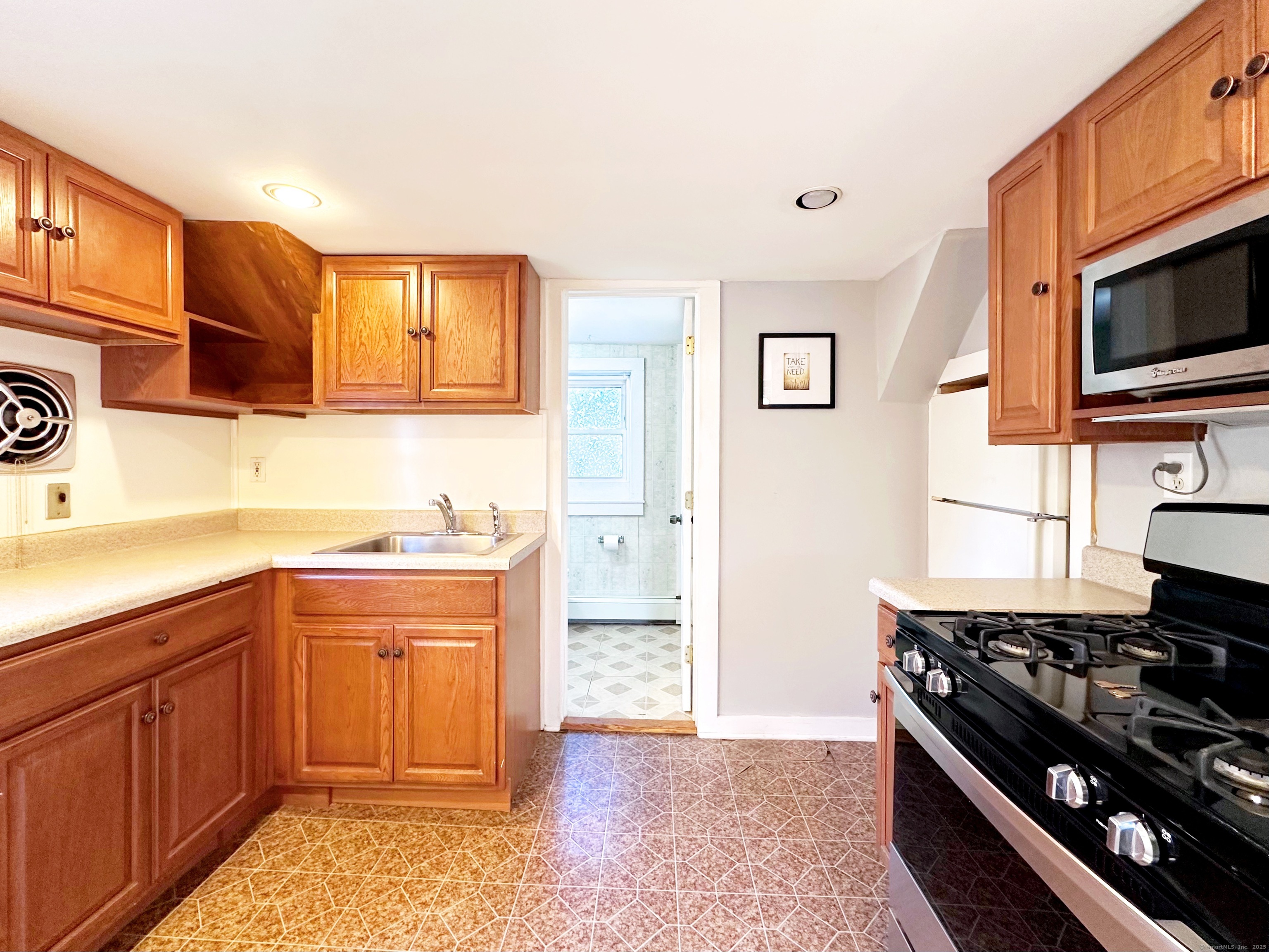 Welcome to 76 Nichols Avenue in the desirable Tunxis Hill area of Fairfield! Clean and quiet third-floor 2-bedroom, 1-bath apartment offering comfort, convenience and charm. Located in a well-maintained property close to shopping, restaurants, public transportation, golf and Fairfield's award-winning schools. The bright kitchen features a newer stainless steel gas range and microwave, opening to a spacious living and dining area with high ceilings-perfect for entertaining or relaxing. Enjoy outdoor living on your private back deck overlooking a shared, manicured, and partially fenced backyard. Additional highlights include private laundry in the shared basement, off-street parking and an optional 400 sq. ft. two-bay detached garage available for an additional $400 per month. Ideal for those seeking a quiet residential neighborhood with easy access to everything Fairfield has to offer. Move-in ready and professionally maintained-schedule your showing today!