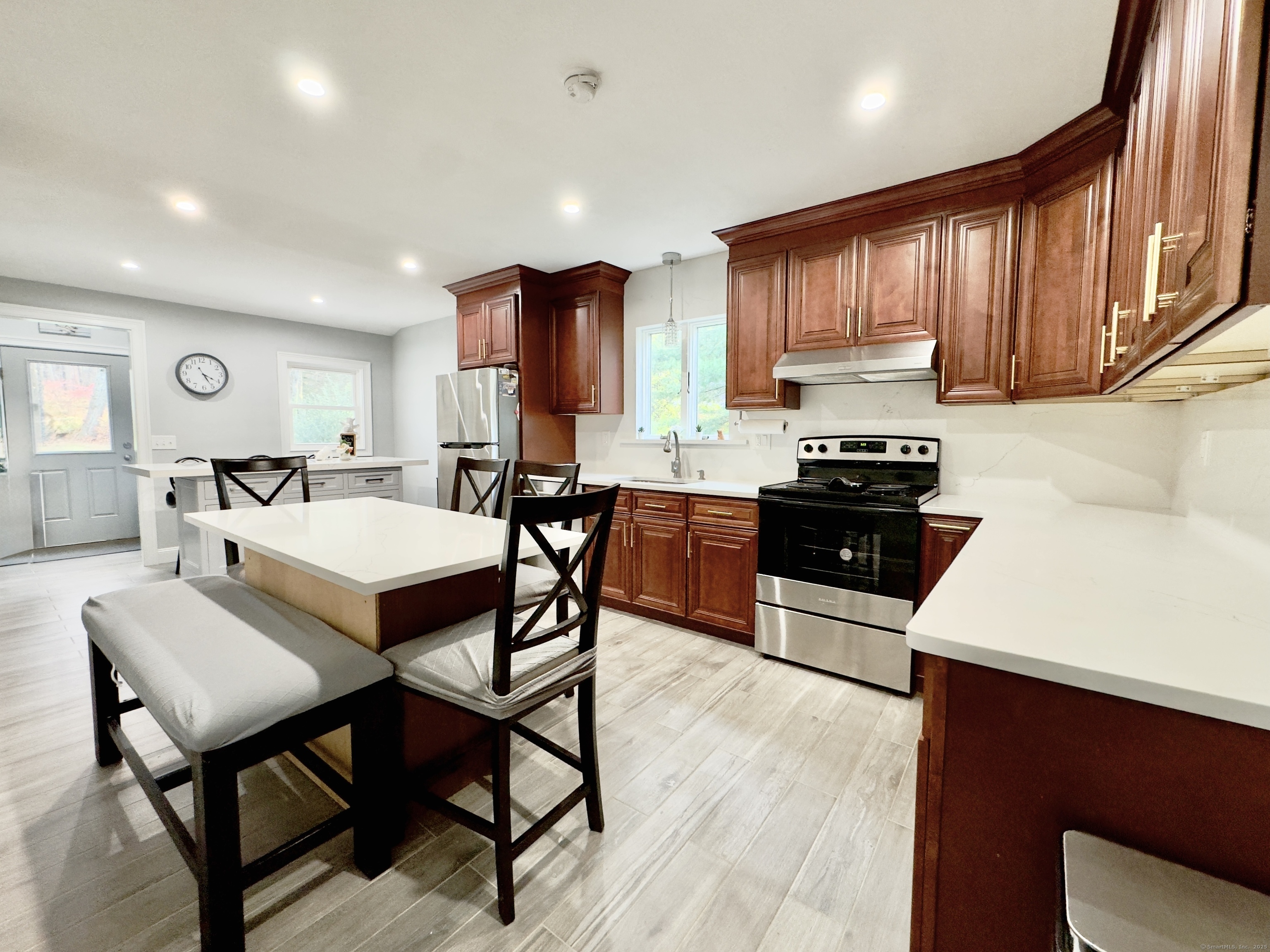Welcome to 13 Bear Hills Road, Newtown, CT! This stunning 4-bedroom, 2.5-bath home perfectly blends classic New England charm with fresh, modern updates. Enjoy peace of mind with a new roof (2023), new siding (2023), new gutters, French drain system, and manicured landscaping that creates unbeatable curb appeal. Step inside to a beautifully renovated interior, featuring a brand-new kitchen with modern countertops, cabinetry, and finishes that make cooking and entertaining a delight. The updated bathrooms offer spa-like comfort, while a partially finished basement adds flexible space for a gym, office, or media room. The half bath in the basement conveys as-is, giving you the opportunity to customize to your taste. Enjoy relaxing on the new front porch or take advantage of the custom $7,000 shed for extra storage or creative use. Nestled on a quiet, scenic road near parks, shops, and top-rated schools, this move-in-ready home combines style, comfort, and practicality-a true Newtown gem that feels brand new inside and out!