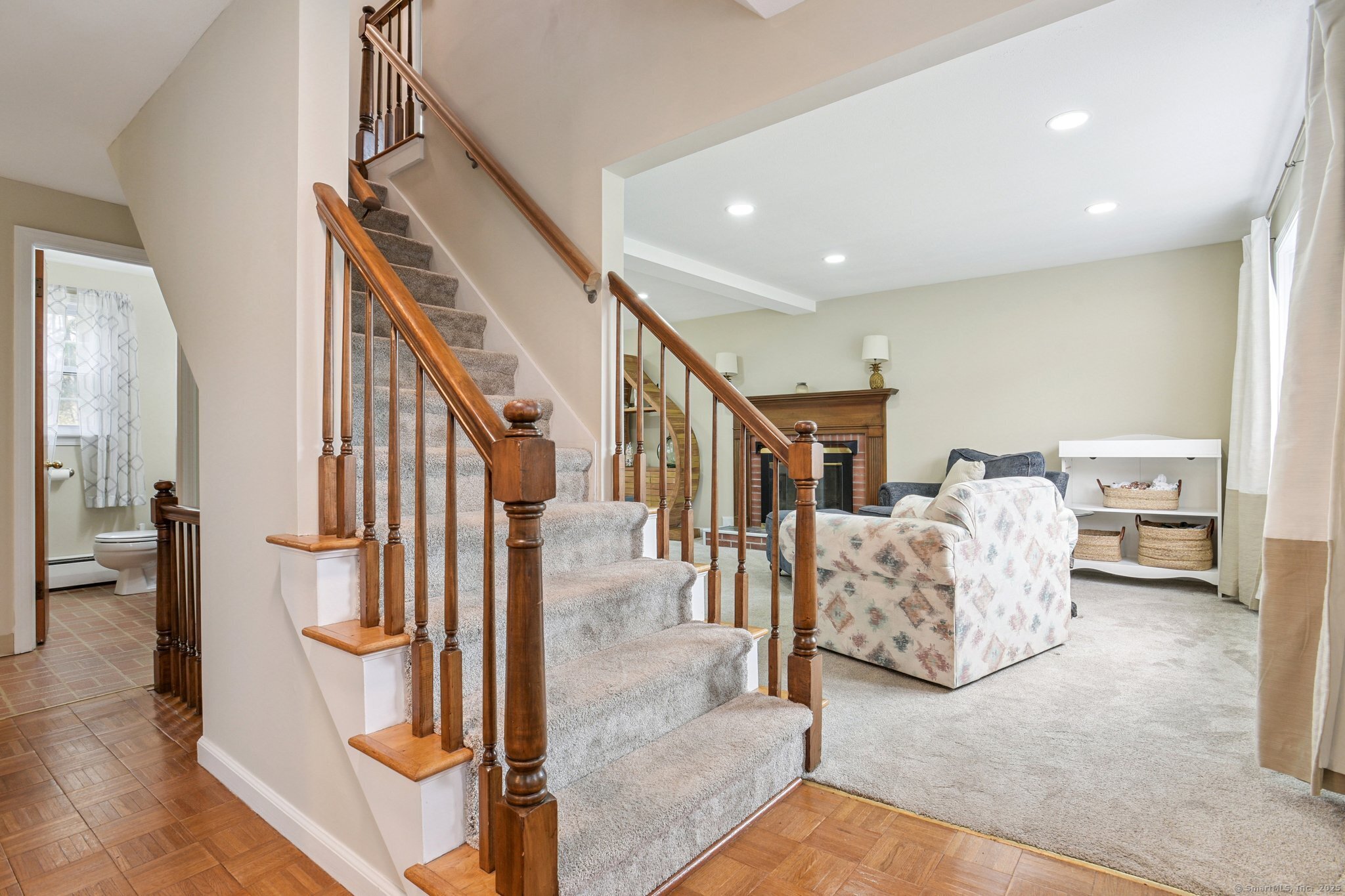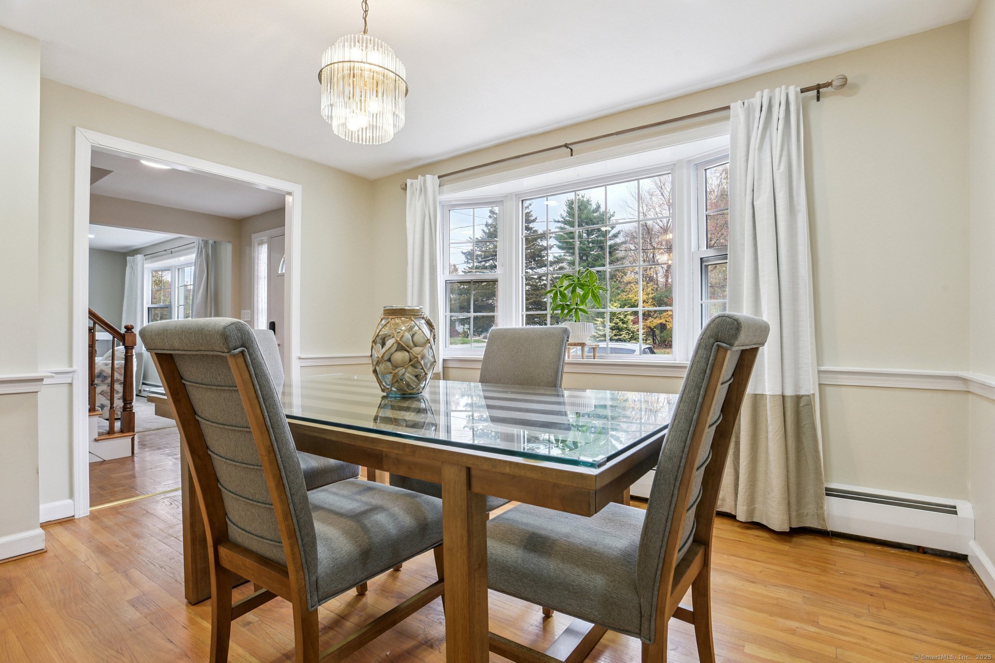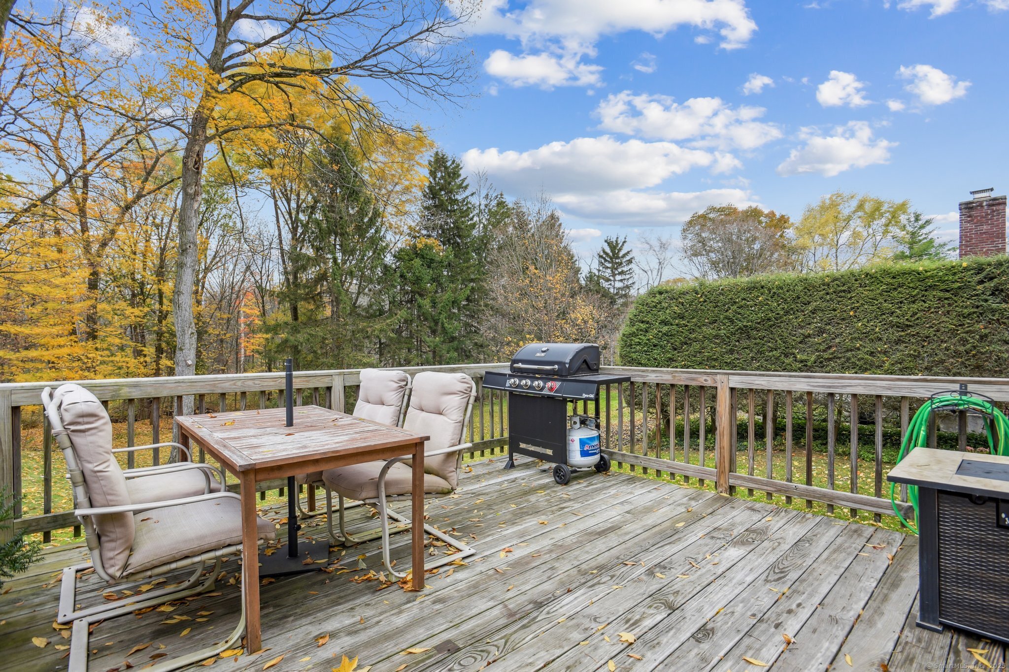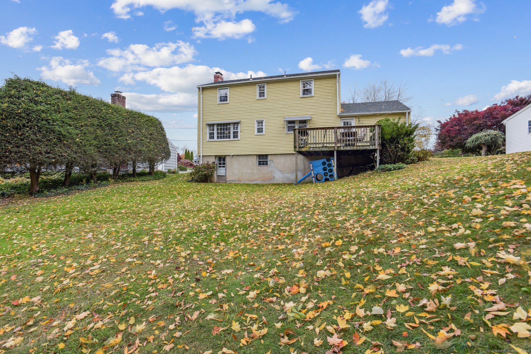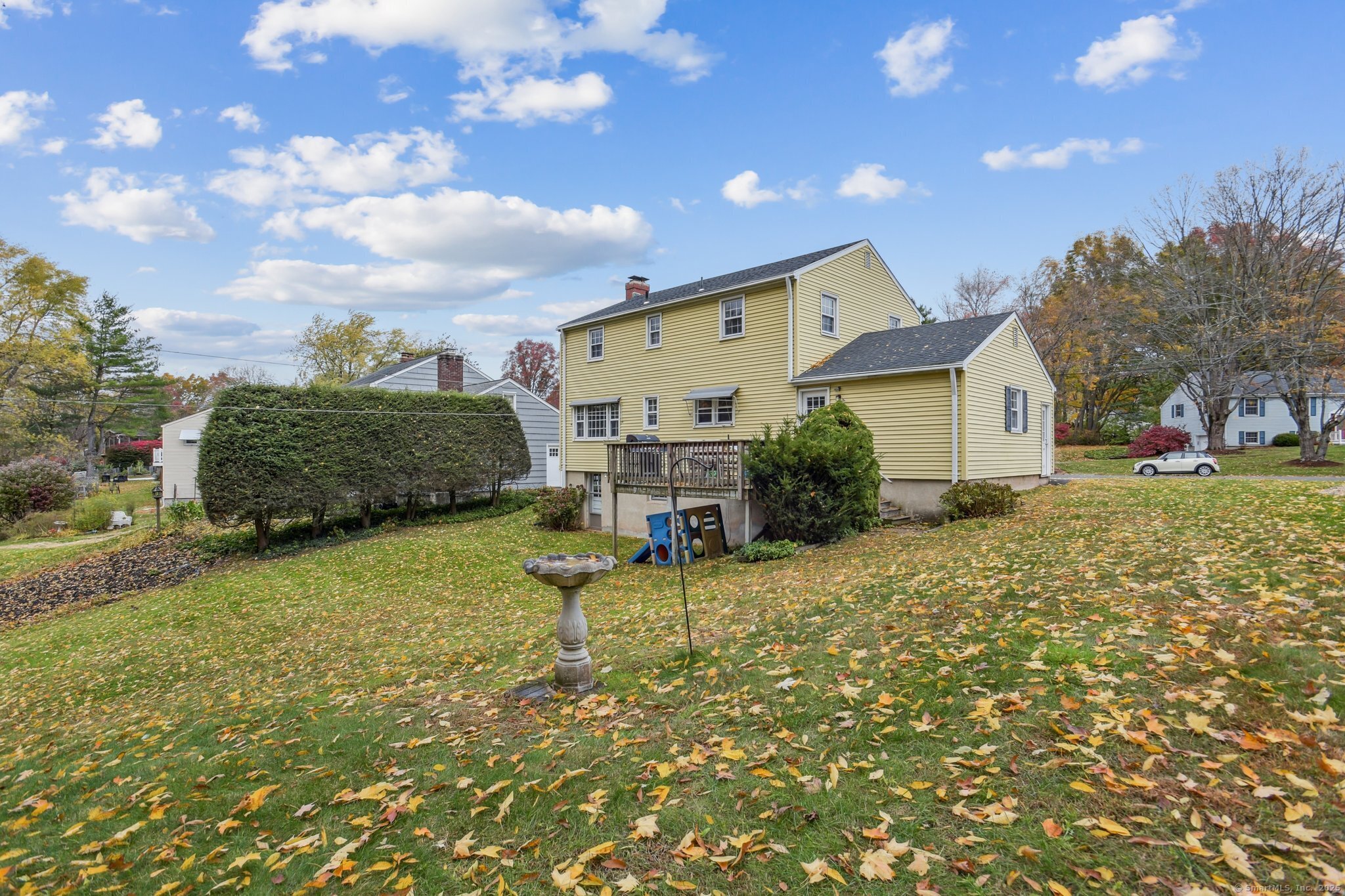 As you drive into this sought-after neighborhood you'll appreciate the appeal right away. Very little traffic on this cozy crescent street. The classic colonial 4 bedroom, 1 1/2 bath home has charming street appeal with its bay windows and large front lawn. The deck off the back overlooks an absolutely gorgeous lot that's wooded to the rear but still provides ample open space for outside enjoyment. The eat-in kitchen has plenty of counter space, cabinetry, new appliances and room for a table and chairs. The floor plan's circular flow, spacious living and dining rooms filled with light, create perfect spaces for family gatherings and entertaining. The four bedrooms upstairs are off a central landing and include a large primary. The house is warmed by efficient natural gas heating and a gas fireplace in the living room. The walk-out basement has a finished, heated recreation room/playroom, high ceilings, a laundry area, workshop and full-sized windows. It doesn't feel like a basement at all. The roof was replaced in 2018 and there are replacement windows and an updated gas boiler. New electrical panel and recessed lighting installed in 2023. There are hardwood floors throughout, including underneath the carpeting in the living room. The entire interior has been freshly painted with designer colors. This property has been meticulously maintained and this neighborhood knows how to celebrate the holidays. Request your showing today.