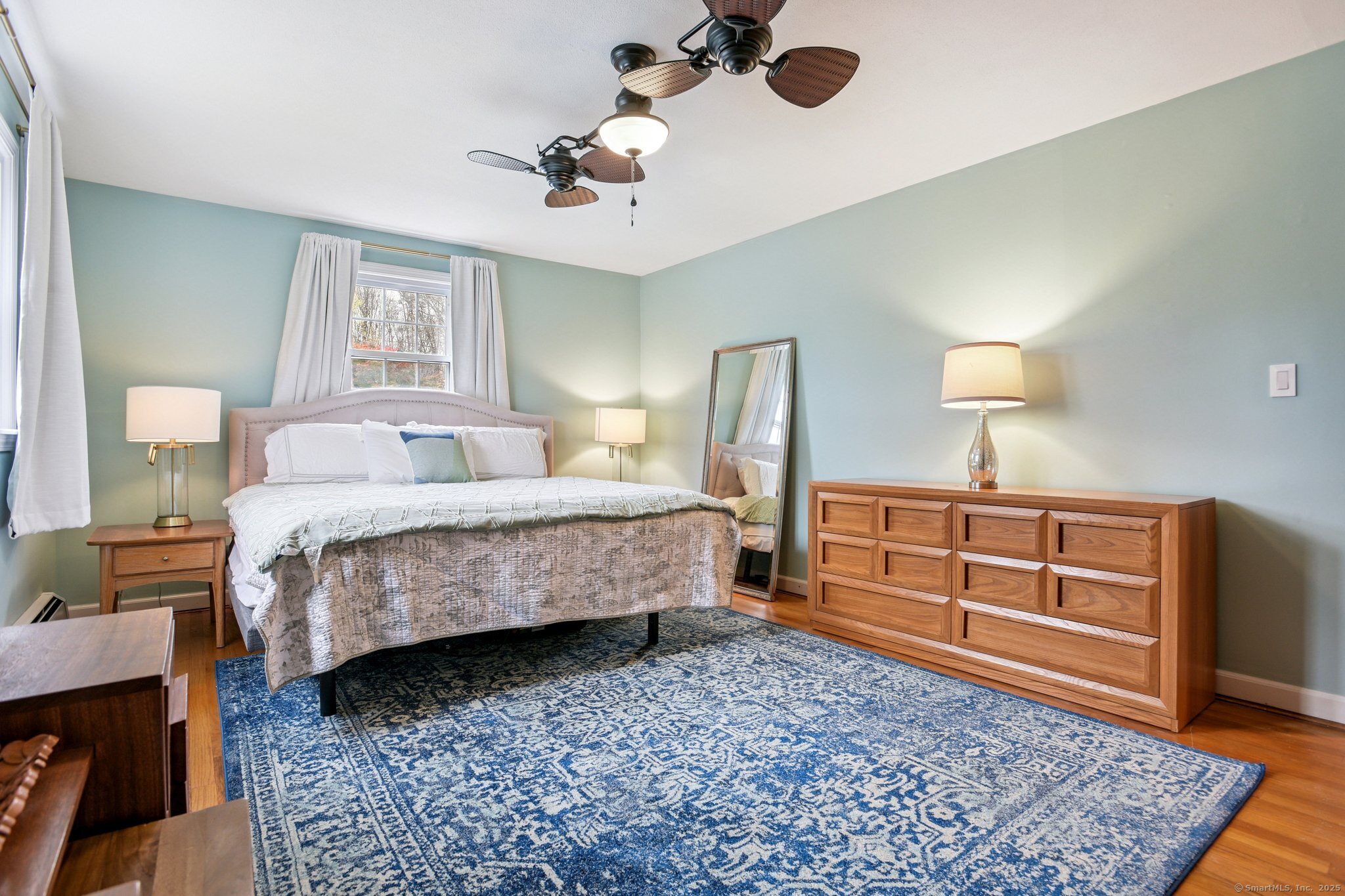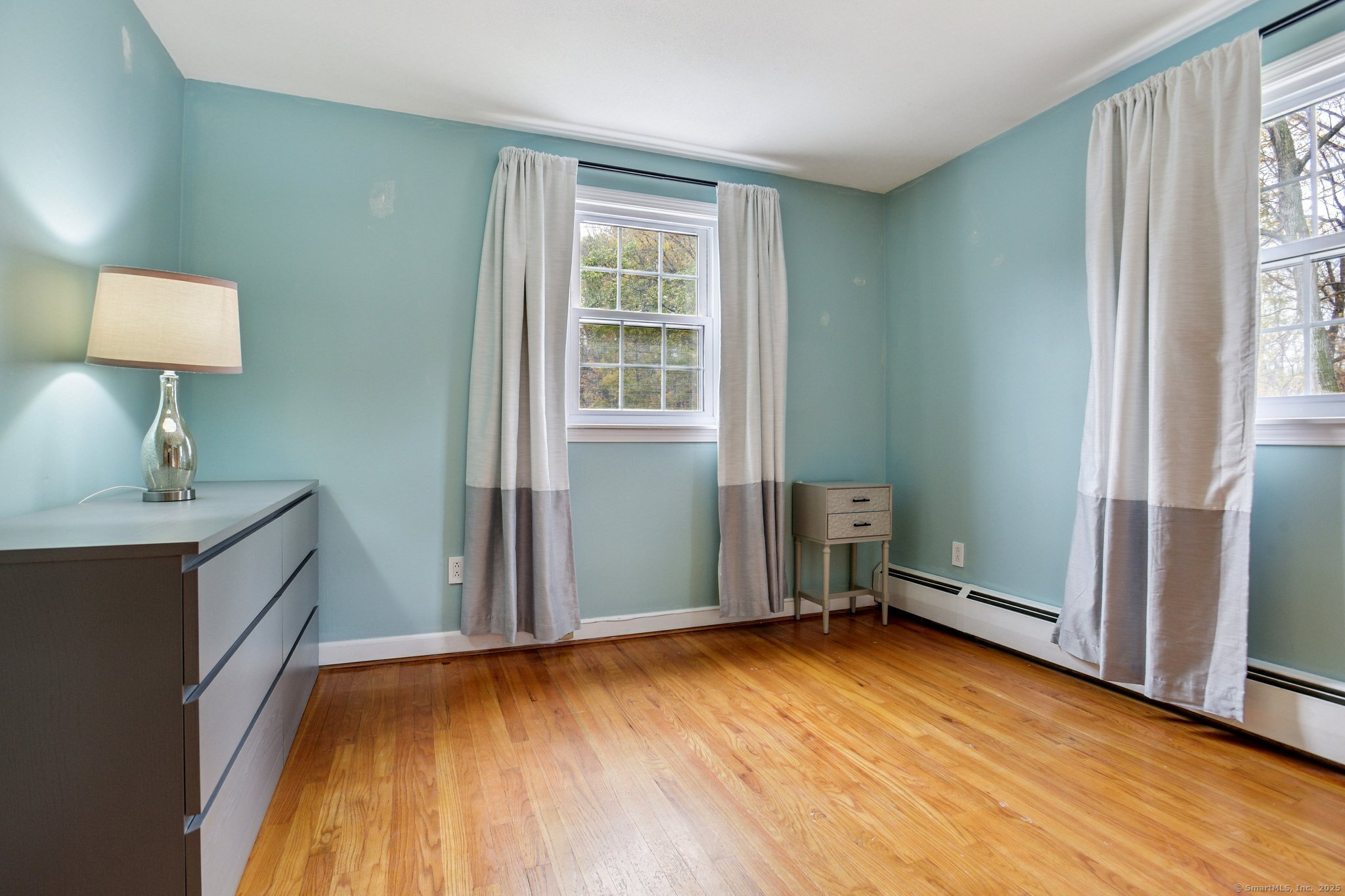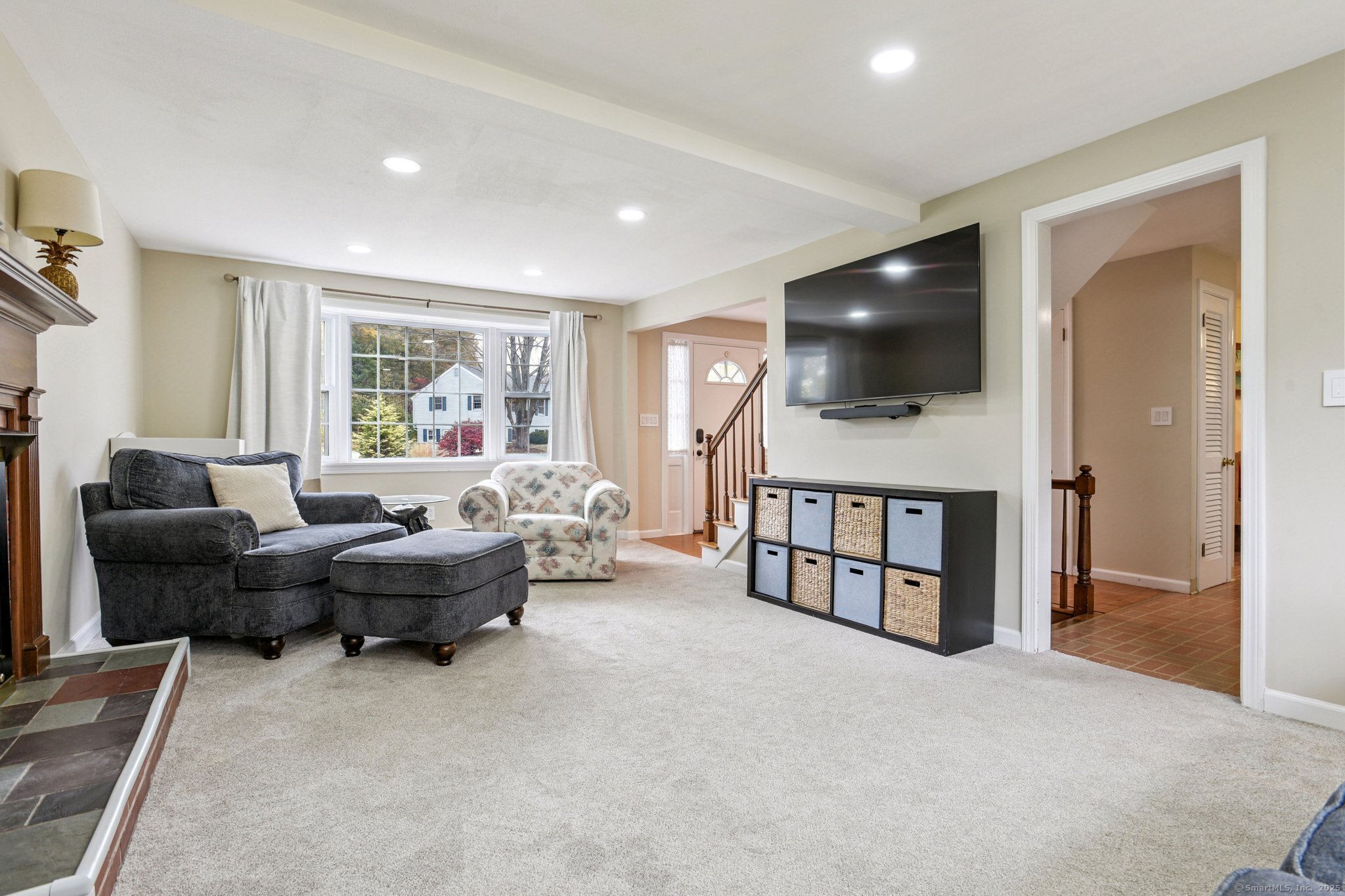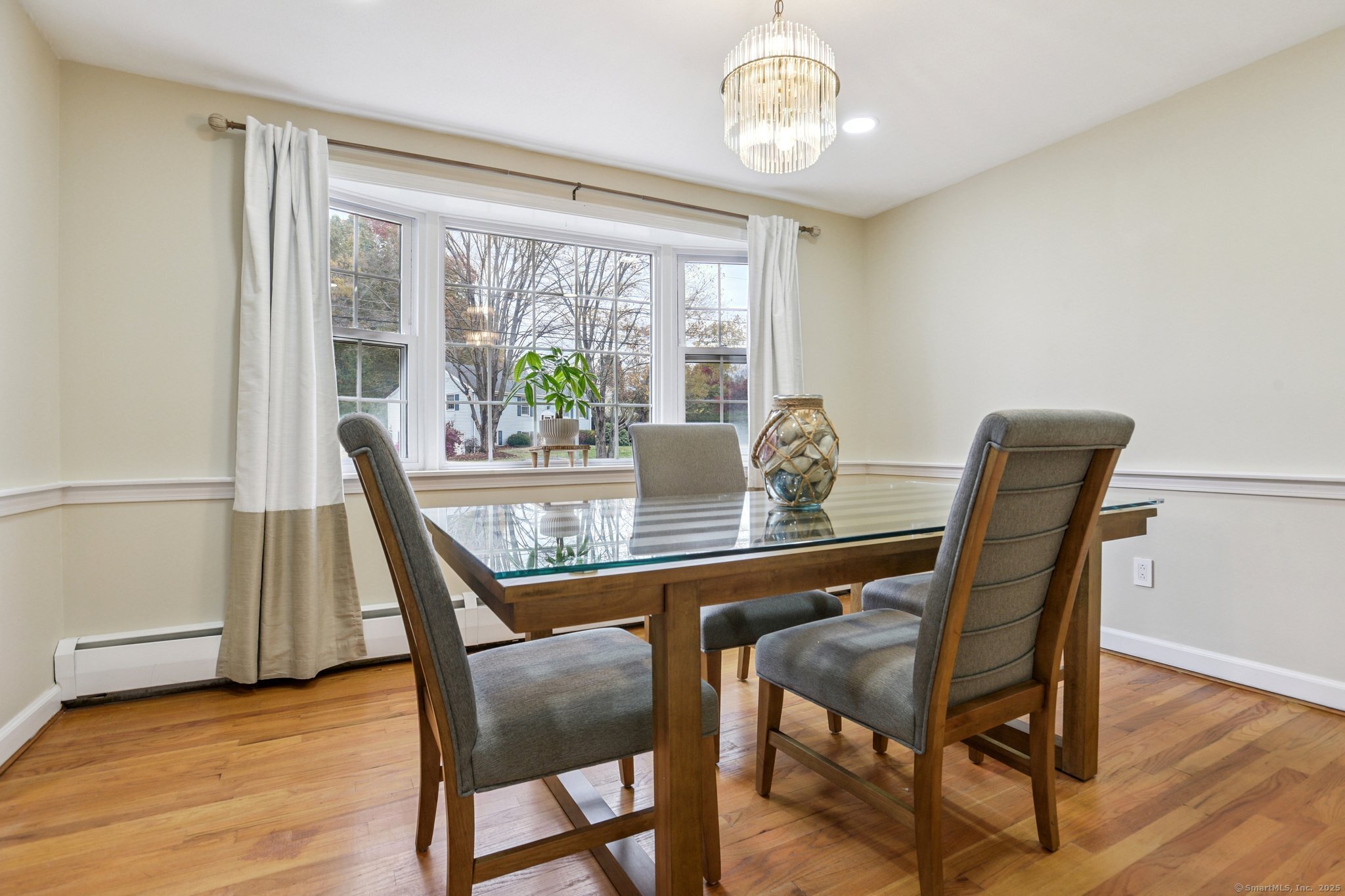 As you drive into this sought-after neighborhood you'll appreciate the appeal right away. Very little traffic on this cozy crescent street. The classic colonial 4 bedroom, 1 1/2 bath home has charming street appeal with its bay windows and large front lawn. The deck off the back overlooks an absolutely gorgeous lot that's wooded to the rear but still provides ample open space for outside enjoyment. The eat-in kitchen has plenty of counter space, cabinetry, new appliances and room for a table and chairs. The floor plan's circular flow, spacious living and dining rooms filled with light, create perfect spaces for family gatherings and entertaining. The four bedrooms upstairs are off a central landing and include a large primary. The house is warmed by efficient natural gas heating and a gas fireplace in the living room. The walk-out basement has a finished, heated recreation room/playroom, high ceilings, a laundry area, workshop and full-sized windows. It doesn't feel like a basement at all. The roof was replaced in 2018 and there are replacement windows and an updated gas boiler. New electrical panel and recessed lighting installed in 2023. There are hardwood floors throughout, including underneath the carpeting in the living room. The entire interior has been freshly painted with designer colors. This property has been meticulously maintained and this neighborhood knows how to celebrate the holidays. Request your showing today.