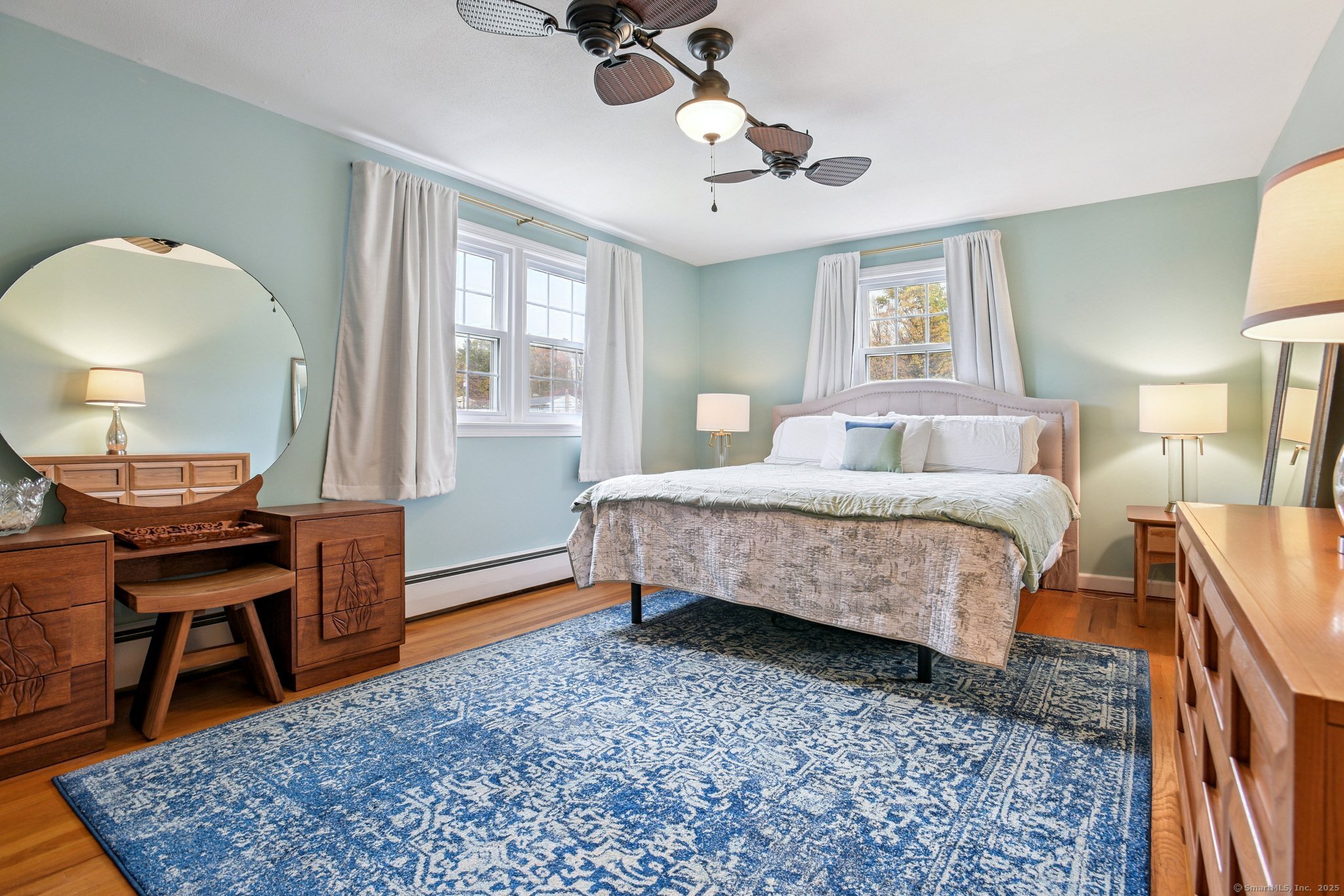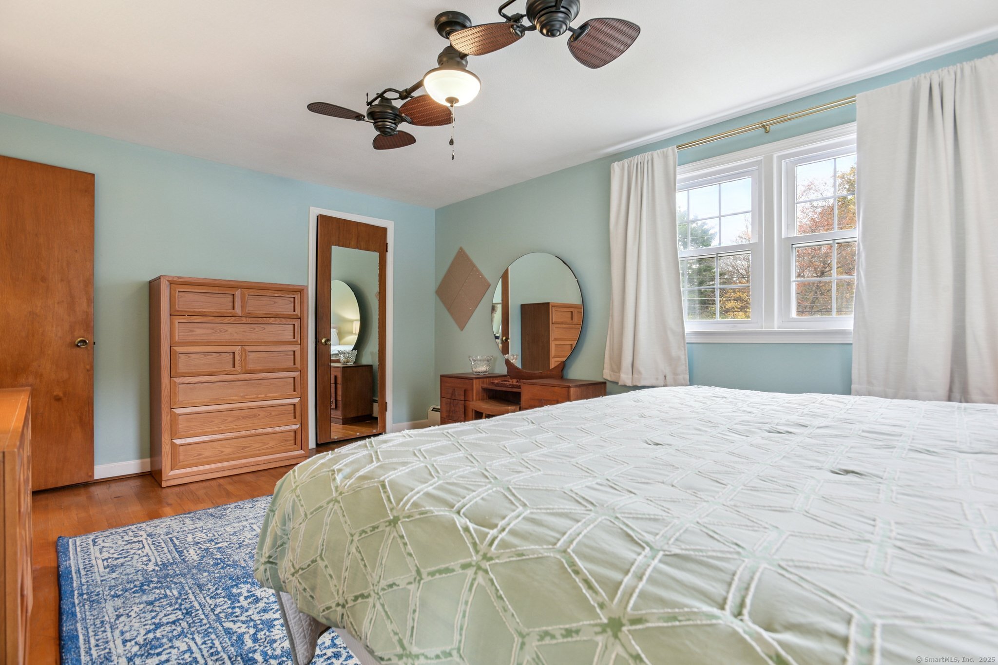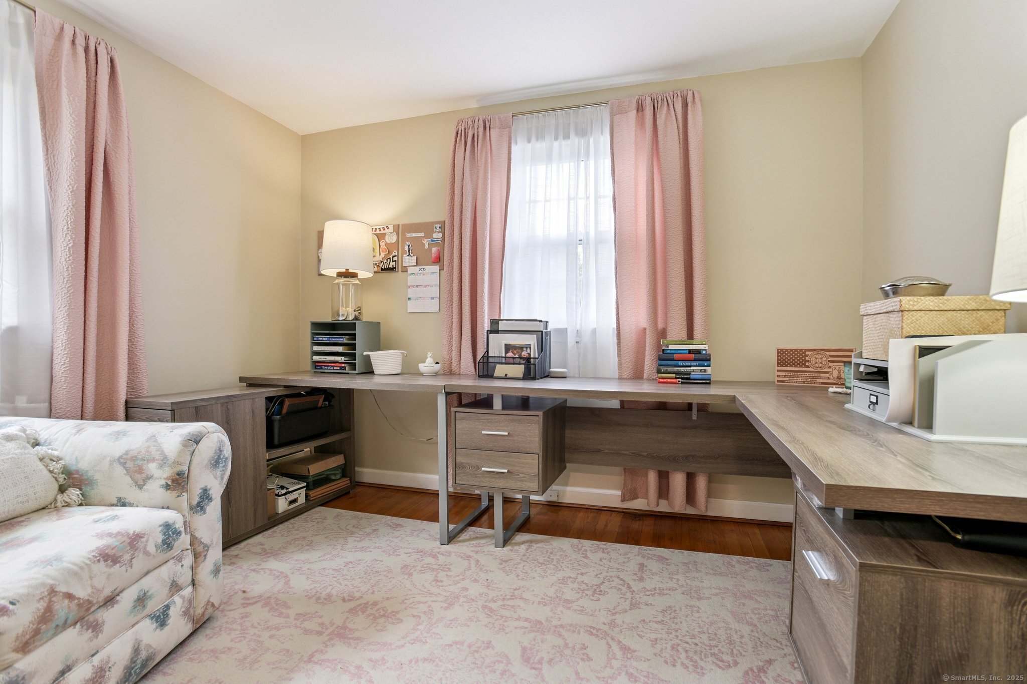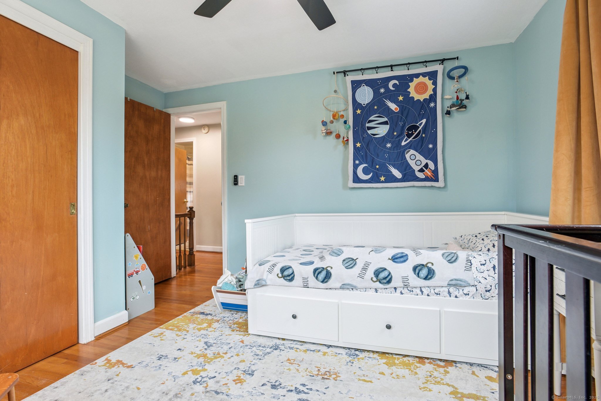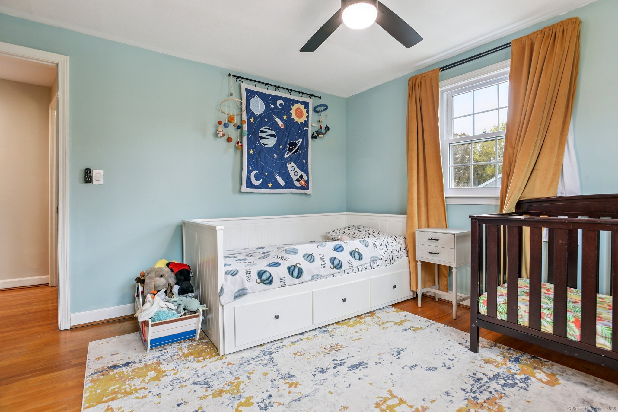 As you drive into this sought-after neighborhood you'll appreciate the appeal right away. Very little traffic on this cozy crescent street. The classic colonial 4 bedroom, 1 1/2 bath home has charming street appeal with its bay windows and large front lawn. The deck off the back overlooks an absolutely gorgeous lot that's wooded to the rear but still provides ample open space for outside enjoyment. The eat-in kitchen has plenty of counter space, cabinetry, new appliances and room for a table and chairs. The floor plan's circular flow, spacious living and dining rooms filled with light, create perfect spaces for family gatherings and entertaining. The four bedrooms upstairs are off a central landing and include a large primary. The house is warmed by efficient natural gas heating and a gas fireplace in the living room. The walk-out basement has a finished, heated recreation room/playroom, high ceilings, a laundry area, workshop and full-sized windows. It doesn't feel like a basement at all. The roof was replaced in 2018 and there are replacement windows and an updated gas boiler. New electrical panel and recessed lighting installed in 2023. There are hardwood floors throughout, including underneath the carpeting in the living room. The entire interior has been freshly painted with designer colors. This property has been meticulously maintained and this neighborhood knows how to celebrate the holidays. Request your showing today.