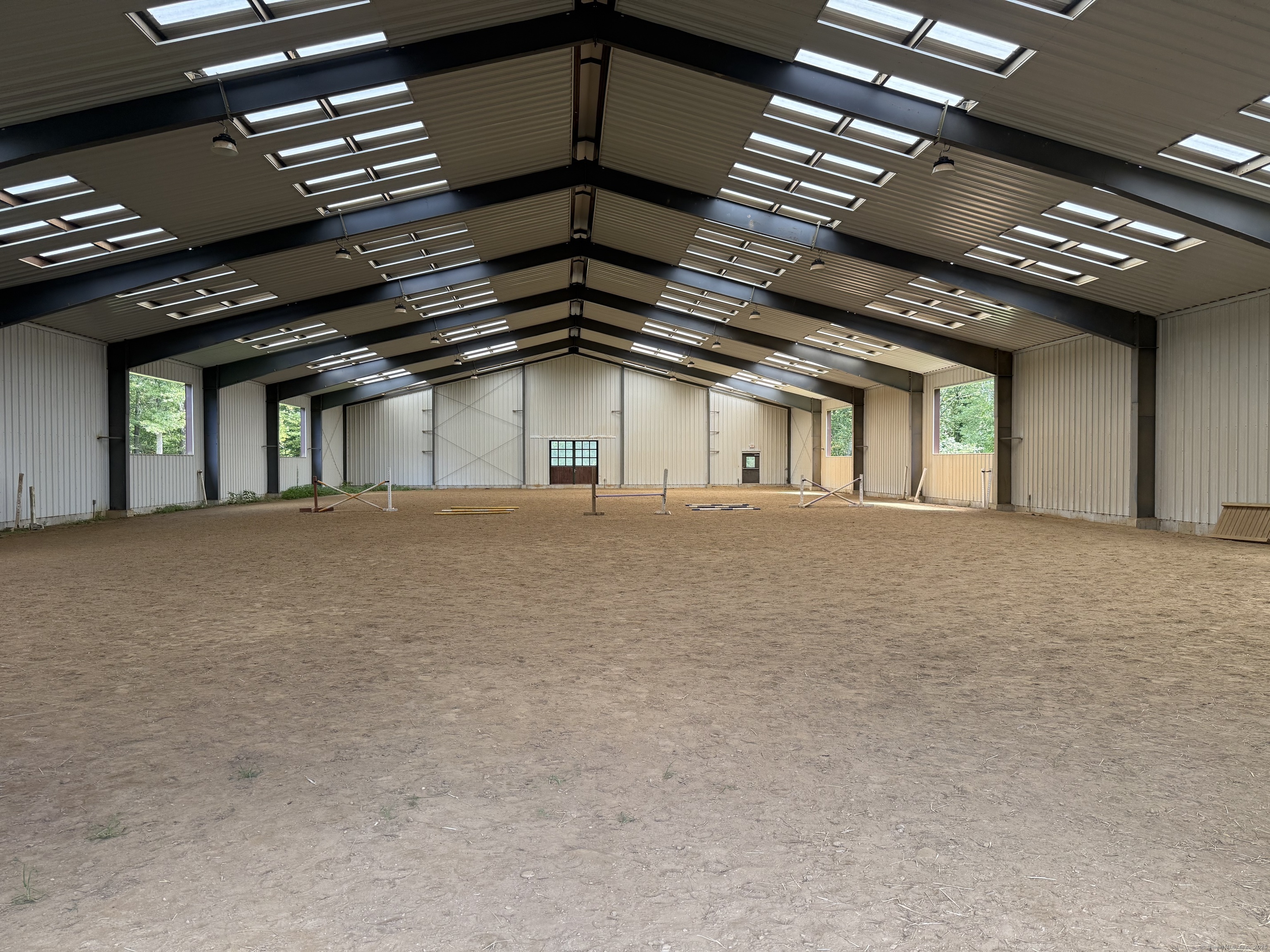 Wind Dance. The 61-acre parcel at 45 Hoadly Road, Hebron is a remarkable property offering exceptional equestrian facilities and ample space for future development. The site features a 100x200 indoor riding arena, perfect for year-round training and events, as well as a 110x38 barn equipped with 13 stalls, a tack room, bathrooms, and an office for convenience and functionality. Expansive pastures provide excellent turnout space for horses, while the vast acreage offers plenty of room to build one or more residences, creating endless possibilities for a private estate, horse farm, or equestrian business. This property combines practicality and potential in a beautiful, rural setting.