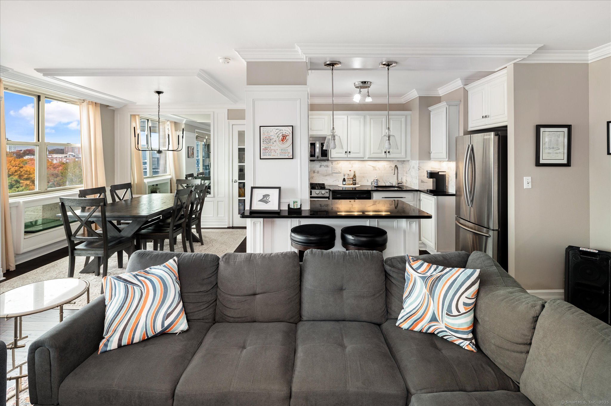 Experience the epitome of refined city living in this exquisite condominium offering breathtaking sunset and skyline views from your private 9th floor balcony. Every detail of this residence has been thoughtfully curated to provide the highest level of sophistication and modern comfort. Step into an open-concept living space, where the modern kitchen becomes a stunning focal point. Featuring a luxurious Calacatta marble backsplash, sleek black granite counters, and stainless steel appliances blending beauty and functionality. Elegance flows throughout with custom millwork and exceptional craftsmanship in every corner. The bedroom offers a true retreat with a walk in closet customized for ultimate organization as well as two custom designed storage cabinets. With abundant storage options and meticulous attention to detail, this home promises effortless living. Located near public transportation you can hop the trolley to visit all downtown sites and Harbor Point for a night out.