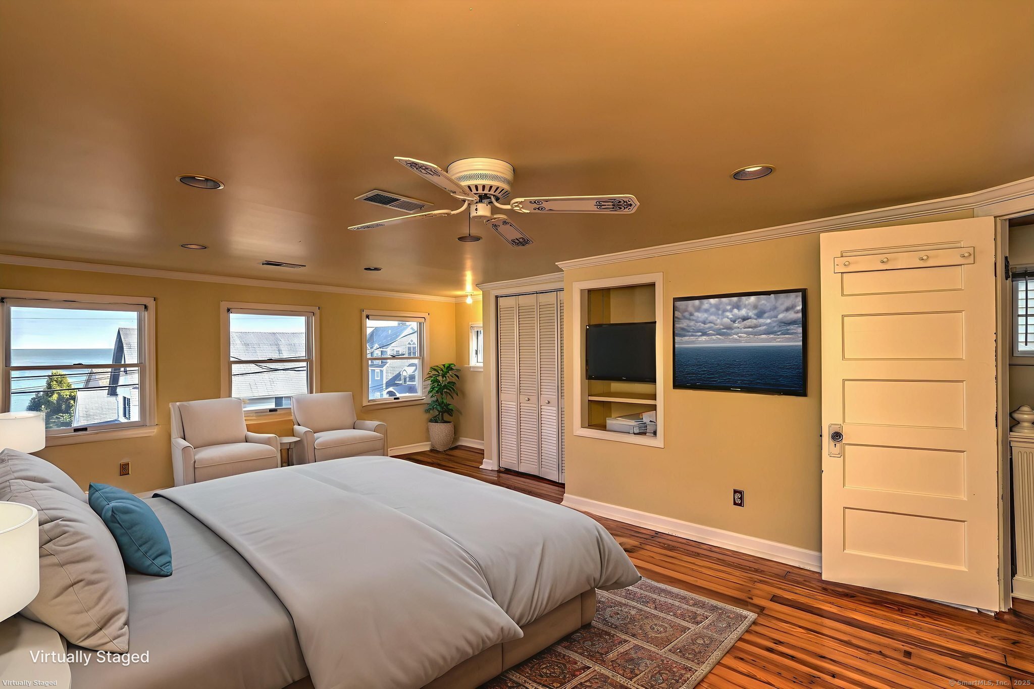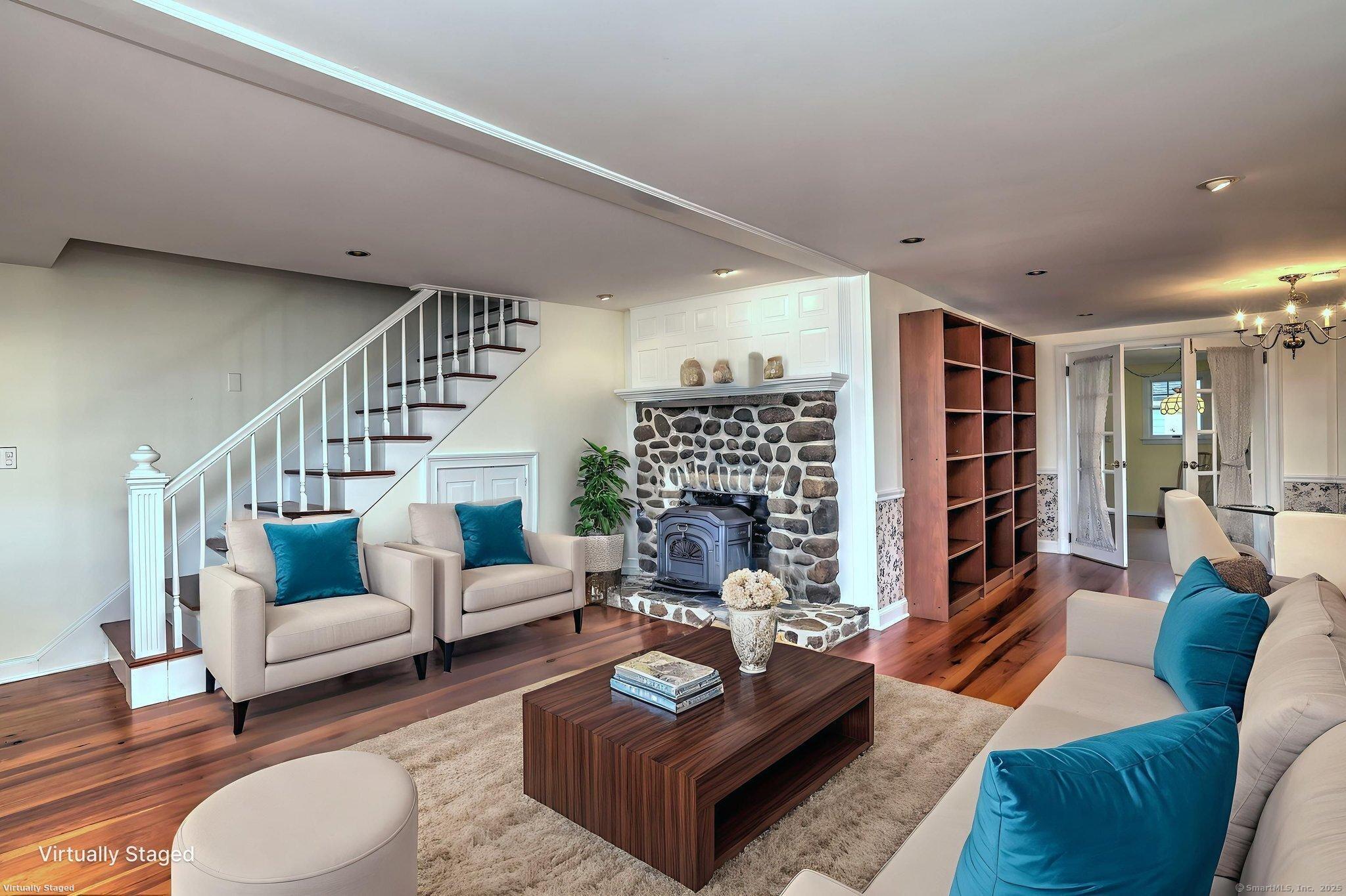 Seaside serenity and storybook charm in this one-of-a-kind tideline treasure, perfectly perched in one of Milford's most sought-after beachside enclaves. This 1,608-square-foot haven harmonizes comfort, character, and captivating coastal panoramas from nearly every angle. Sip your morning coffee or sunset cocktail from the covered front porch, where sea breezes, salt air, and seagull song set the tone for tranquil living. Inside, an open-concept living room invites you to unwind by the handsome mantled, stone fireplace with its Vermont Castings stove insert, gleaming hardwood floors, and wide water views that make every day feel like vacation. The formal dining room sits open to the living area and flows through French doors to the bright eat-in kitchen, complete with a breakfast bar, pantry, and door to the rear deck overlooking the fenced yard with a powered shed for your workshop endeavors and beach gear storage. Upstairs, the primary bedroom promises peaceful mornings with hardwood floors and ocean vistas. A walk-up attic offers boundless potential with breathtaking horizon views, while central air, a brand-new furnace, and main-level laundry make everyday living blissfully easy. With lively seasonal community events and the beach, restaurants, train, and shops all nearby, this coastal jewel affords a rare recipe of location, lifestyle, and lasting allure.