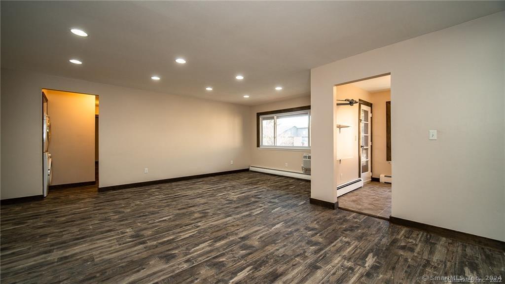 Beautifully Updated Condo in the Upper North End! WOW - heat and hot water are included in the rent! This remodeled 2nd-floor condo features granite countertops, gleaming hardwood floors throughout, and a spacious eat-in kitchen with a designated dining area. The unit offers two nicely sized bedrooms, including a primary bedroom with a private half bath, and plenty of closet space. Enjoy a private porch for relaxing on warm days, full-size laundry machines, and access to a community swimming pool. Reserved parking for one car. Conveniently located near Sacred Heart University, the Trumbull line, major highways, shopping, and all your daily needs. No pets and no smoking permitted.