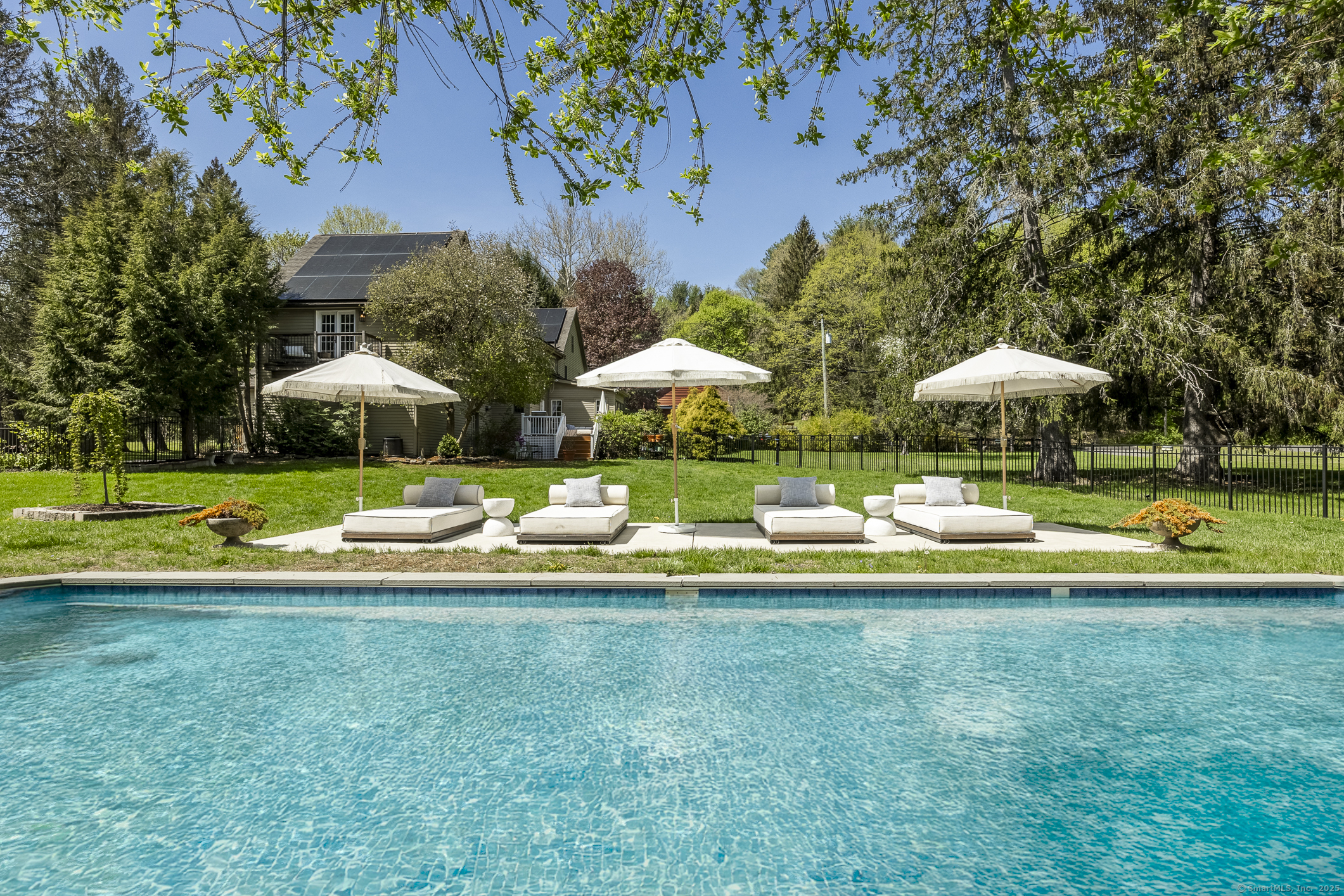This historic 18th-century Gaylord family homestead in New Milford, Connecticut, offers a perfect blend of authentic period charm and thoughtful modern enhancements. Set on picturesque grounds at 43 Gaylord Road, this distinctive Litchfield County property features versatile living spaces including an open-concept kitchen, living room, inviting Sun Room, formal dining room, and a cozy Snuggery with brick fireplace abutting the kitchen. The upper level showcases a spacious primary bedroom with vaulted ceilings, two walk-in closets, an en-suite bathroom, and a private balcony overlooking the backyard oasis. Three additional bedrooms and a full hall bath complete the second floor, providing generous accommodation for family and guests. Outdoor living reaches its pinnacle with a heated in-ground swimming pool, adjacent cabana, and expansive entertainment areas perfect for gatherings of all sizes. The property's amenities extend to a two-car attached garage and separate temperature-controlled barn offering versatile space for storage, workshop, or creative pursuits. Perfectly positioned with nearby hiking trails, minutes to Kent and New Milford's charming village centers, and convenient access to Metro North, this exceptional historic estate combines architectural significance, modern comfort, and an ideal location in one of Connecticut's most desirable communities.
