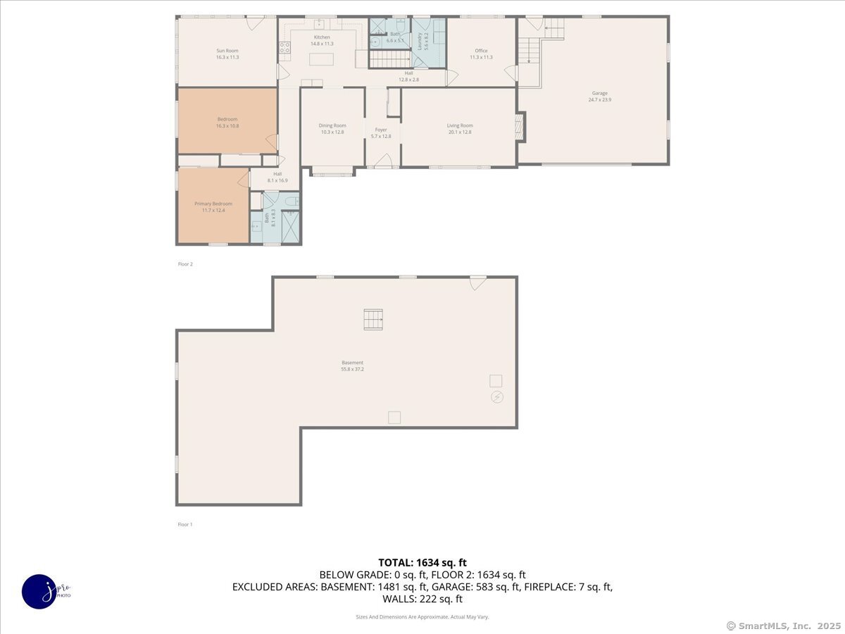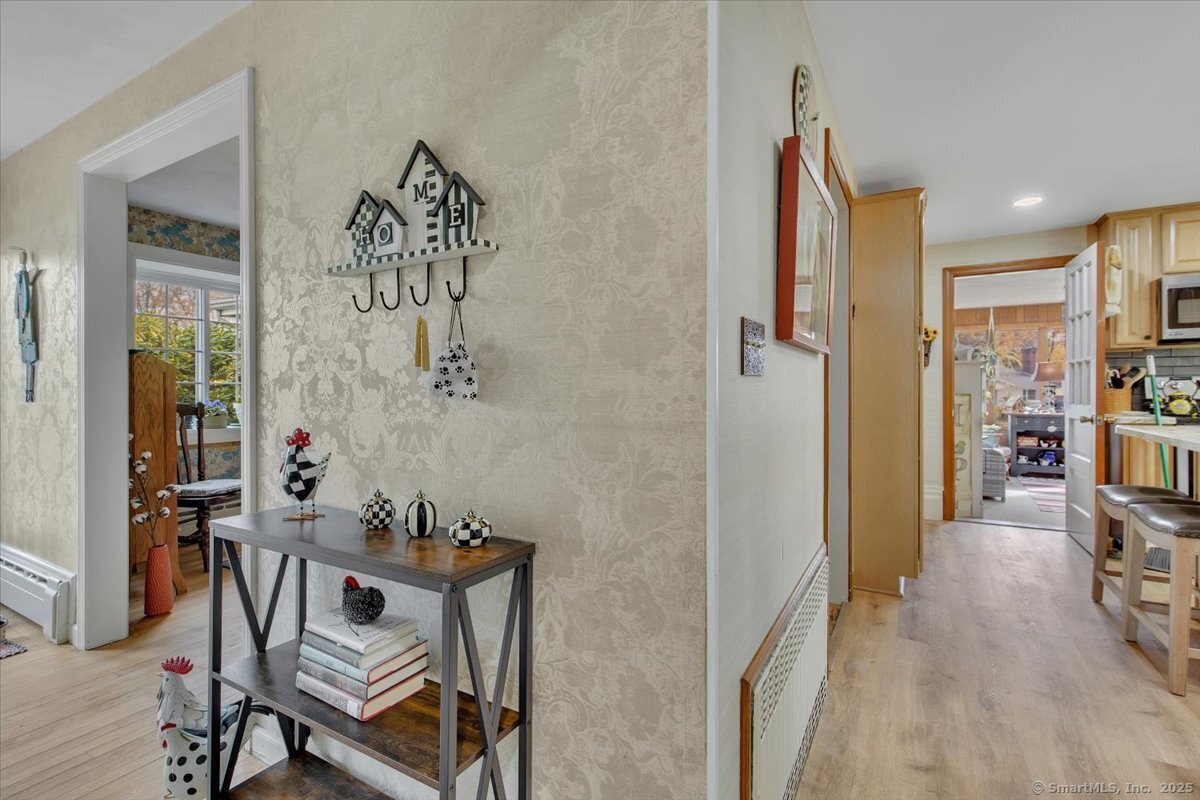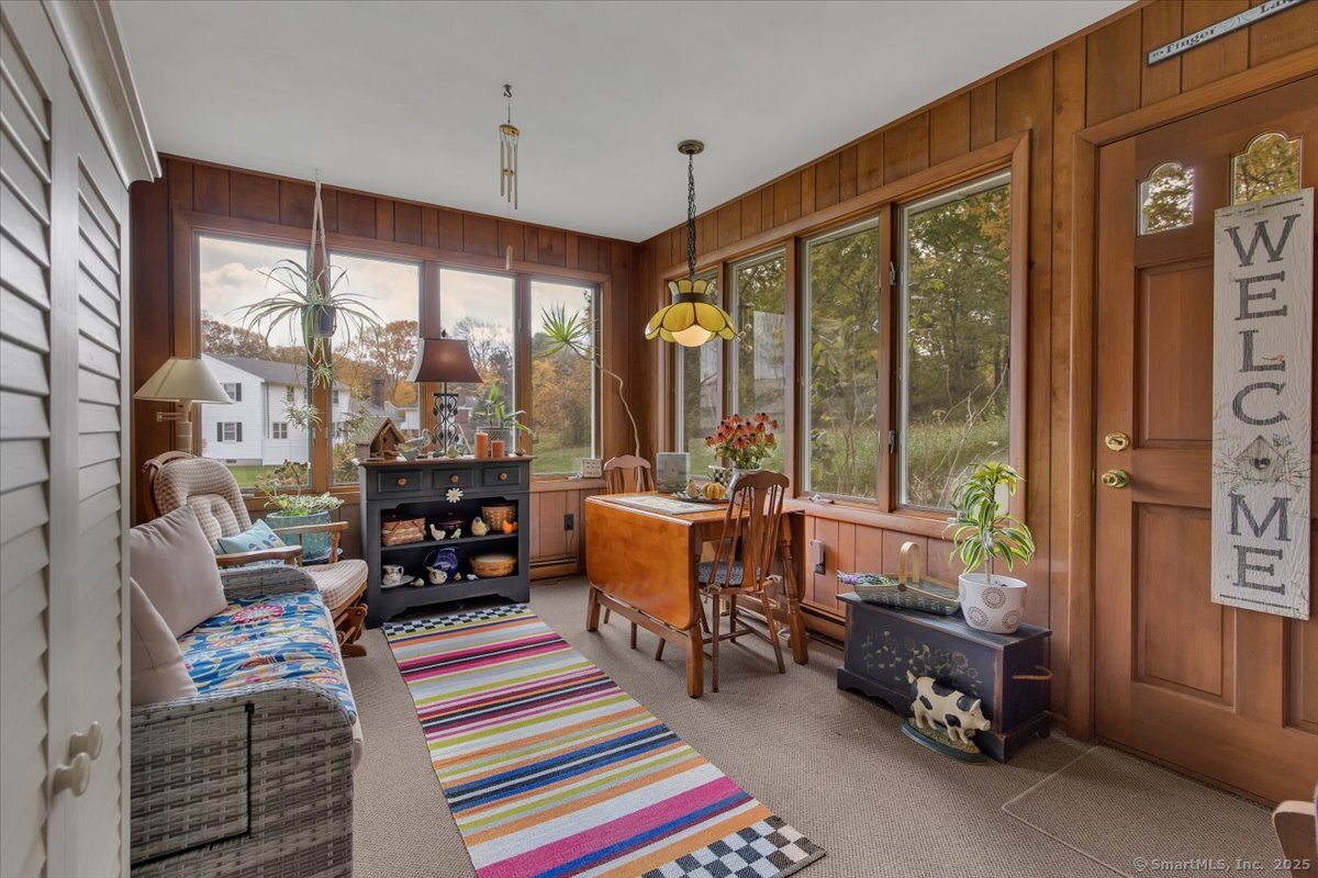 Fantastic brick ranch offering 1,620 square feet of comfortable living space with endless possibilities. This well-maintained home features a bright, open foyer leading to a spacious fireplaced living room with beautiful hardwood floors and an updated kitchen with modern finishes. The flexible floor plan allows for three bedrooms or two bedrooms with a versatile flex space. A stunning remodeled main bath includes a walk-in shower, and the second full bath with new toilet and sink also includes convenient main floor laundry. Enjoy the heated sunroom, perfect for year-round relaxation, and the attached two-car garage for easy access and storage. Quality updates throughout include new Andersen windows and front door, a roof less than five years old, upgraded 200 AMP electrical service, and a new hot water heater. Solar panels will be paid off in full by the seller at closing, providing immediate energy savings to the new owner. The sprawling unfinished basement offers an opportunity to create additional living space to suit your needs. The property is nicely landscaped with a beautiful stone wall and walkway, adding great curb appeal. Located in a fantastic neighborhood on a quiet dead-end street, this home is ready for its next owner to move right in and make it their own.