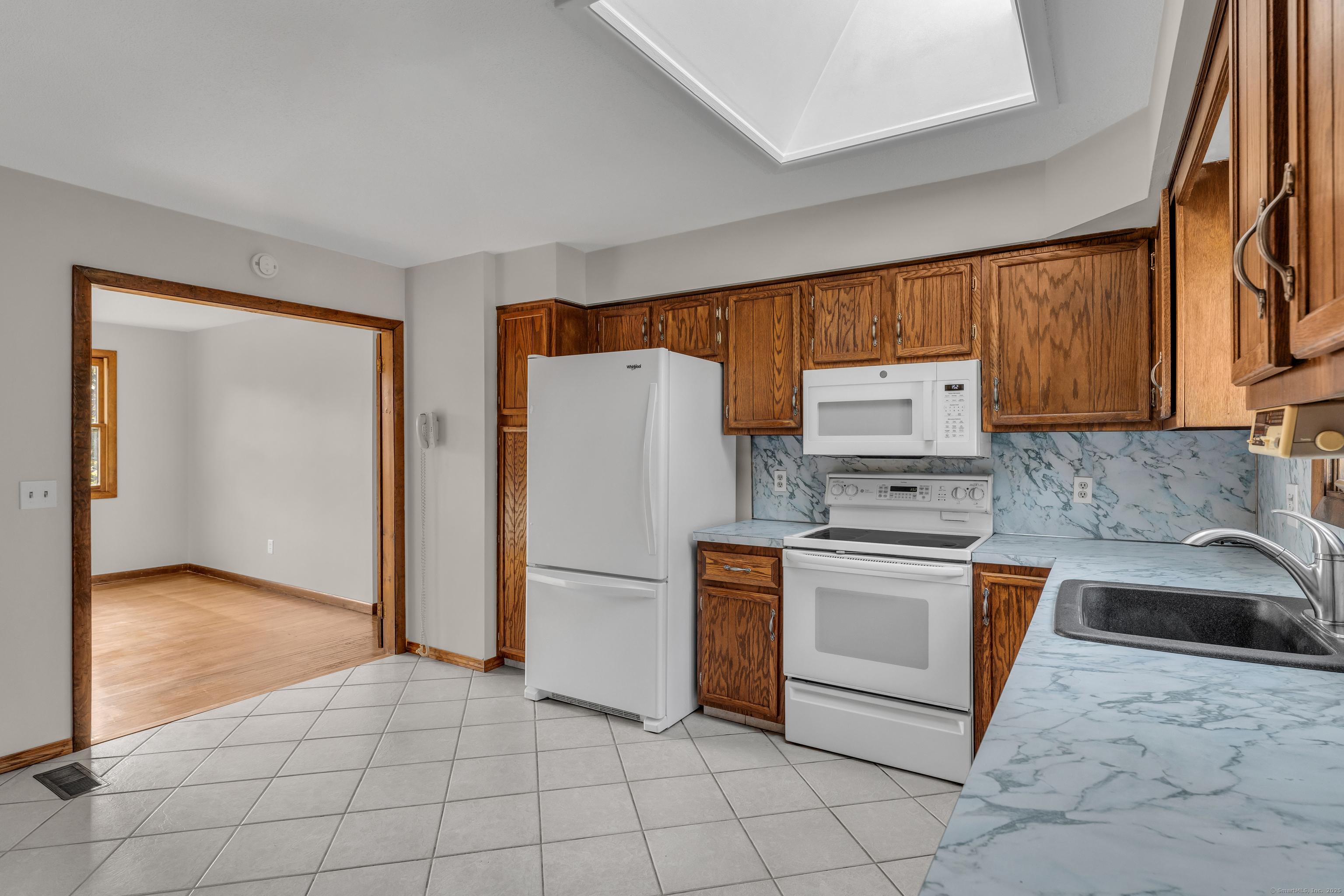 Charming ranch-style home nestled in a wonderful neighborhood with sidewalks-perfect for walking and connecting with neighbors. This inviting residence features three comfortable bedrooms, including a primary suite with its own full bath, plus a second full bath conveniently located off the hallway. A sunfilled dining room opens to a spacious, tile-floored kitchen and flows seamlessly into the family room, creating an ideal layout for everyday living and entertaining. The cozy family room features a propane fireplace and sliders to the back deck, offering the perfect spot to relax and enjoy the outdoors. The living room provides additional flexible space-ideal for a quiet retreat, playroom, or home office. A finished lower level expands your living options with room for a gym, playroom, or home office, along with ample storage. The level backyard includes a storage shed and plenty of space for gardening or play. A warm, welcoming home in a sought-after neighborhood!