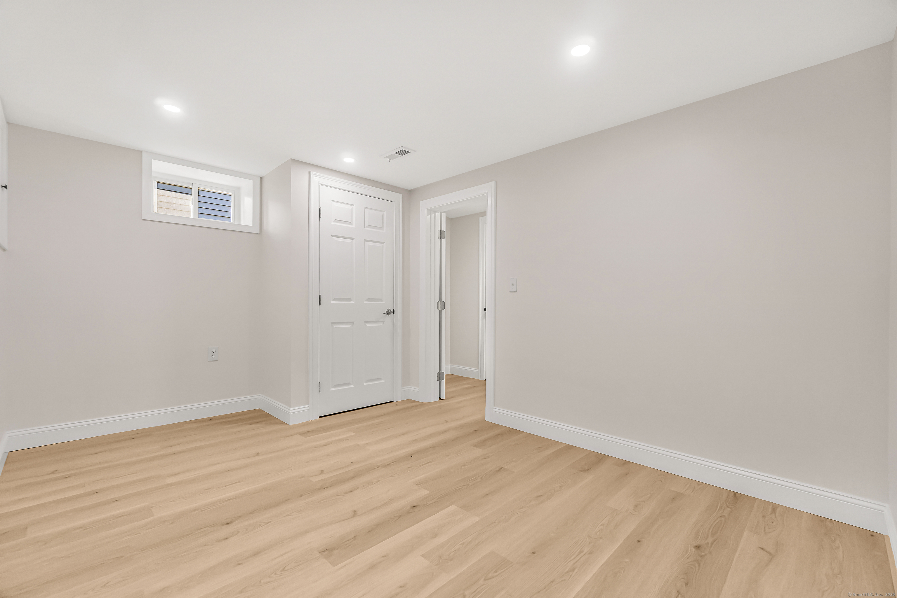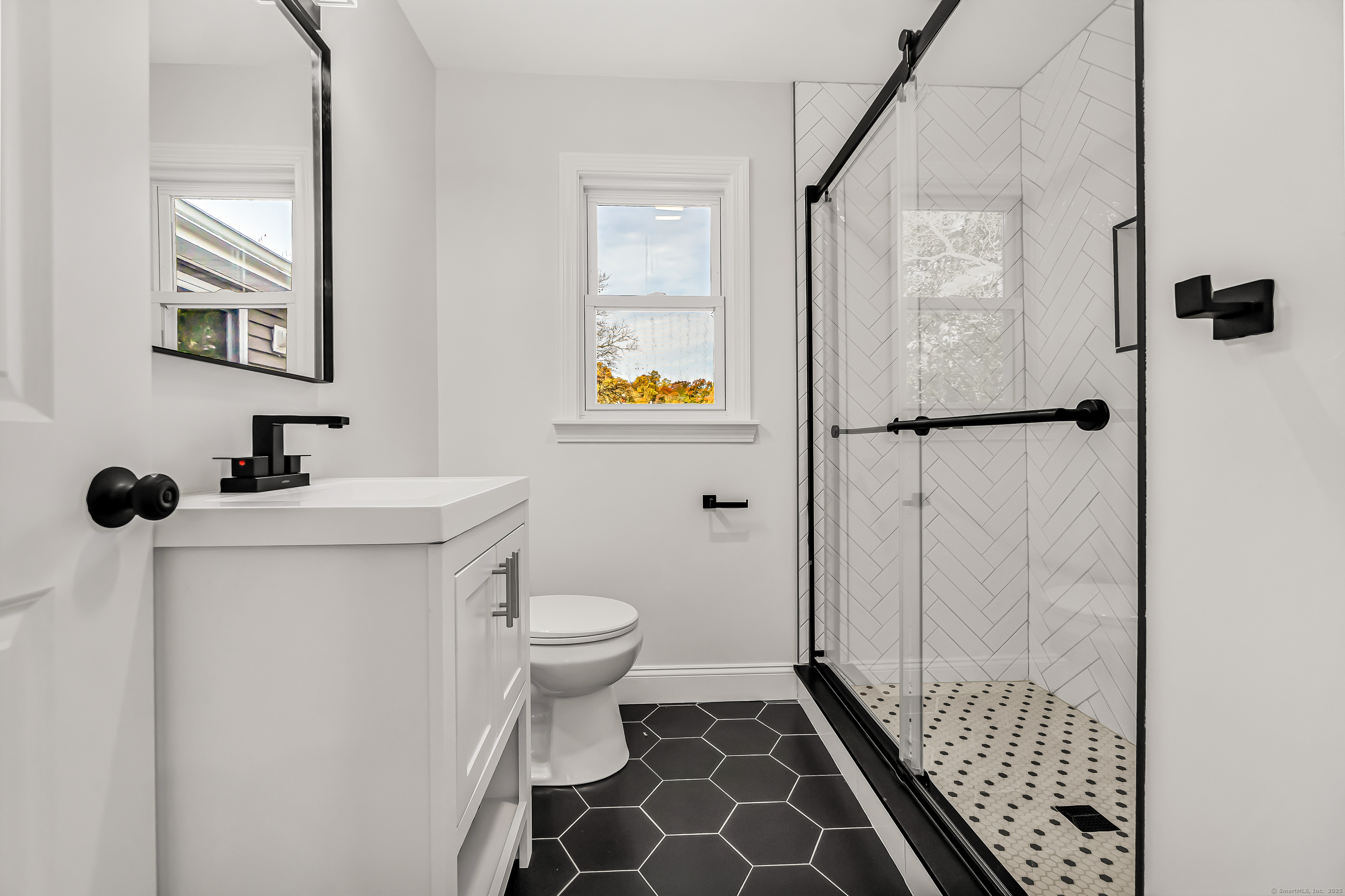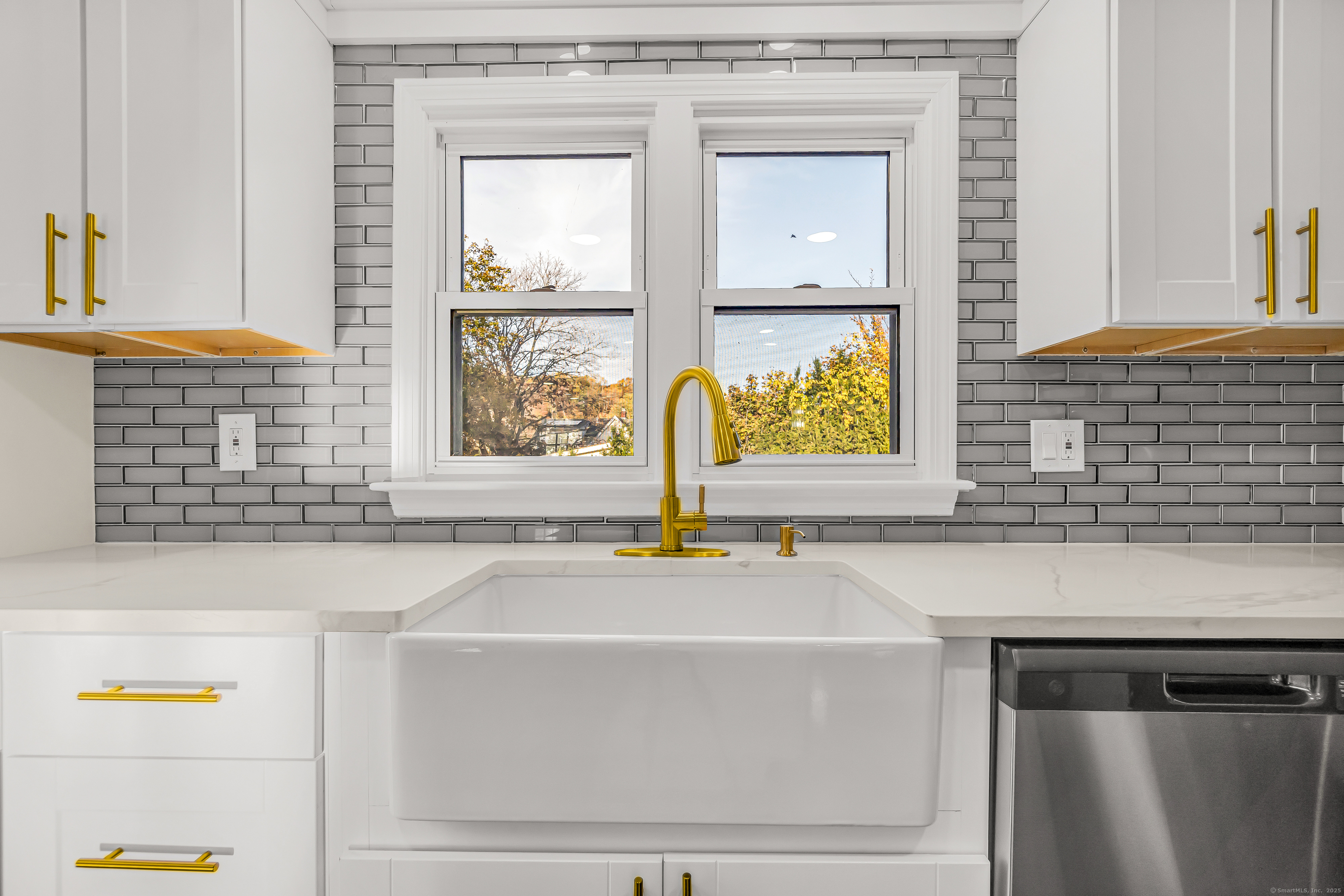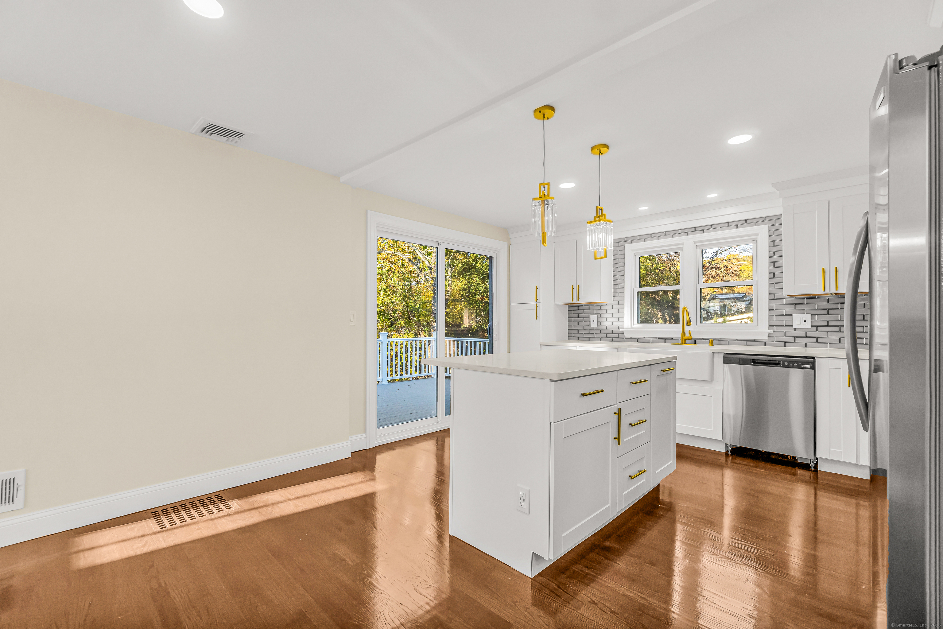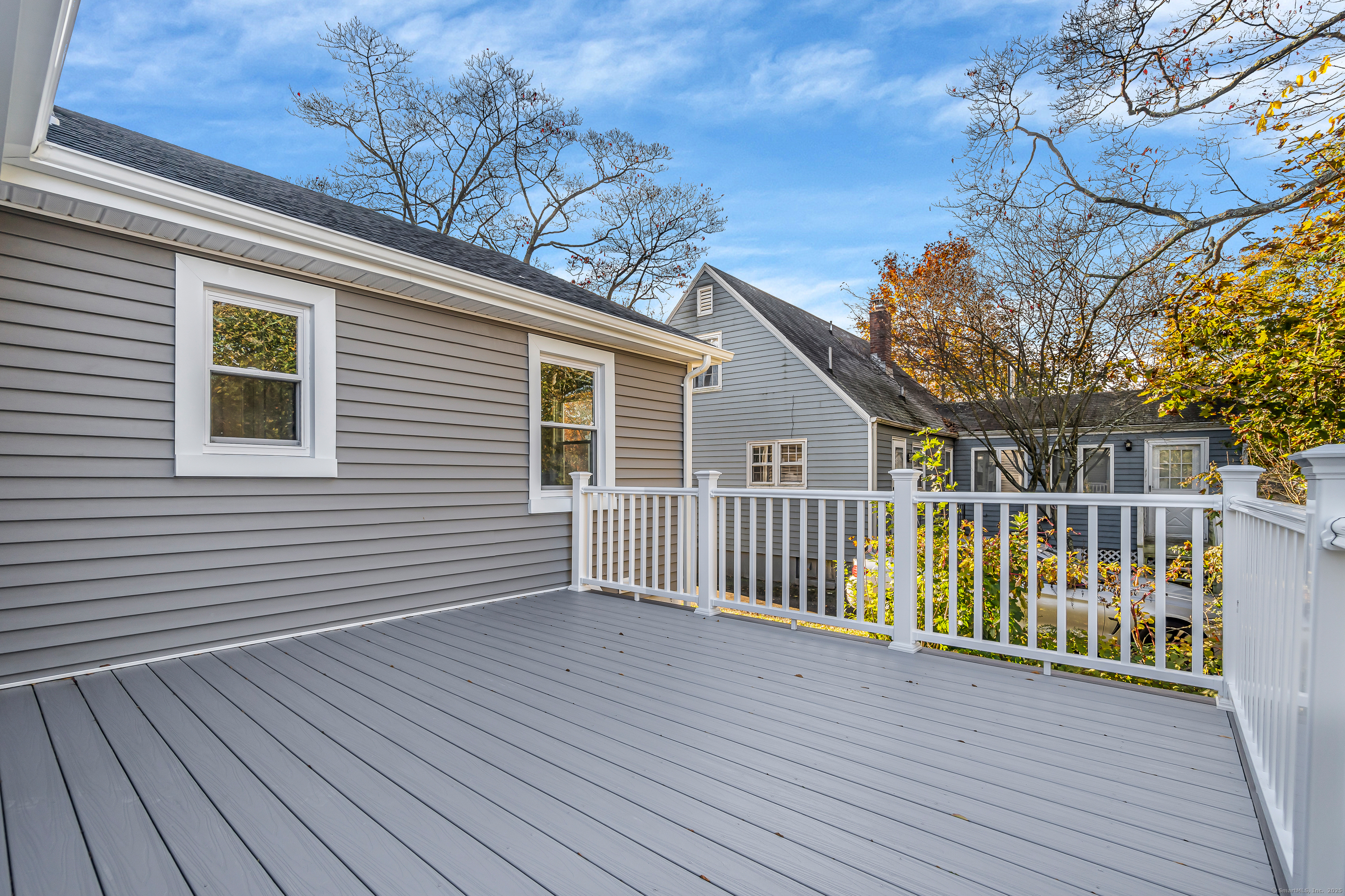 Tastefully renovated turn key home with quality craftsmanship located in desirable East Haven neighborhood. This home offers 3 spacious bedrooms, two on the main level and a third located in the finished basement. All new custom kitchen cabinets, quartz countertops, tiled backsplash, with modern hardware, fixtures and appliances.The heated finished basement adds additional living space. The family room has custom built in shelving and recess lighting. There's an additional storage room and laundry room. Relax on the maintenance free deck overlooking large leveled and private backyard. Many new updates including new roof, HVAC, central air, new windows and all new doors. Truly a must see!