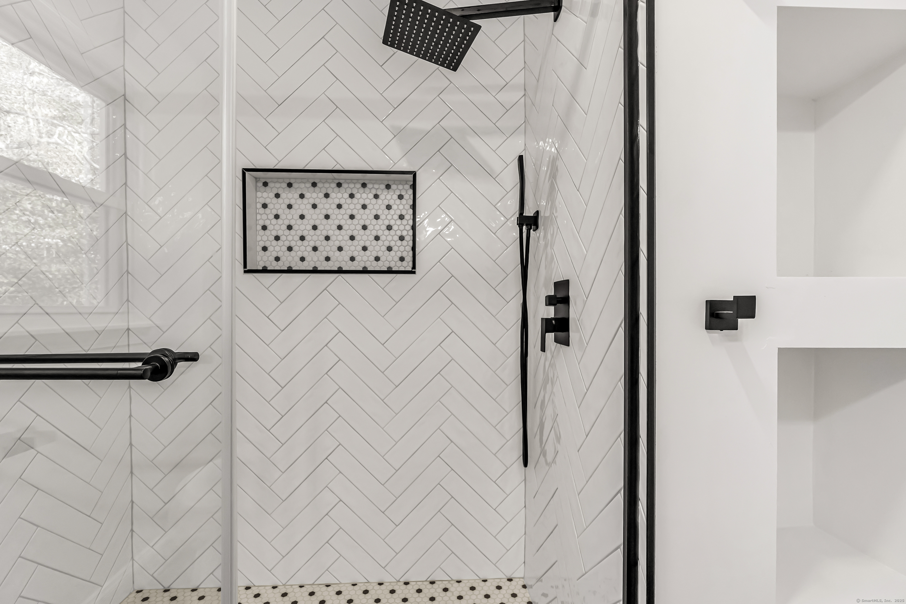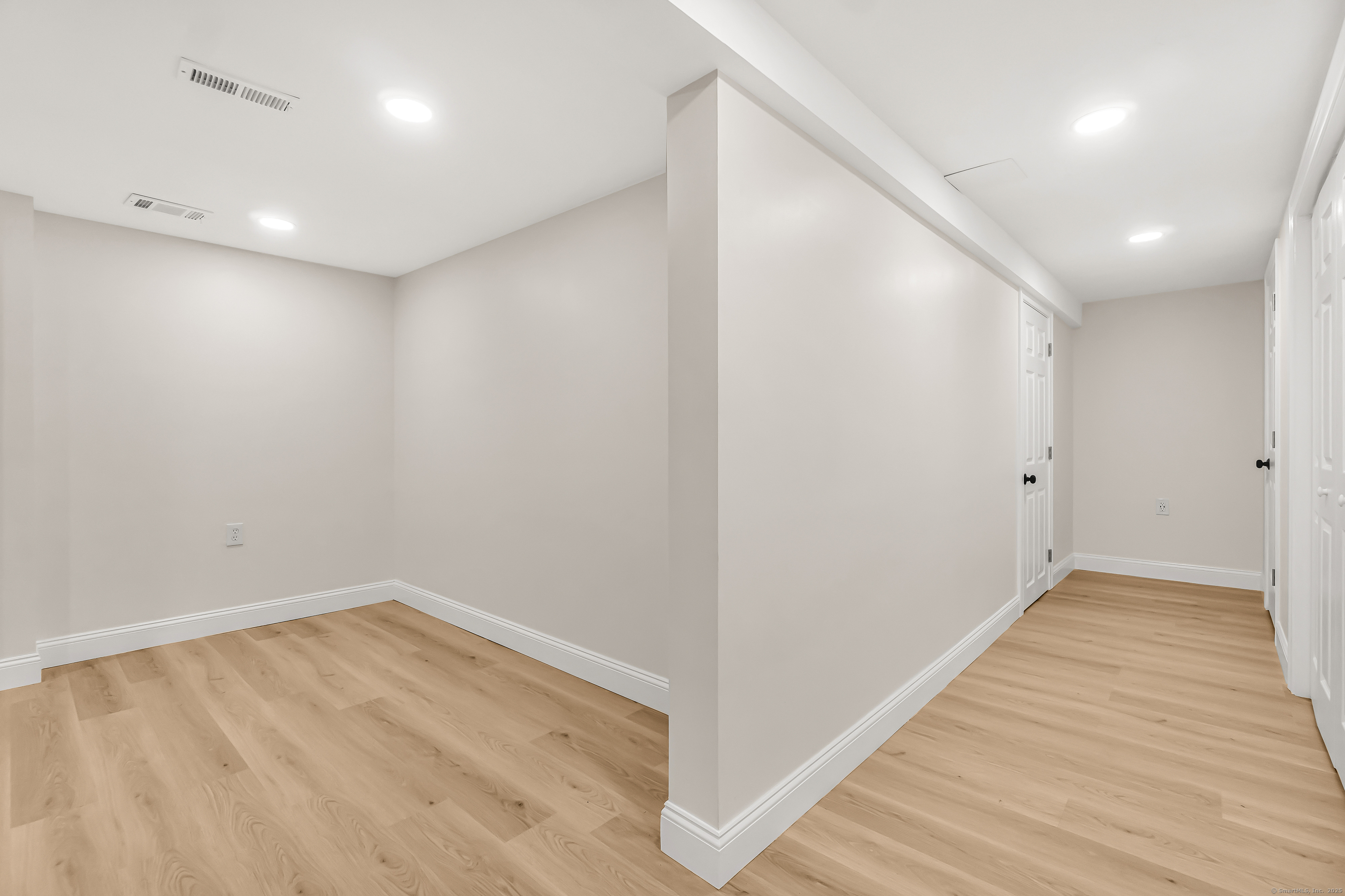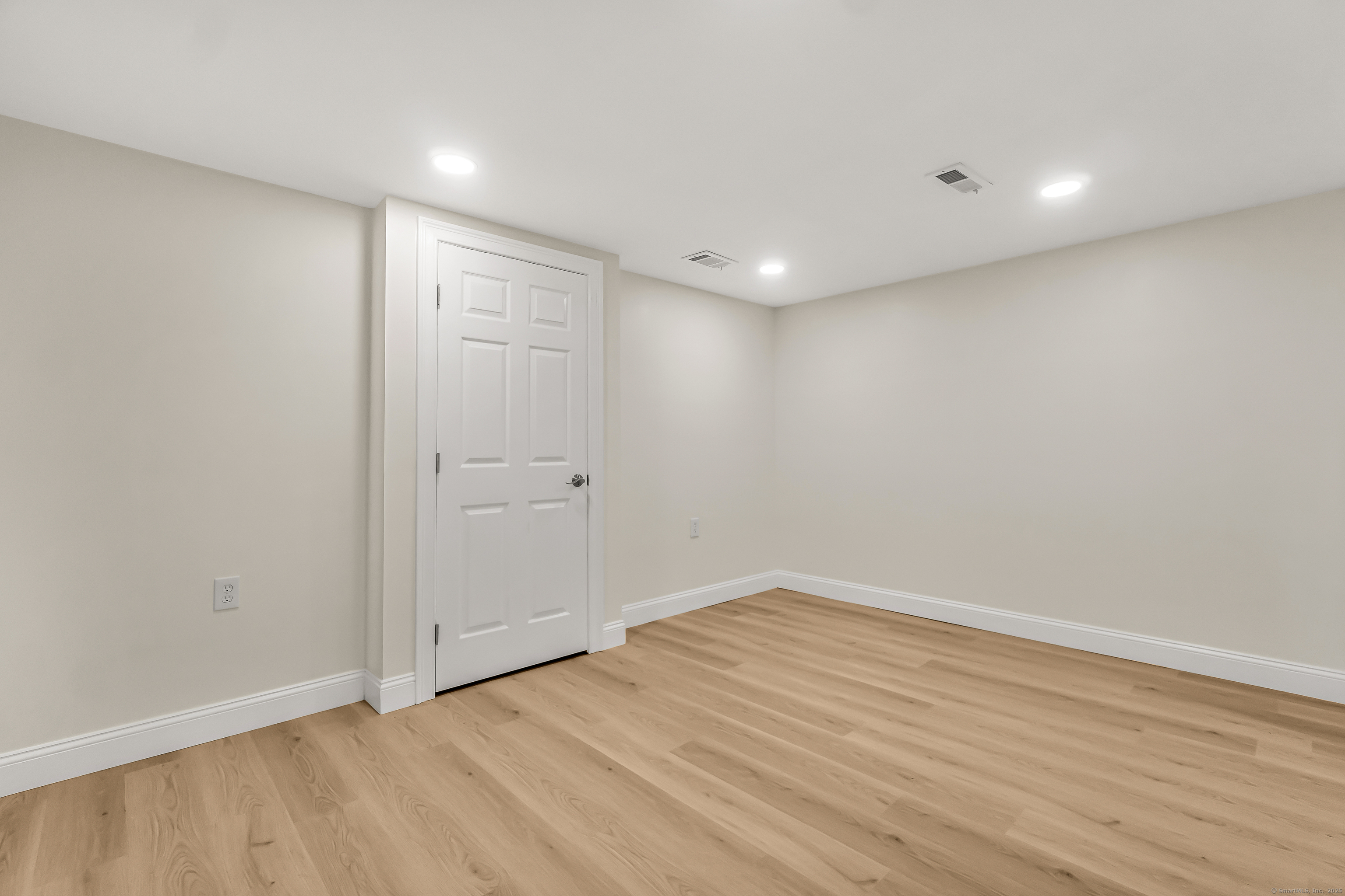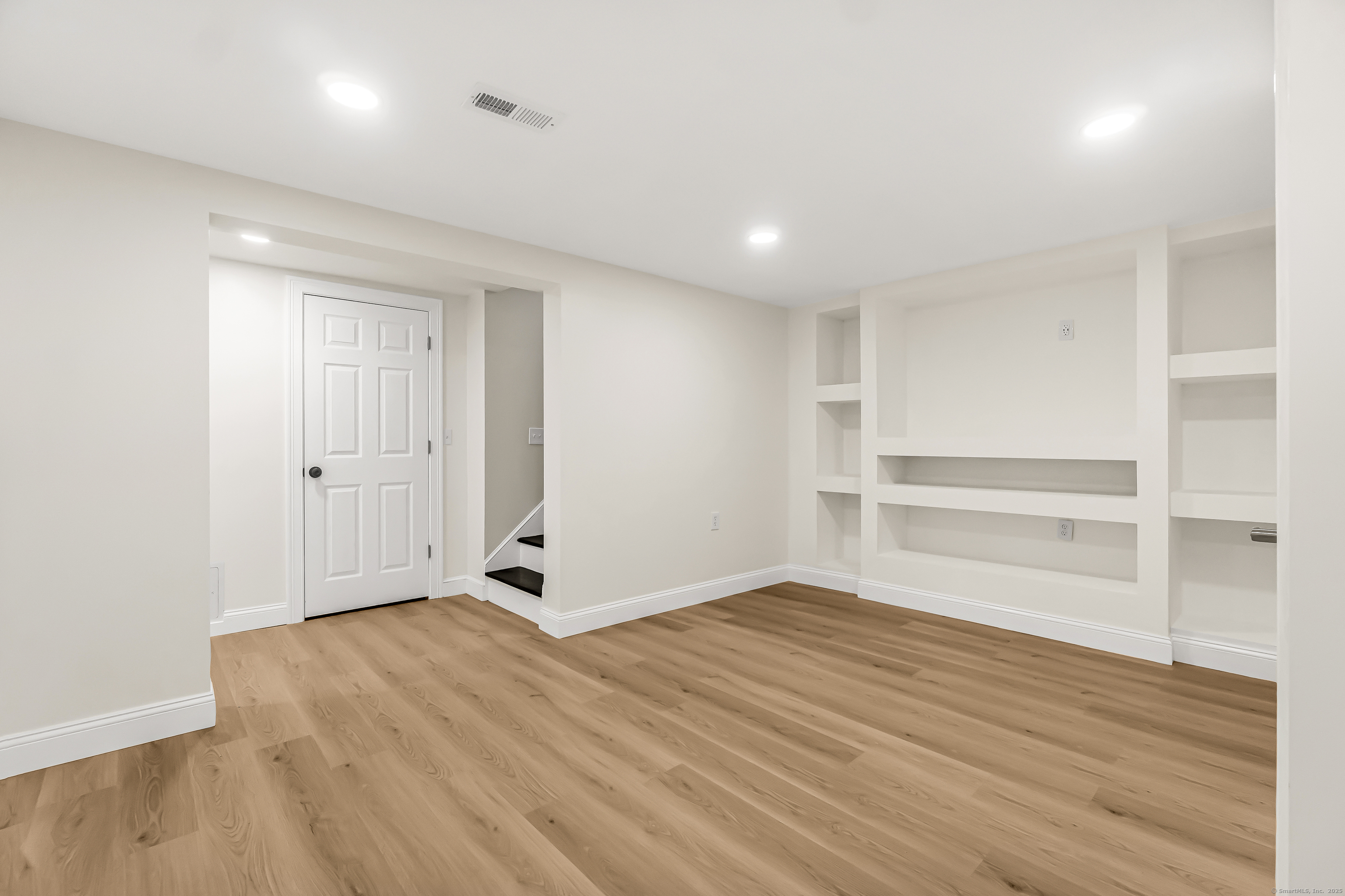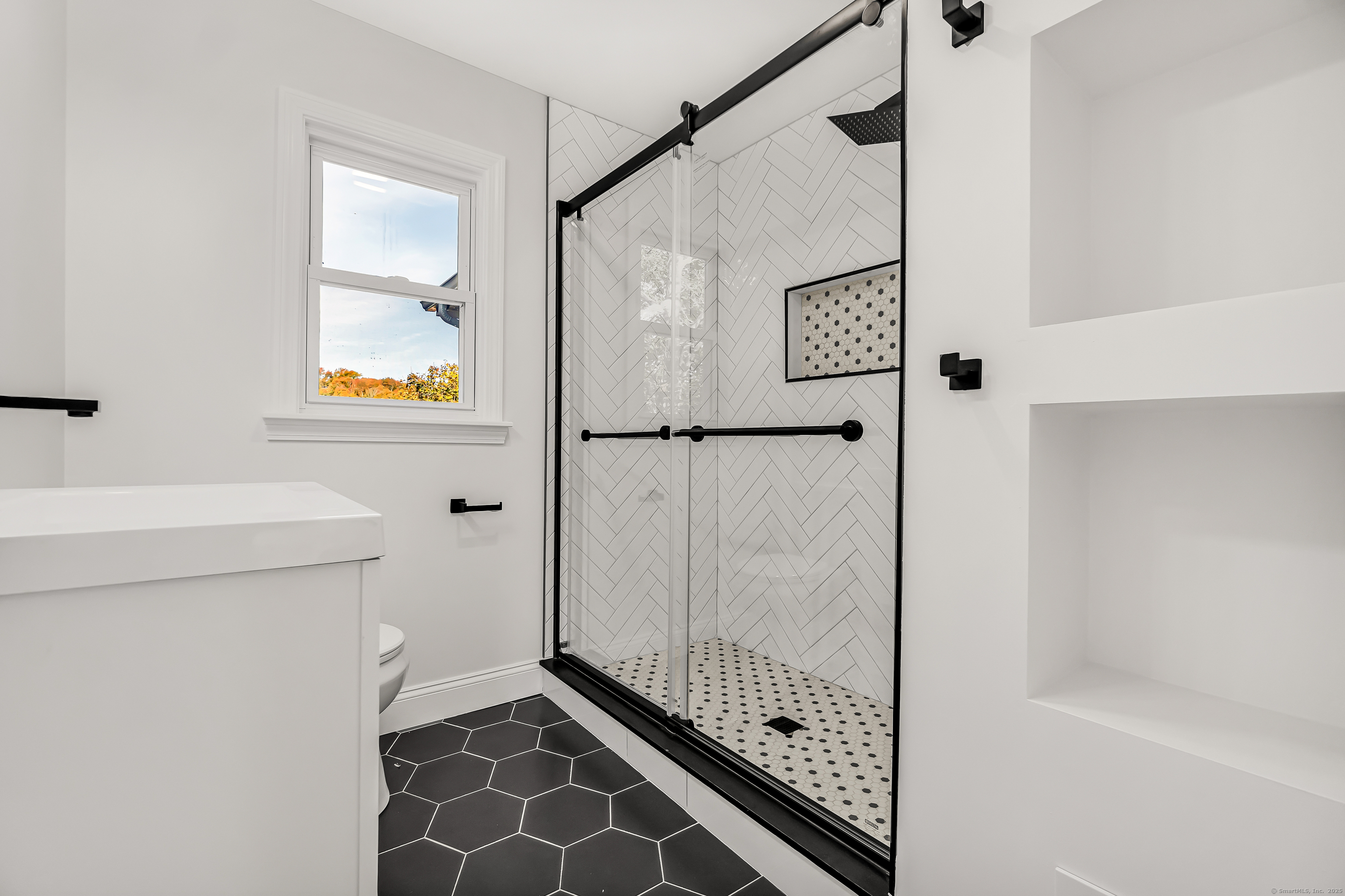 Tastefully renovated turn key home with quality craftsmanship located in desirable East Haven neighborhood. This home offers 3 spacious bedrooms, two on the main level and a third located in the finished basement. All new custom kitchen cabinets, quartz countertops, tiled backsplash, with modern hardware, fixtures and appliances.The heated finished basement adds additional living space. The family room has custom built in shelving and recess lighting. There's an additional storage room and laundry room. Relax on the maintenance free deck overlooking large leveled and private backyard. Many new updates including new roof, HVAC, central air, new windows and all new doors. Truly a must see!
