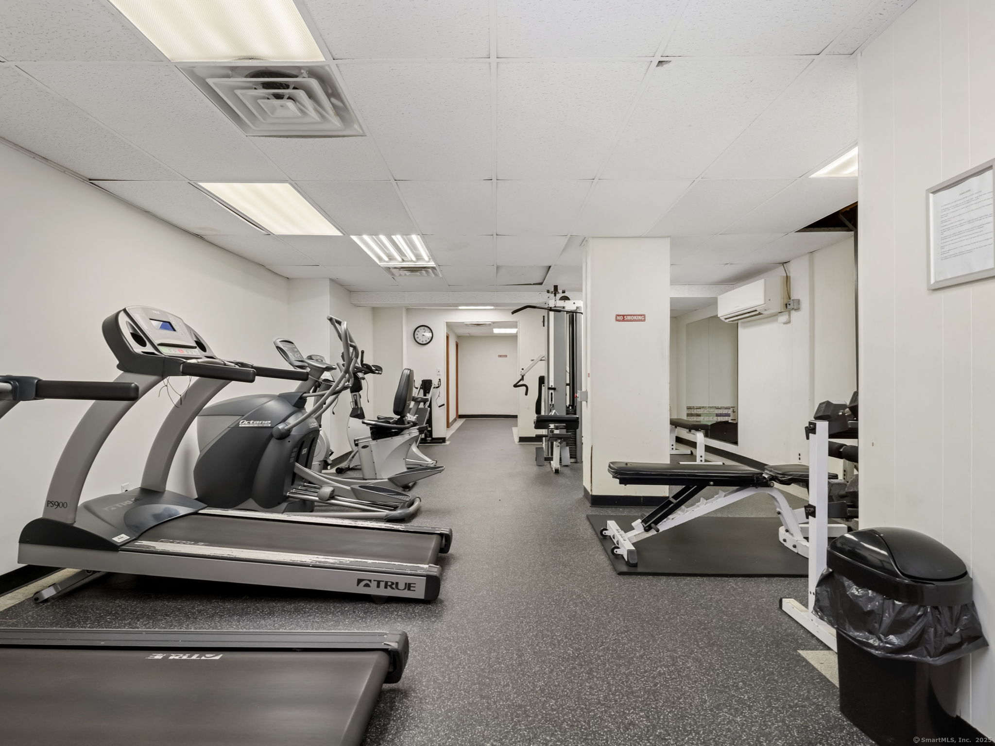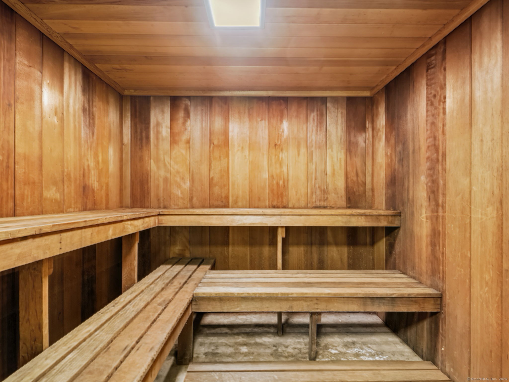 Elegant and light-filled corner residence offering over 1,200 square feet of refined living space. This beautifully updated two-bedroom, two-bath condominium features a sophisticated open-concept layout with a renovated kitchen showcasing granite countertops and stainless-steel appliances that seamlessly flow into the spacious living and dining areas. Numerous windows capture multiple sunlit exposures and open to an oversized screened-in balcony-ideal for morning coffee. The serene primary suite includes a renovated en-suite bath and generous closets, complemented by a second bedroom with walk-in closet and a second renovated bath. Residents enjoy a well-appointed fitness center with sauna, assigned garage parking, abundant guest parking, storage unit and a prime location just 1 mile from downtown Stamford's shopping, dining, and transportation. A perfect blend of comfort, convenience, and understated luxury.