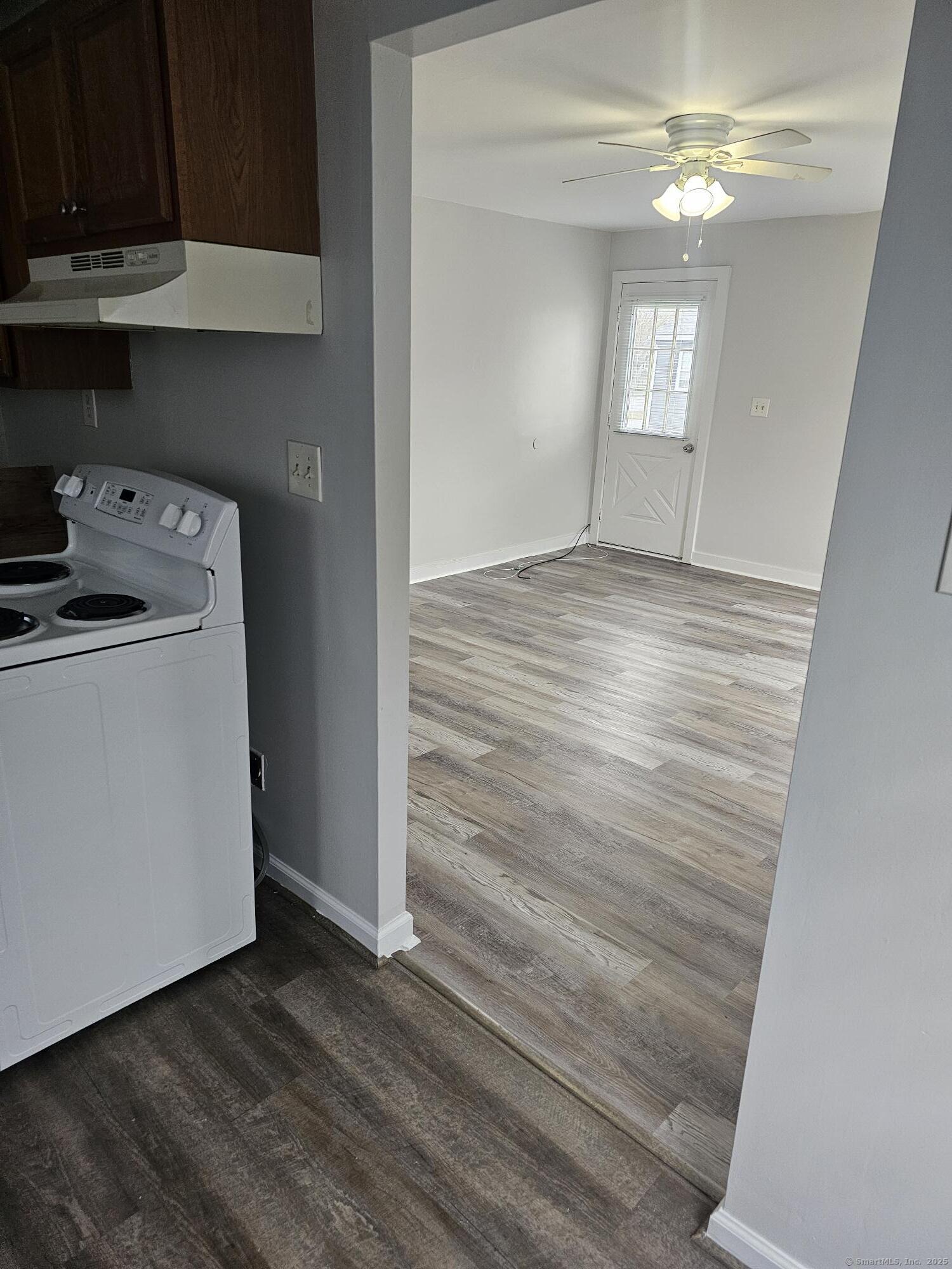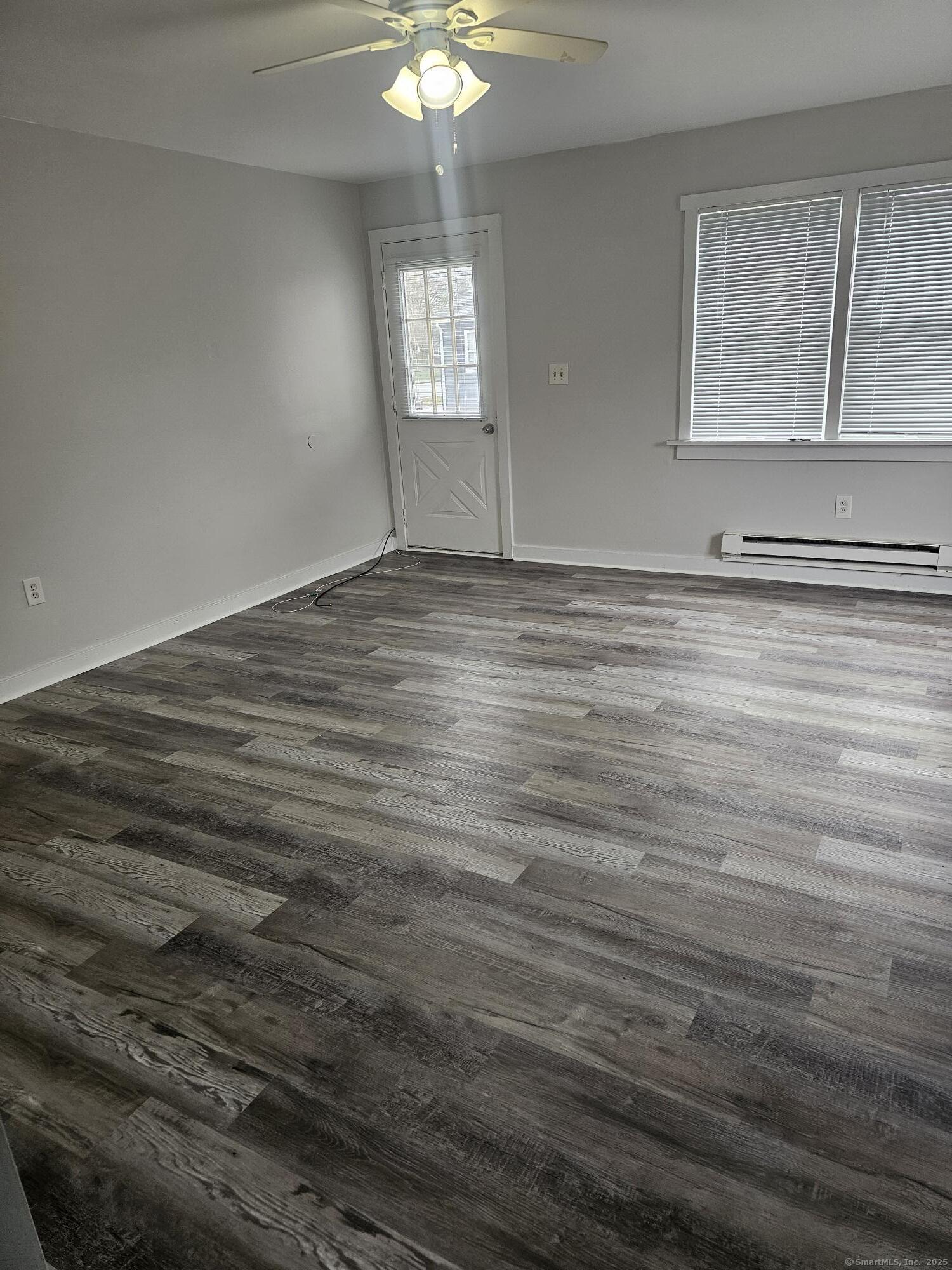 This apartment comes with a total of 4 rooms, two bedrooms, 1 full bath, and a living and eating area. This house has a clean interior aesthetic with a warm and cozy feeling on the inside. The location of this apartment is also very unique, although it is located in a large neighborhood it is still very close to a lot of things such as restaurants, gas stations and town hall. Washer/Dryer hook ups. Ample parking. Brand new flooring throughout and freshly painted, as well as new blinds.