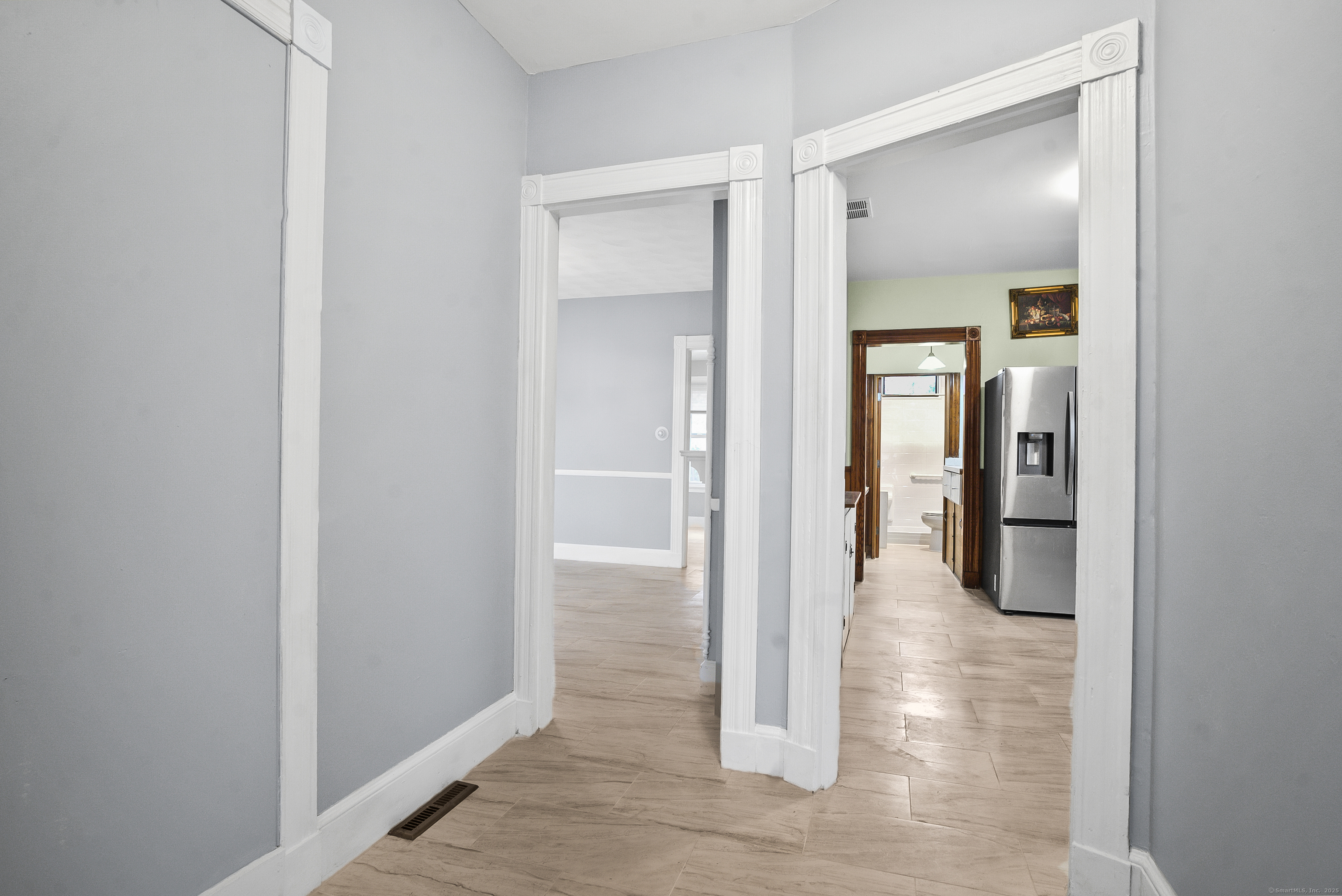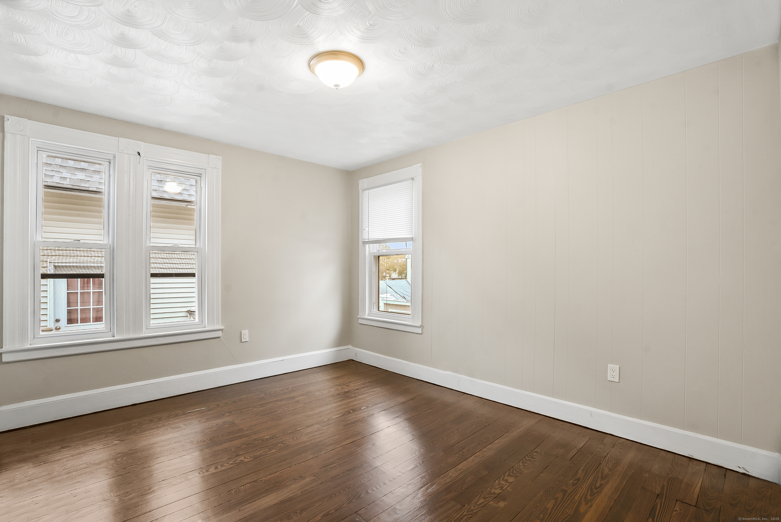 Spacious 4 bedroom, 2 full bath Colonial with electricity included in rent. Features a living room, dining room, and eat-in kitchen with a gas range and ample counter space. First-floor bedroom and full bath. The second floor offers three additional bedrooms and another full bath. Beautiful tile and refinished hardwood floors throughout. Three-season front foyer and rear deck for outdoor enjoyment. Laundry hookups available. Front yard available to use, not the rear yard. Street parking. Meticulously maintained and ready for immediate occupancy.
