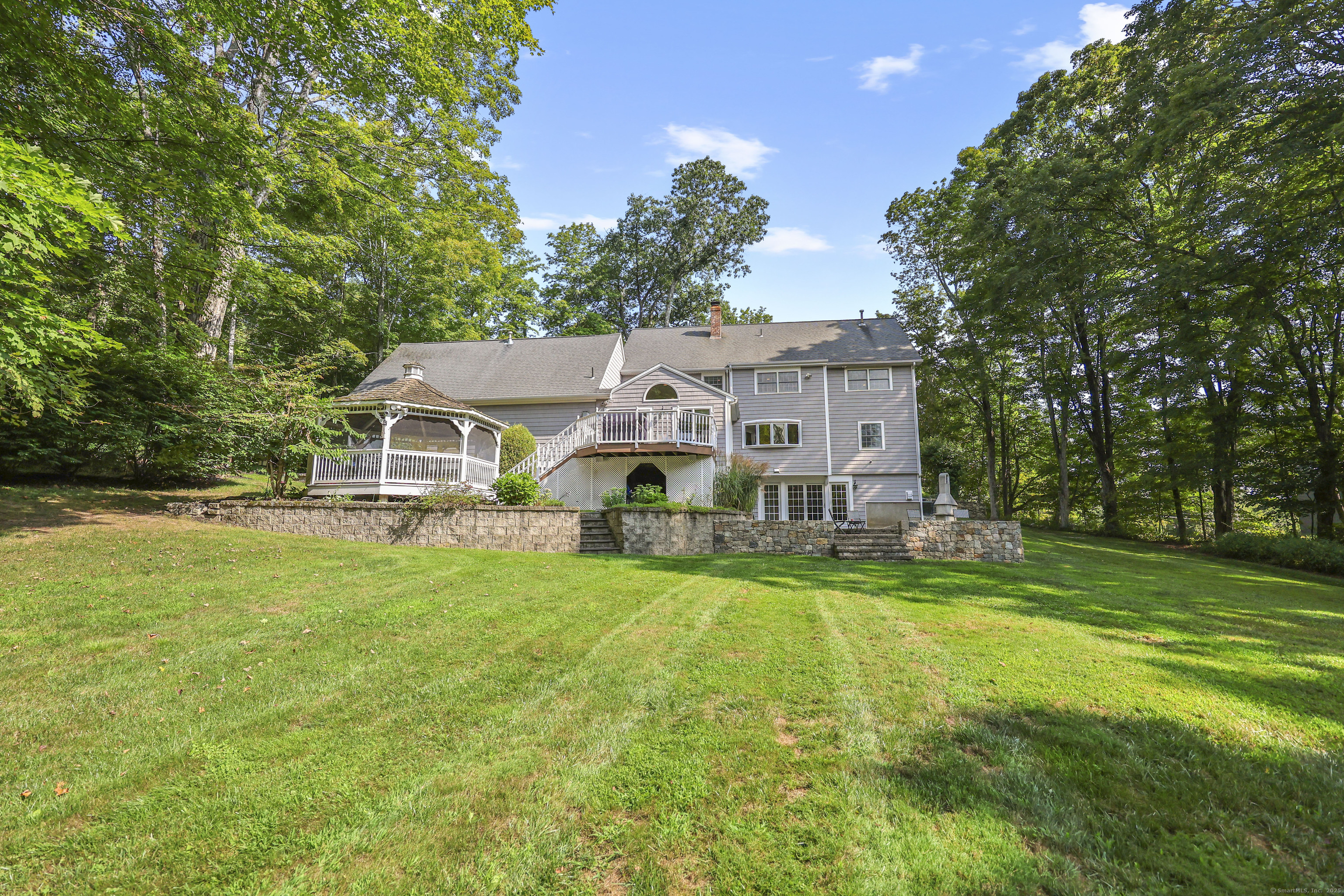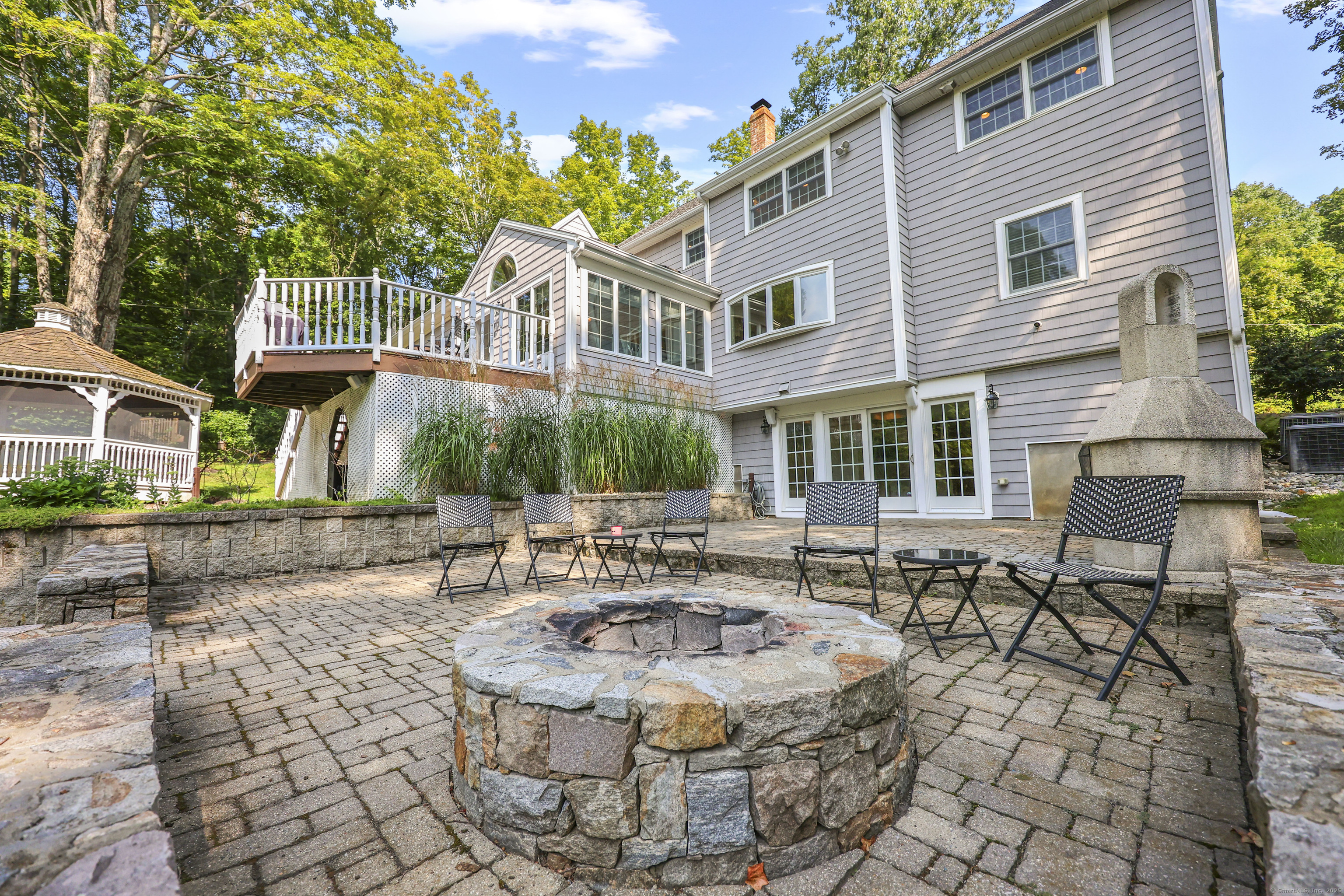 Welcome to this exceptional "Country Home," where timeless charm meets modern improvements on a stunning private lot. The approach sets the tone with a cobblestone entry, paver driveway, and impressive stone walls that frame the stately exterior with curb appeal that will impress. Inside, generous living spaces include a stunning family room, flows into a gourmet kitchen, office,full bath and 1 bedroom on 1st floor and expansive flowing rooms on 2nd floor, a 1,500-bottle temperature-controlled wine cellar, inviting bar, and seamless flow to the outdoors-this home was made for entertaining. Step outside to a sprawling deck overlooking a wide-open yard, gazebo, and firepit, with a unique cleared wooded area perfect for gatherings or quiet retreats. Recent upgrades include extensive landscaping and stonework, fresh interior and exterior painting, plumbing and lighting enhancements, and a newer heating and furnace system-providing peace of mind and pride of ownership. With 3 garage bays, natural gas heat, and thoughtful touches throughout, this property is as functional as it is beautiful.