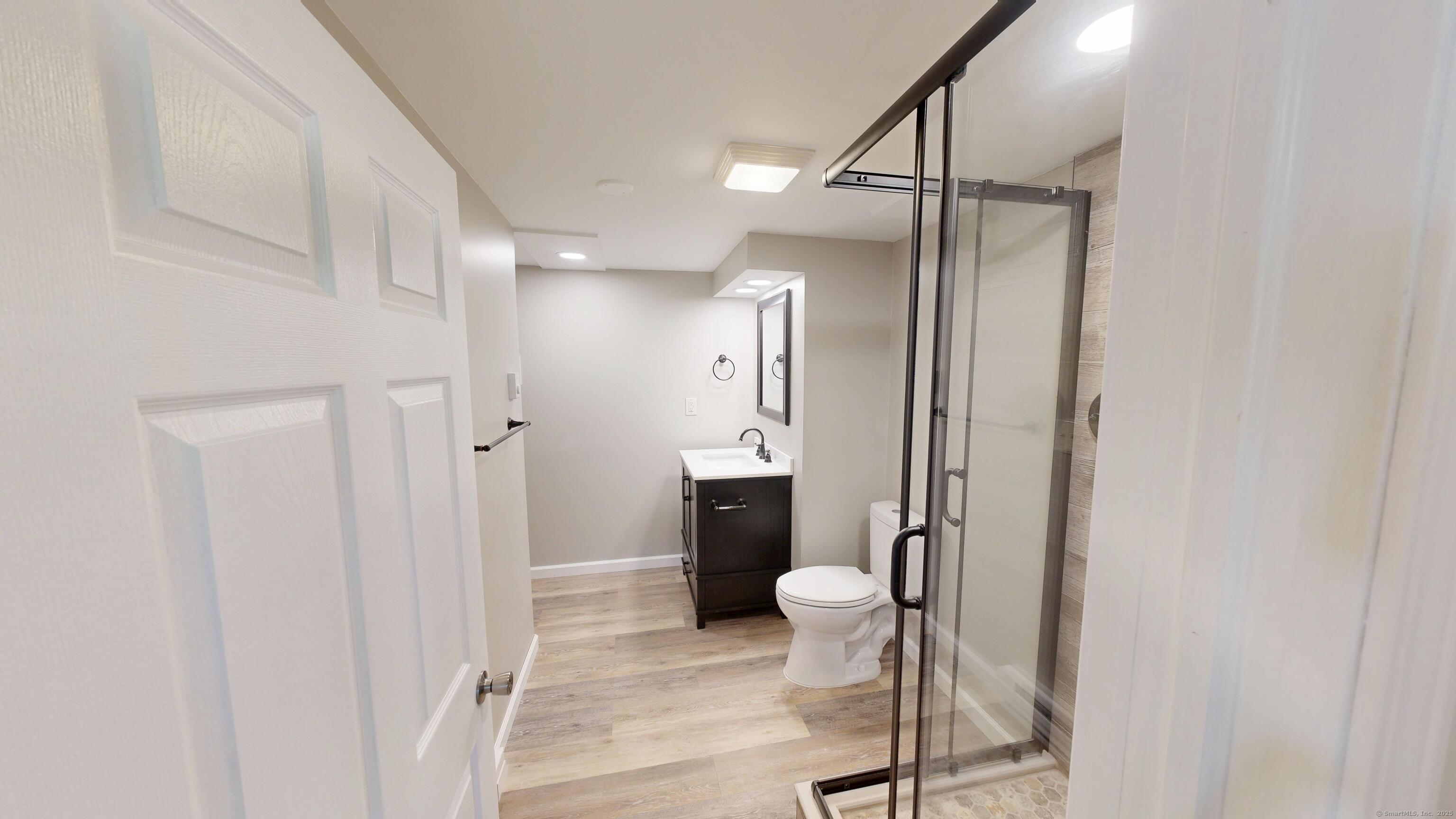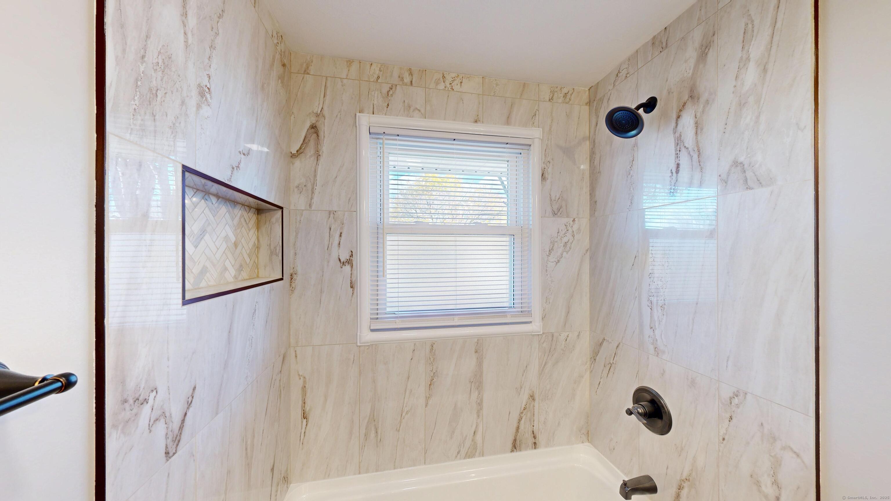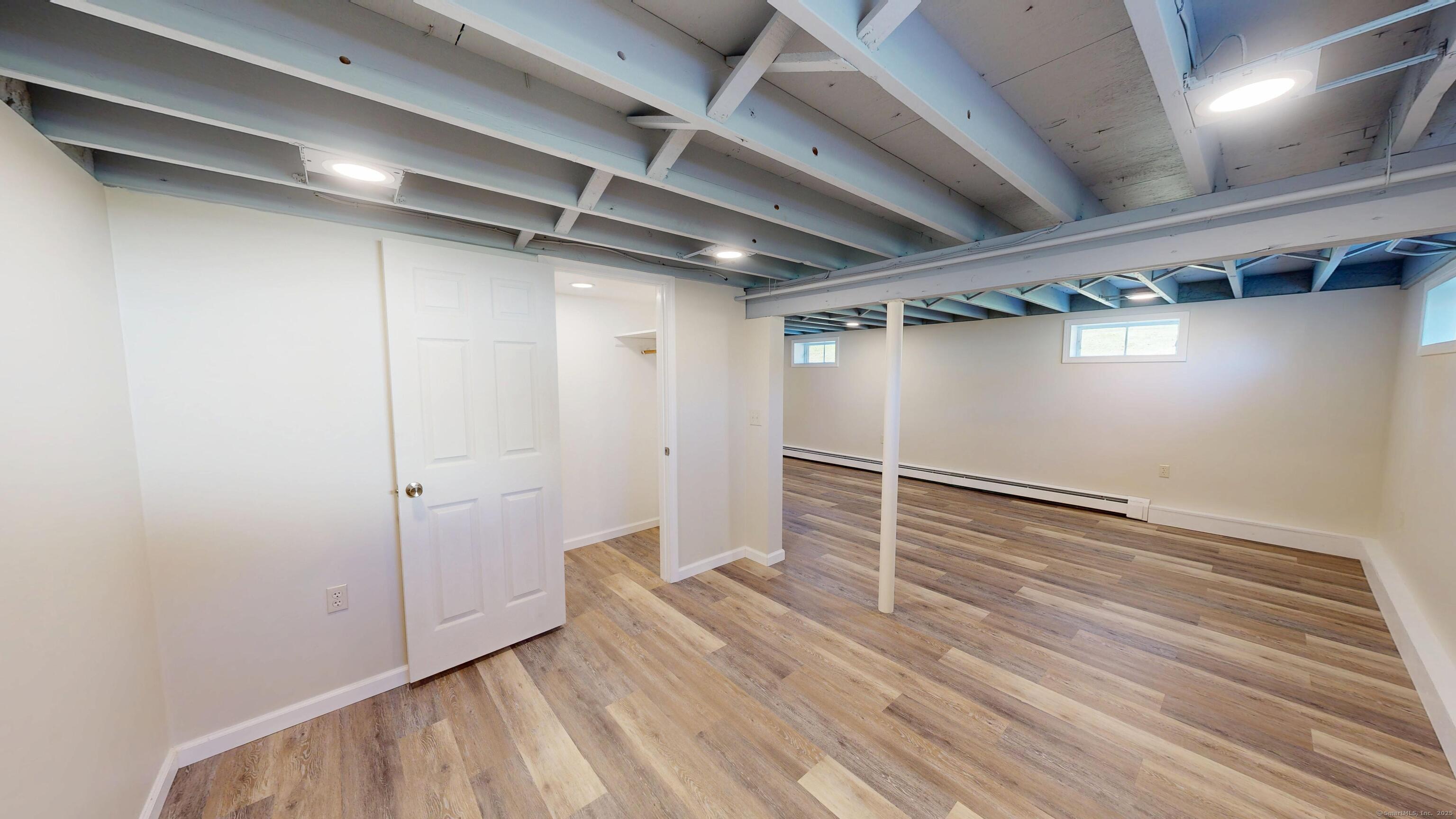 This beautifully remodeled three-bedroom, two-bath ranch sits on a spacious half-acre lot in a quiet, sought-after neighborhood. This home has been thoughtfully renovated with quality craftsmanship and attention to detail. The main level features a stunning new kitchen with white shaker cabinets, quartz countertops, a glass tile backsplash, and high-end stainless steel appliances. The living room (complete with a cozy wood-burning fireplace) and all three bedrooms showcase refinished hardwood floors, ceiling fans, and a soothing contemporary color palette. The fully updated main bathroom includes custom tilework and designer finishes. The lower level offers a brand-new, fully-permitted oversized family/playroom, a full bath with laundry area, and a versatile flex space with a storage closet - perfect for a home office. Additional updates, ensuring peace of mind for years to come, include upgrades to the plumbing and electric, and all new over the past year: roof with full 10-year warranty, premium Roth oil tank, freshly paved and widened driveway, energy-efficient Pella double-hung windows, patio with breezeway access, all interior doors and trim (solid-core doors on bedrooms and baths for sound privacy), and high-quality Delta plumbing fixtures throughout. This move-in-ready home is the one you've been waiting for.