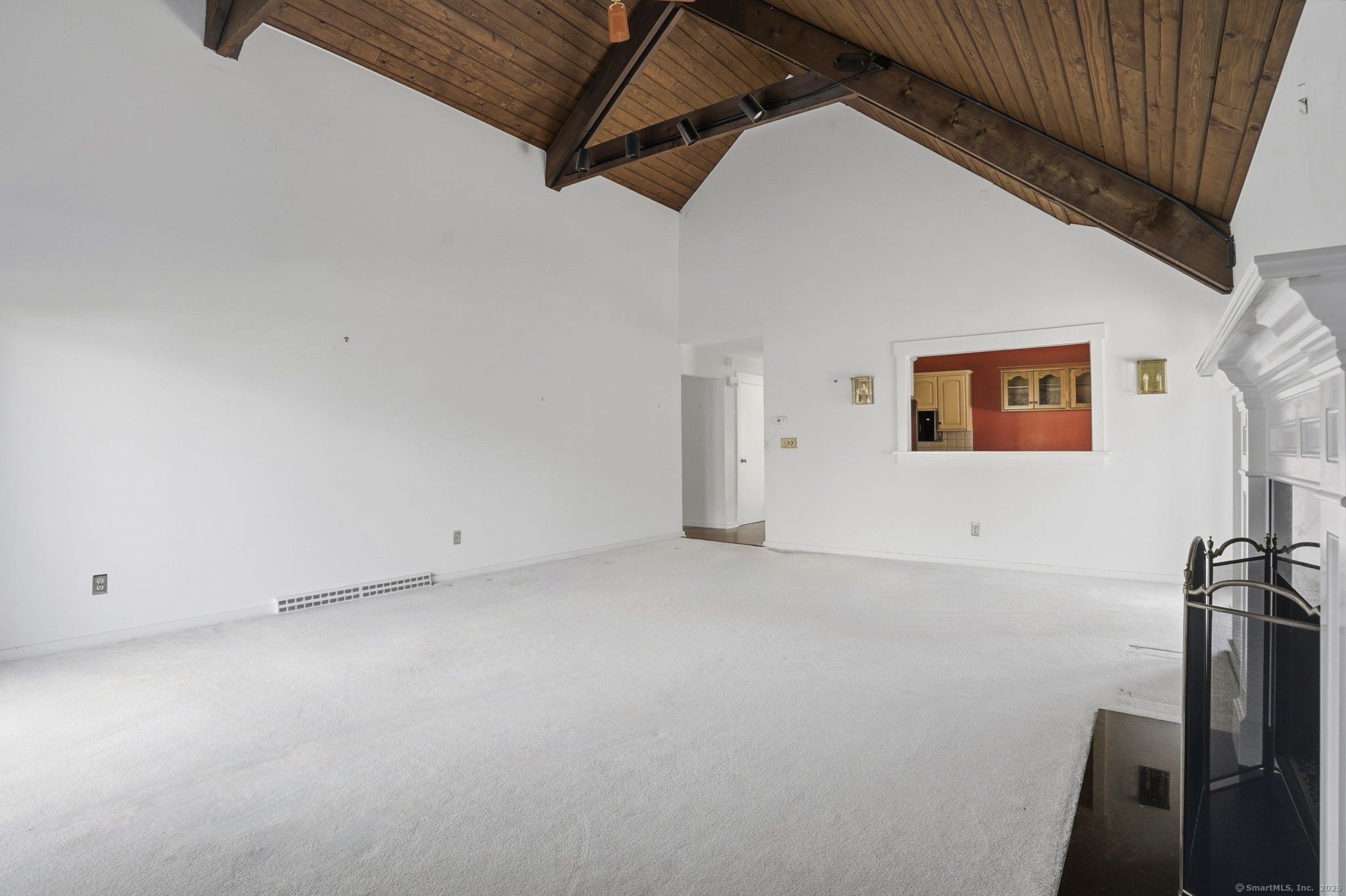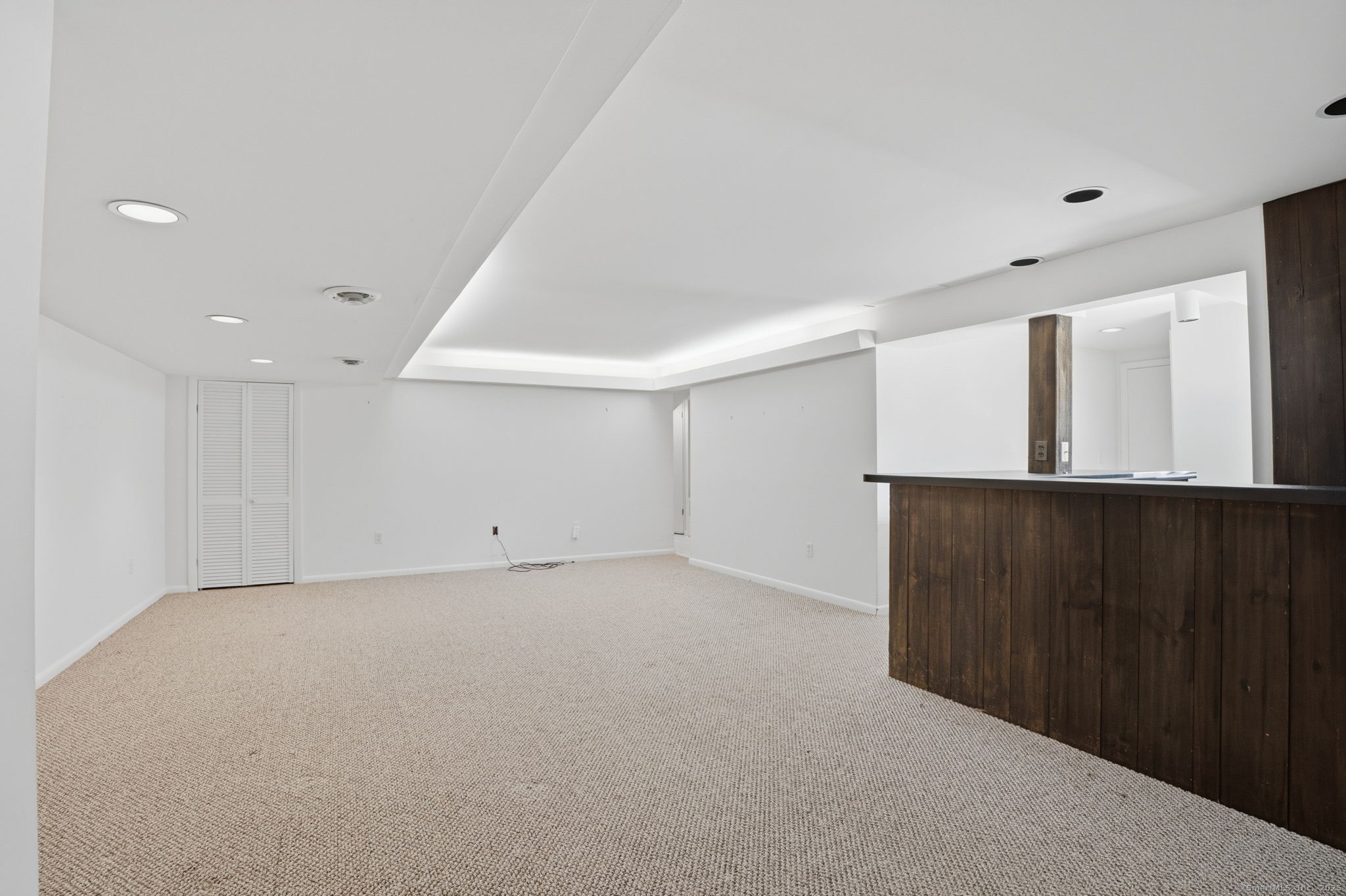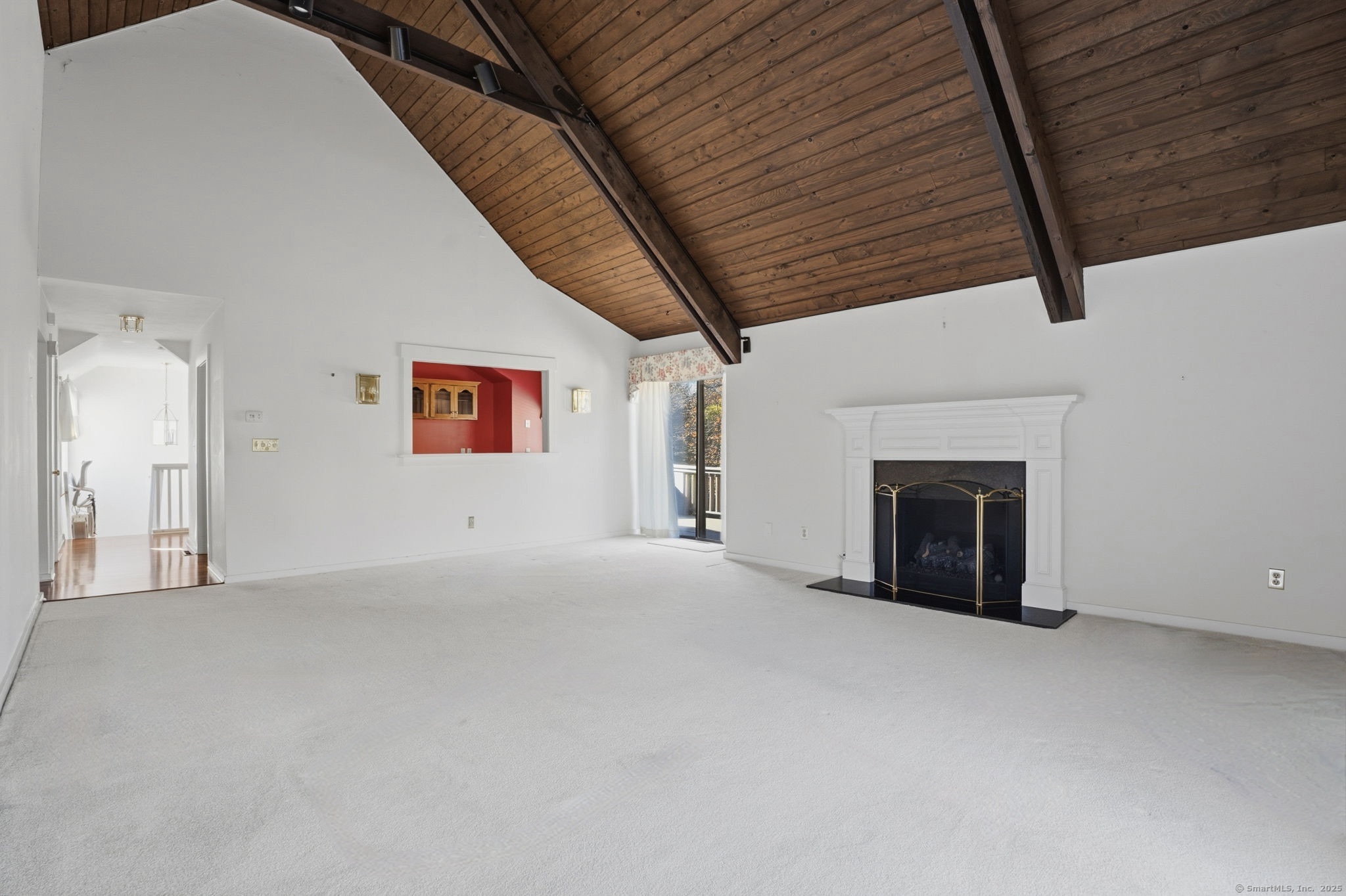 Welcome to Oronoque Village! This highly sought-after Whittier model offers a rare blend of comfort, space, and amenities in a vibrant 55+ community. The living room features soaring cathedral ceilings, gas fireplace, and sliders to a private deck, perfect for relaxing or entertaining. The dining area includes a convenient pass-through to the eat-in kitchen, which offers generous counter space and a scenic window view. The main level includes a primary suite with a walk-in closet and full bath, and also includes a spacious second bedroom (ideal for an office or den) with a large closet. The finished lower level adds incredible value with a large family room, wet bar, two oversized storage closets, a flexible office/bedroom with cedar closet, full bath with stall shower, sauna, hot tub, and laundry area. With three full baths, exceptional natural light, and a spacious layout, this Whittier unit delivers on lifestyle and functionality. Enjoy the amenities of Oronoque Village, including golf, tennis, pickleball, pools, and clubhouse - all in a beautifully maintained setting close to shopping and major routes. Don't miss this opportunity to make it yours!