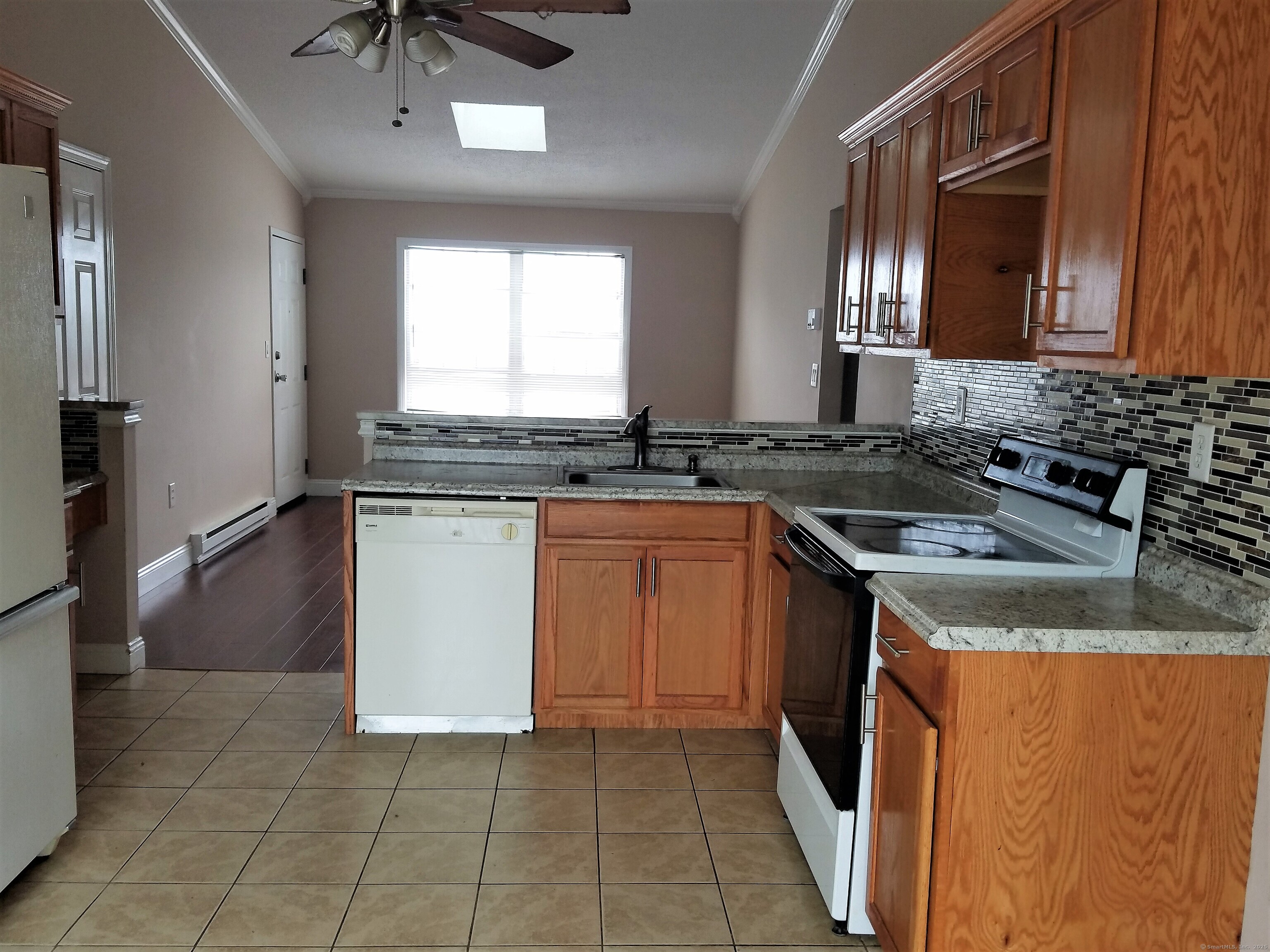 Remodeled and completely updated, top floor condo with two bedrooms and one bathroom in the sought after Mallard Brook Crossings complex close to UNH, highways, shopping, dining, entertainment, schools and parks, Metro North train, and public transportation. One assigned off street parking spot with plenty of visitor spots, private balcony with slider door, ceiling fans, skylight, washer and dryer, and built in desk for small workspace. Eat-in-kitchen with dishwasher, laminate flooring throughout, new vanity and hand-laid tile, custom backsplash, and newer accents make this hidden gem a must see!