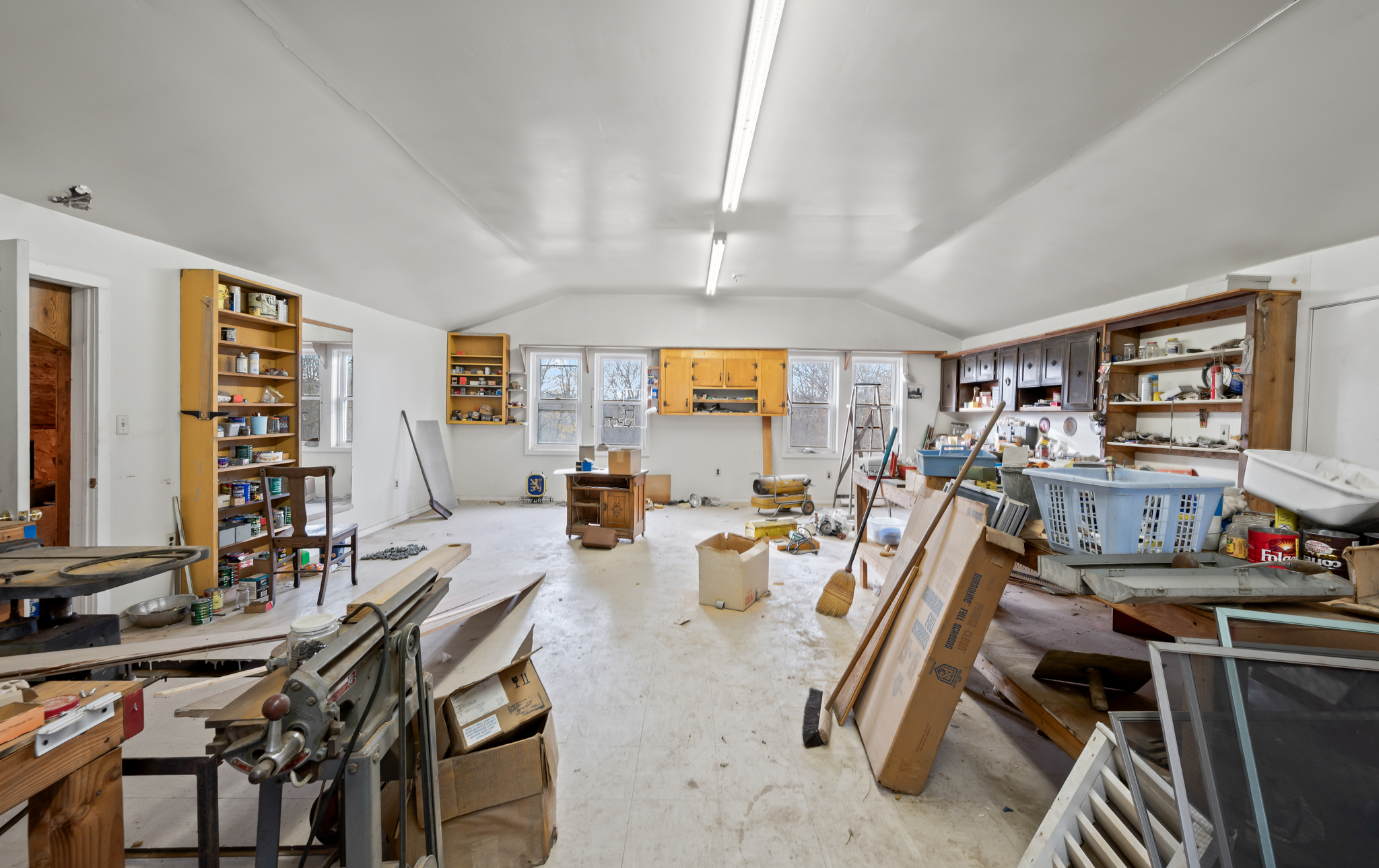 A RARE, ONE OF A KIND FIND ON THE WOLCOTT LINE! NOT ANOTHER ONE AROUND LIKE IT! This one has it all! Seclusion and privacy on .73 acre of peace and serenity. Last House of only two, on "no thru" street. Large detached outbuilding; 5-high garage bays with a large workshop located on the second level with heat and electric. Newer whole house generator. Finished basement area includes family room and kitchenette with walkout for STRONG IN-LAW POSSIBILITIES. Gorgeous sunroom with lots of glass! Huge Living room with hardwood floors & stone fireplace. Sold AS IS-as reflected in list price. A lot of house and property for the price! Needs updating and cosmetics Property recently appraised at $450,000. Please refer to Agent remarks