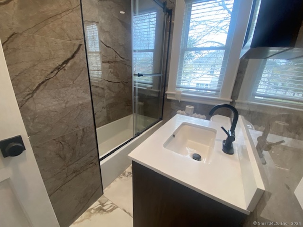 Fantastic 5-room, 2-br, 1 full bath, second floor apartment in multifamily available for lease. Updated kitchen with newer stainless appliances plus washer/dryer in unit. Granite counters and new vinyl tile flooring in kitchen. Living room offers built-ins and decorative fireplace (not to be used for fires). Living room, dining room, and both bedrooms have hardwood flooring. Updated full bath. Attached enclosed porch with electric heat leads to spacious second floor deck. Gas heat and on demand hot water. Four ceiling fans in unit. Thermopane windows. 2 parking spaces. Central location. Close to park.