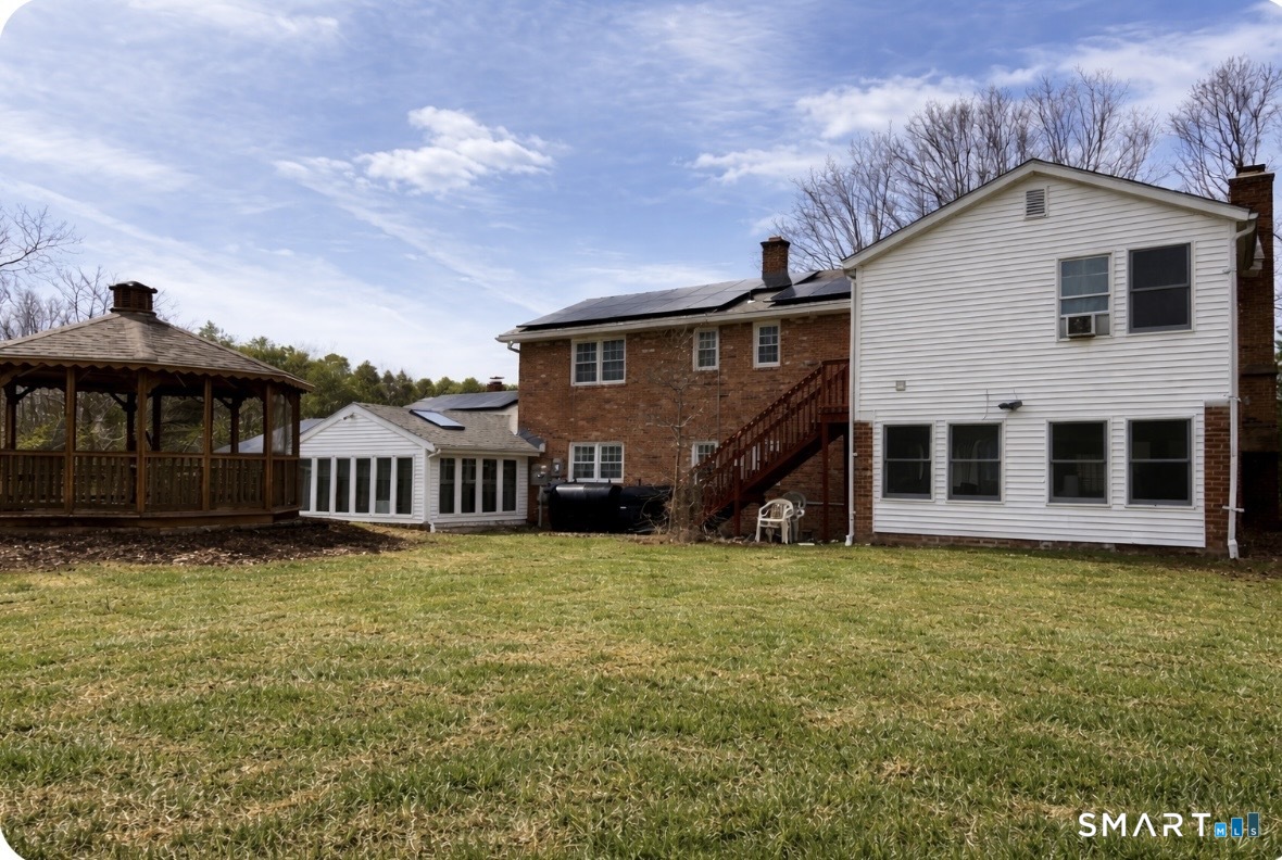 This property features a Stately Brick, Raised Ranch home with separate in-law apartment. Large enough for multigenerational living, set on almost 2 acres of land. Outdoor amenities include a gazebo for peaceful enjoyment and entertaining. Enjoy privacy, flexibility, and room to grow-perfect for today's modern lifestyle. Close to the Village of Stony Creek, eateries, shoreline beaches, shopping and more.